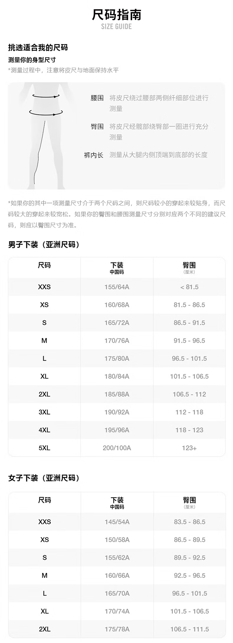 China (cm) 160-165/84-86 165-170 / 88-90 167-172 / 92-96 168-173 / 98-102 170-176 / 106-110