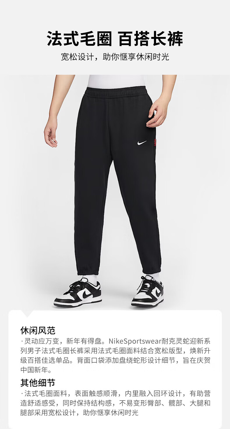 NIKE Men's Sports Pants Spring and Autumn Knitted Leggings Casual Pants Loose and Simple IB5806-010 Black M