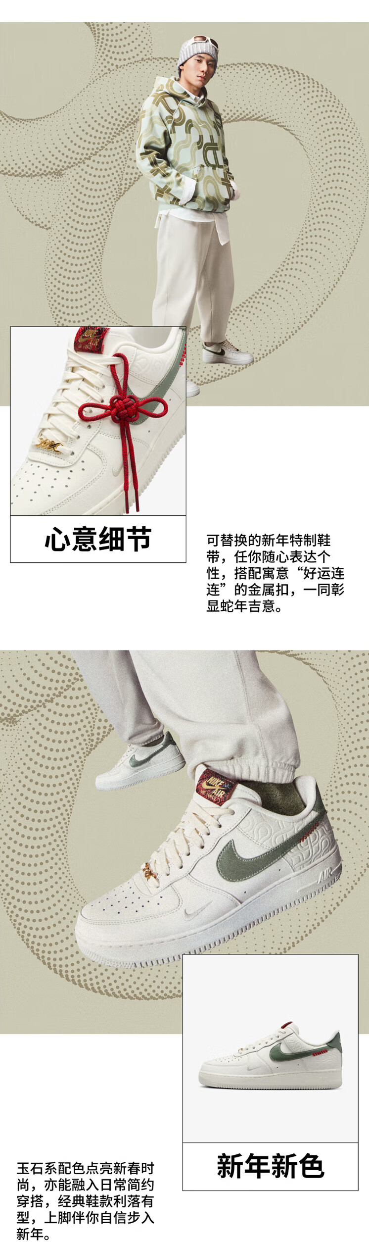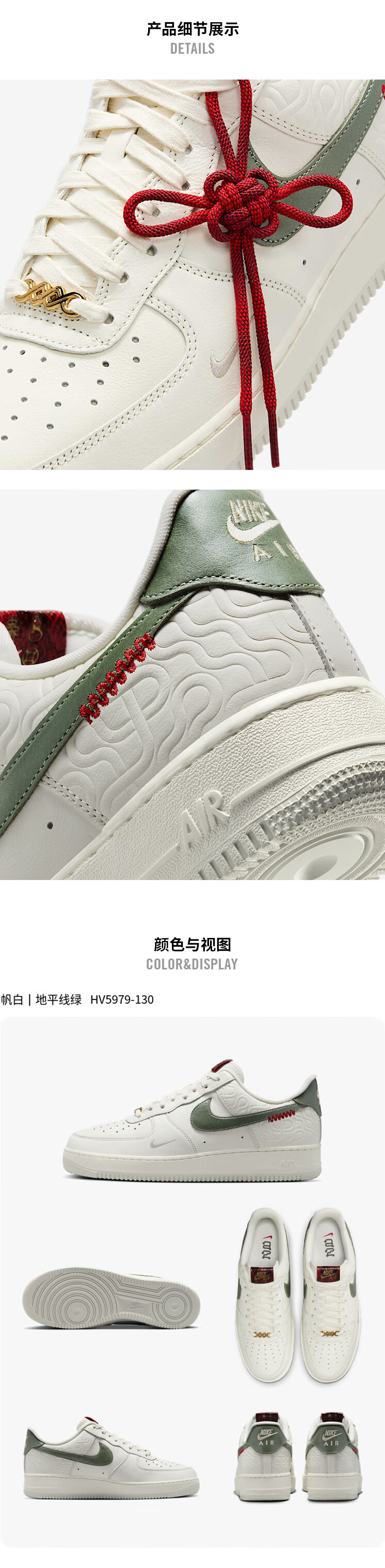 Nike NIKE Men's Air Force One AF1 New Year's Gift Sports Shoes HV5979-130 White Green 42