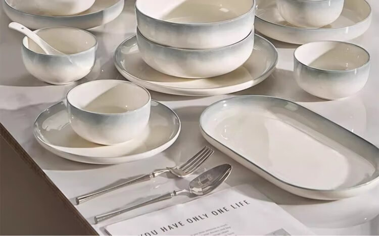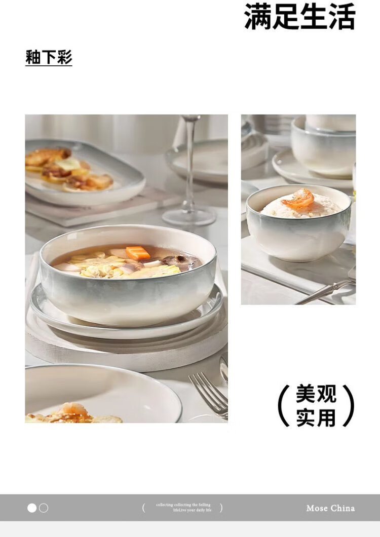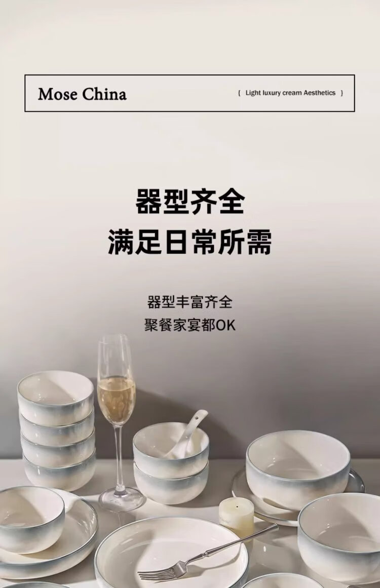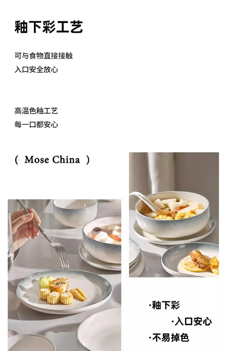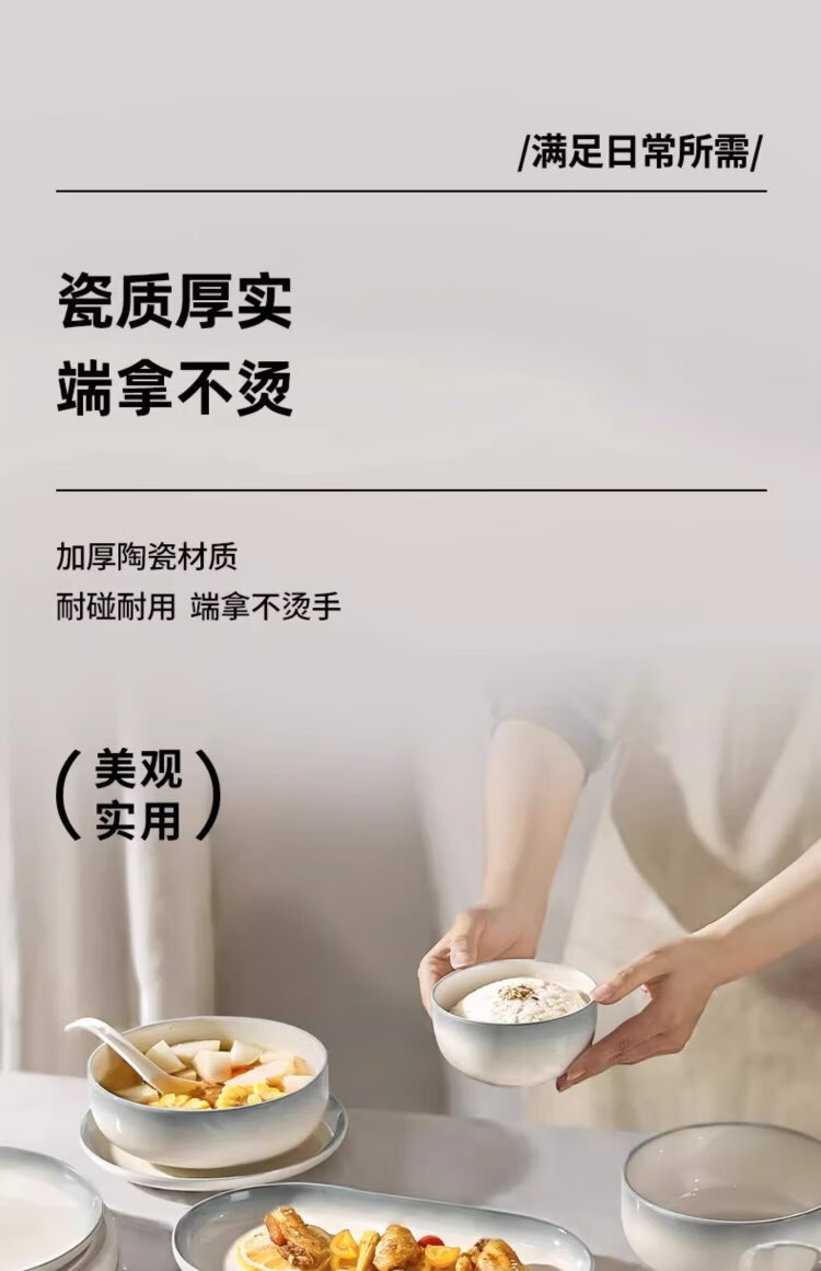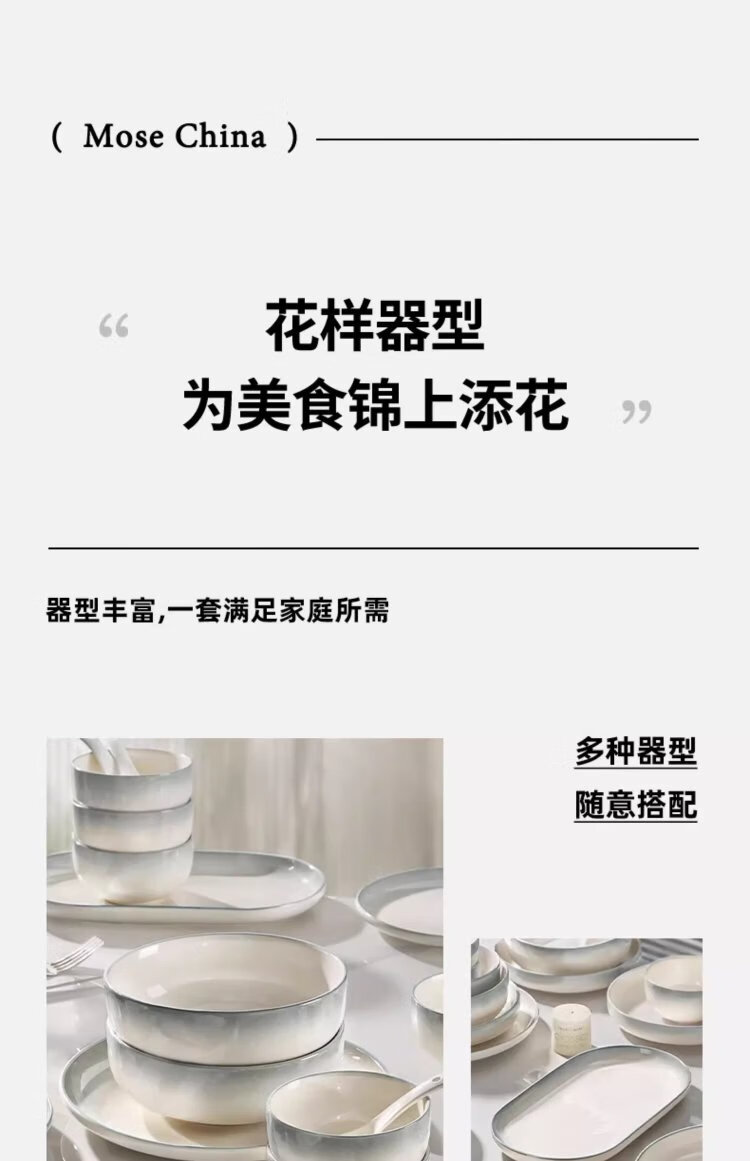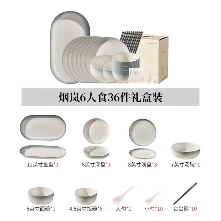 Ink-colored underglaze colored bowls and plates tableware set for home use 2025 high-end ceramic bowls and plates for moving into a new home, 36 pieces of bowls and chopsticks