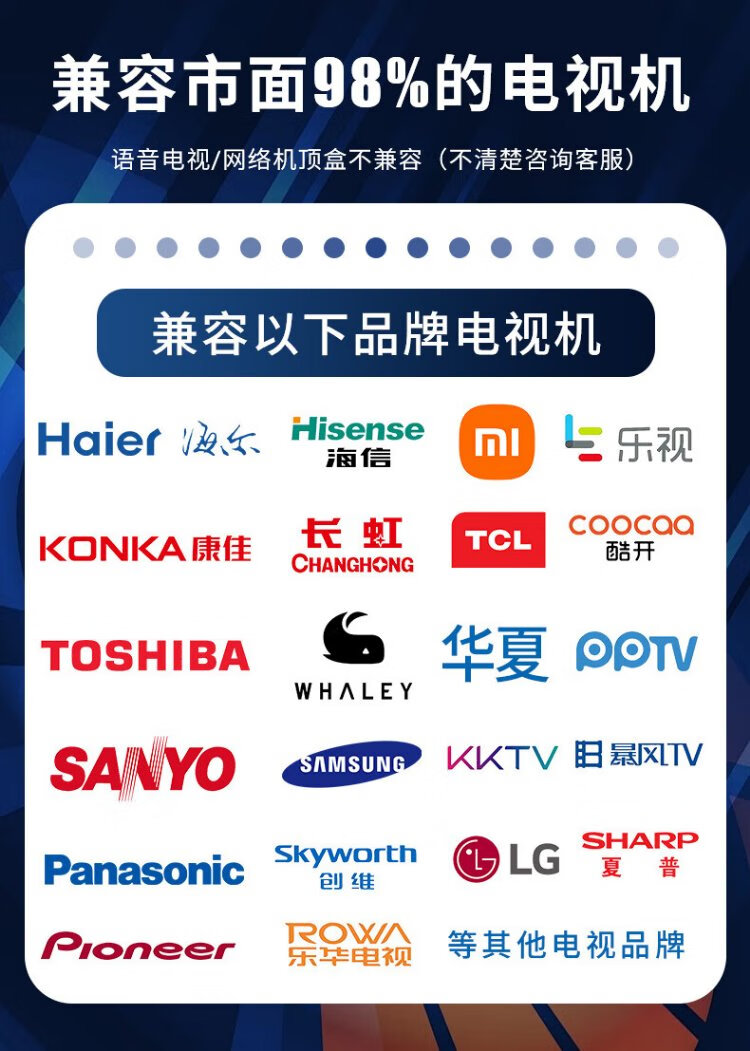 Dongpuli Universal TV Remote Control LCD Smart TV Remote Control Suitable for Xiaomi Hisense TCL Thunderbird Sharp Changhong Konka Haier Skyworth LeTV Samsung Sony Universal
