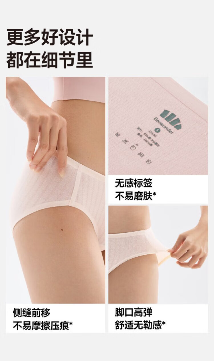 Beneunder Class A safety cotton underwear for women 100% cotton non-marking antibacterial and antibacterial bottom briefs mid-waist 25 new style