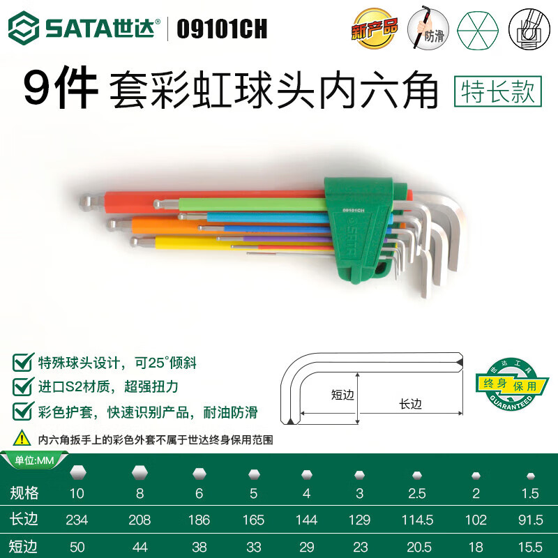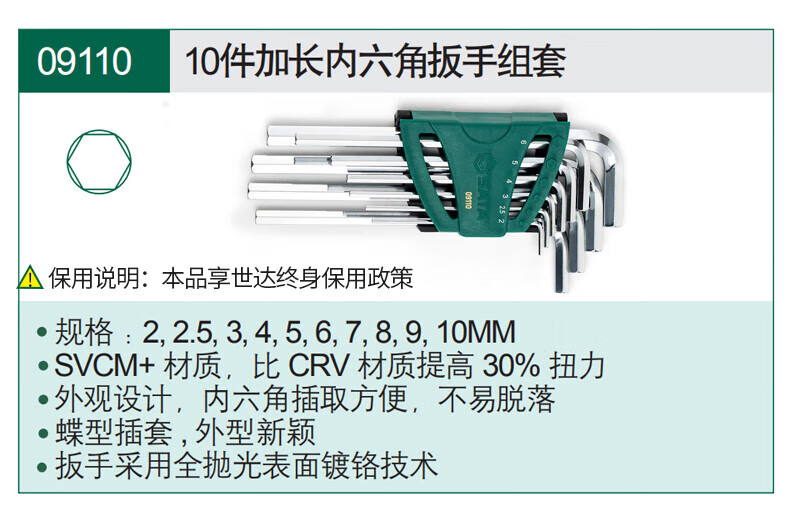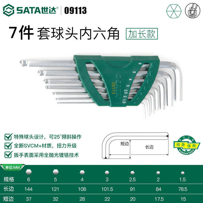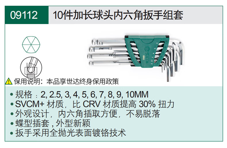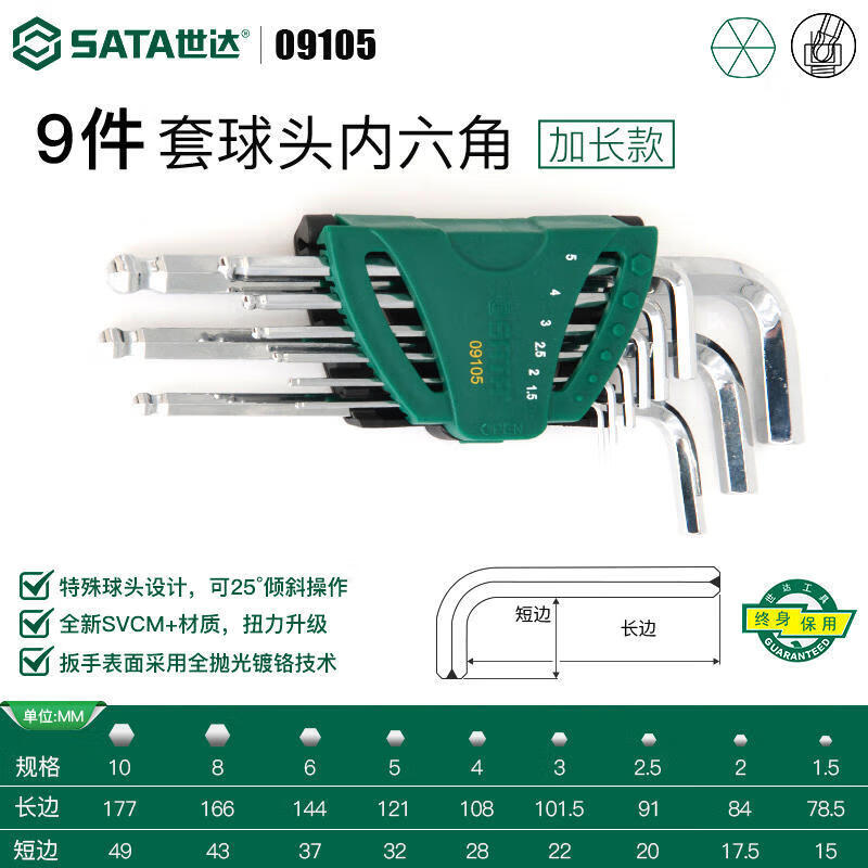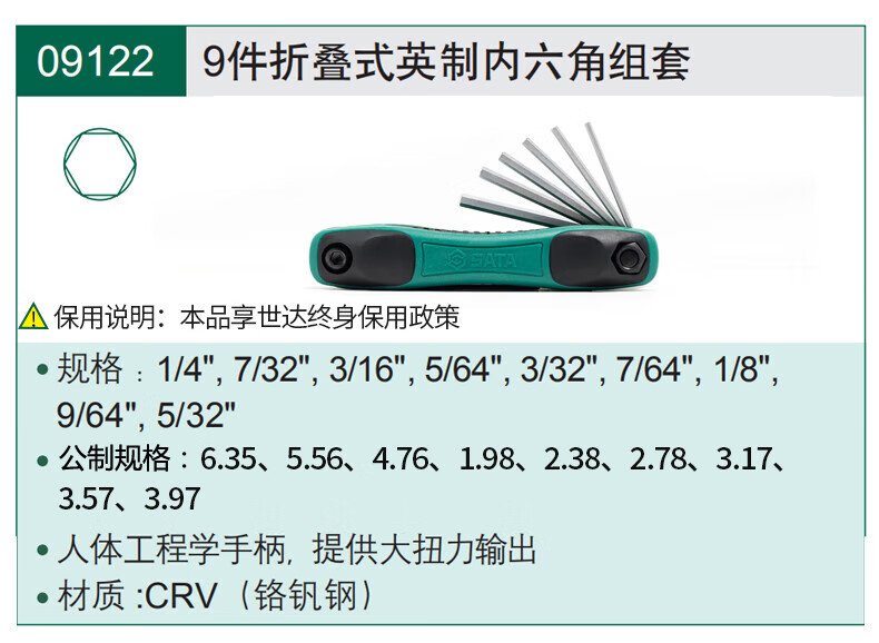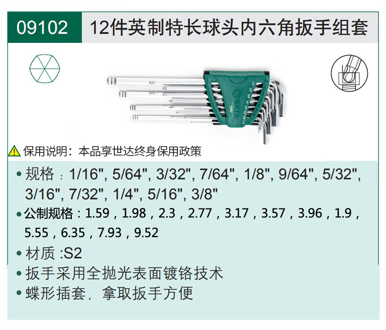 SATA 12-piece inch length hexagonal wrench set 09108