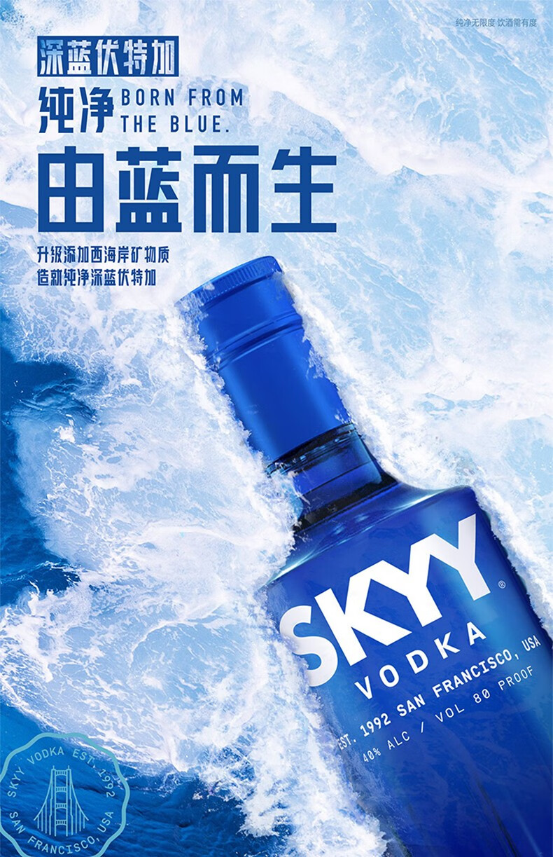Dark blue vodka VODKA blue sky vodka original bottle imported foreign wine spirits bartending base liquor 750ml