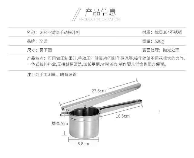 Quanshi 304 stainless steel manual juicer juicer orange juice machine squeezer lemon juicer clamp fruit mud press