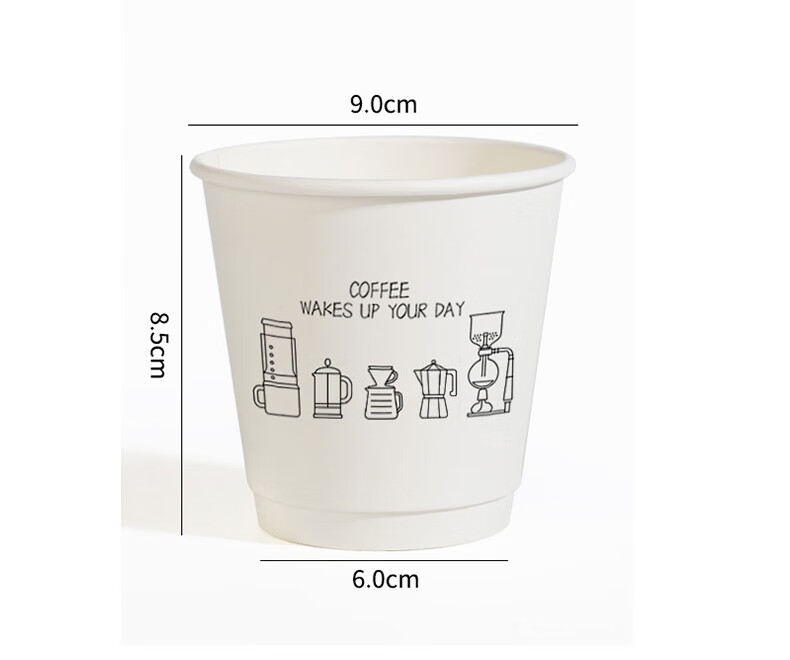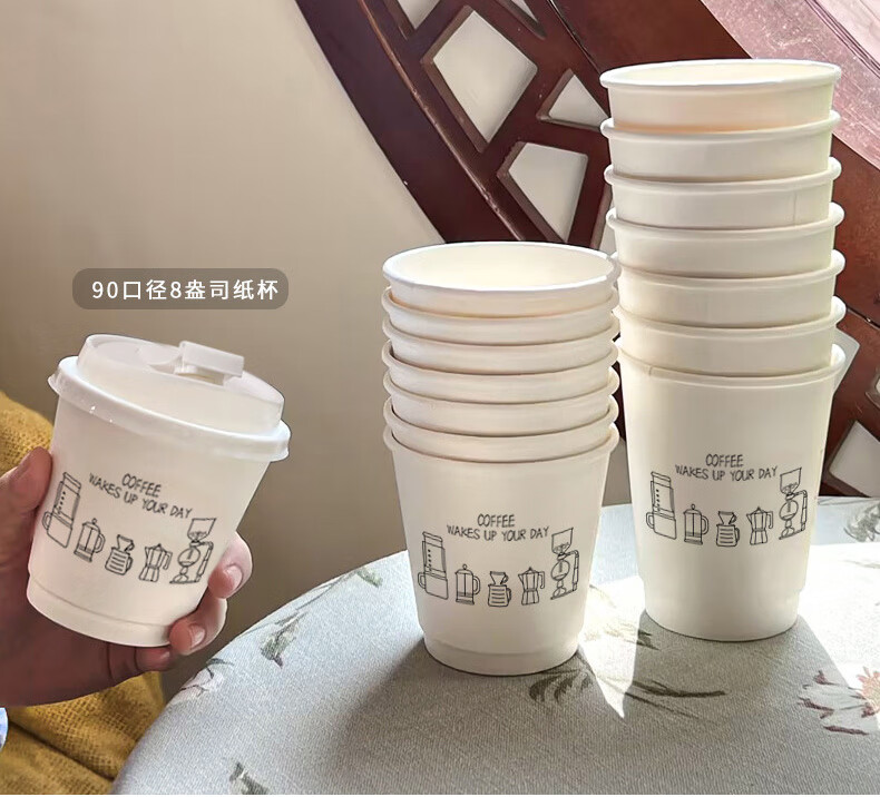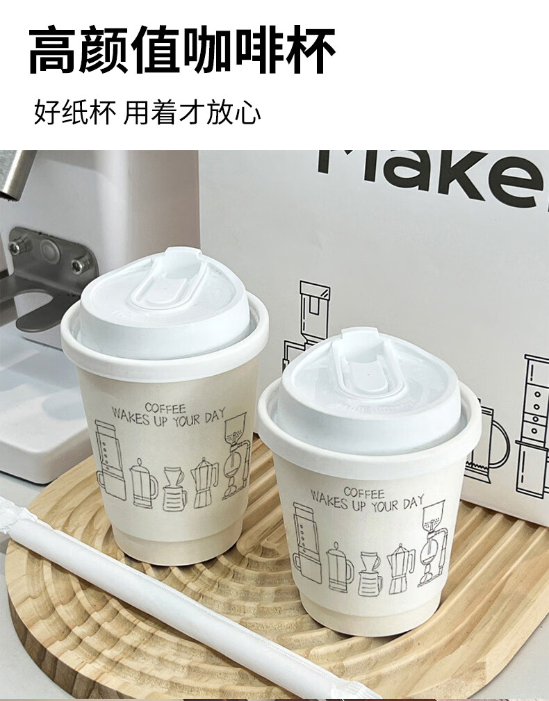 Forty thousand kilometers coffee cup double layer paper cup with lid water cup household commercial packaging cup hot drink paper cup thickened double layer COFFEE 280ml + butterfly white lid 25 sets