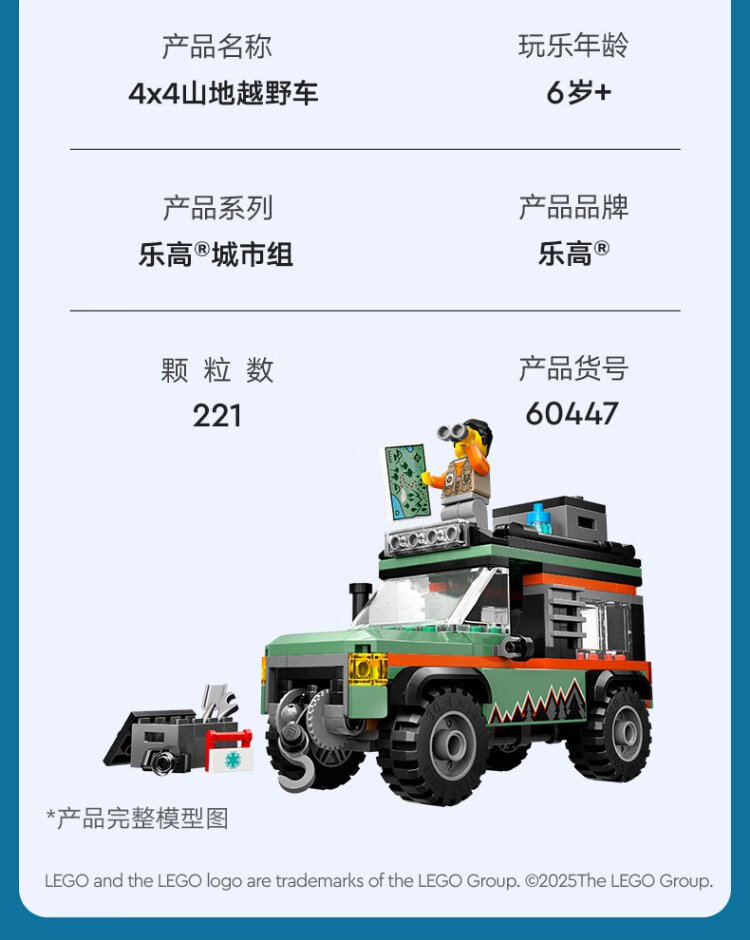 LEGO building block city series 60447 mountain off-road vehicle boys and children toys birthday gift