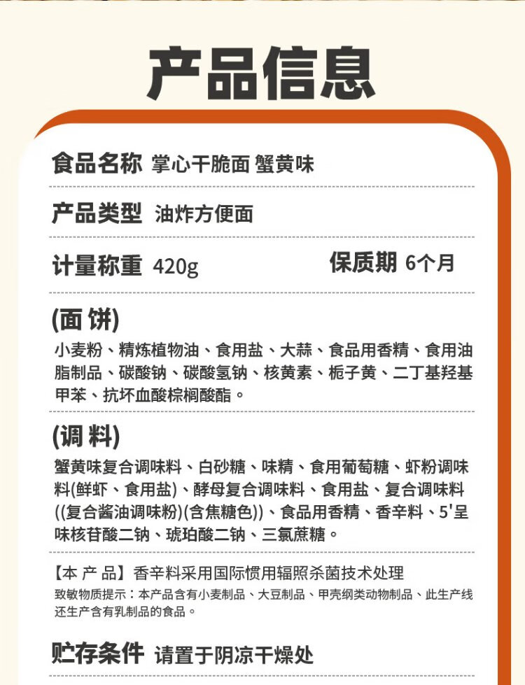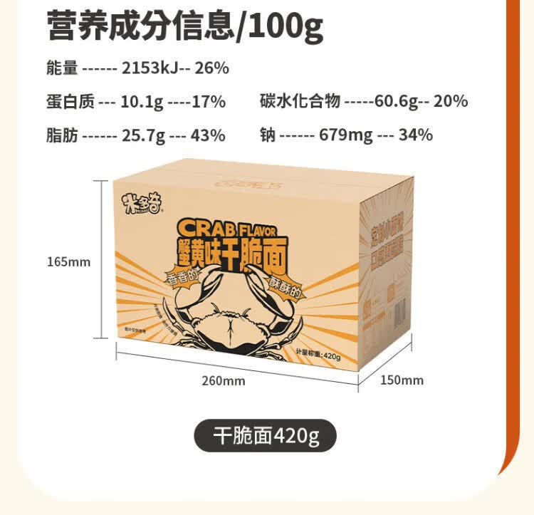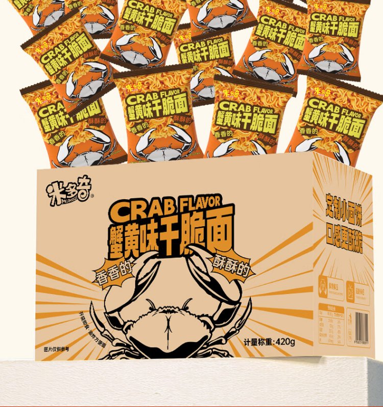 Midoki Crab Roe Flavored Dry Noodles 420g Palm Crispy Dry Instant Noodles Full Box Satisfying Snacks and Leisure Foods
