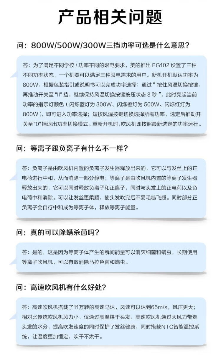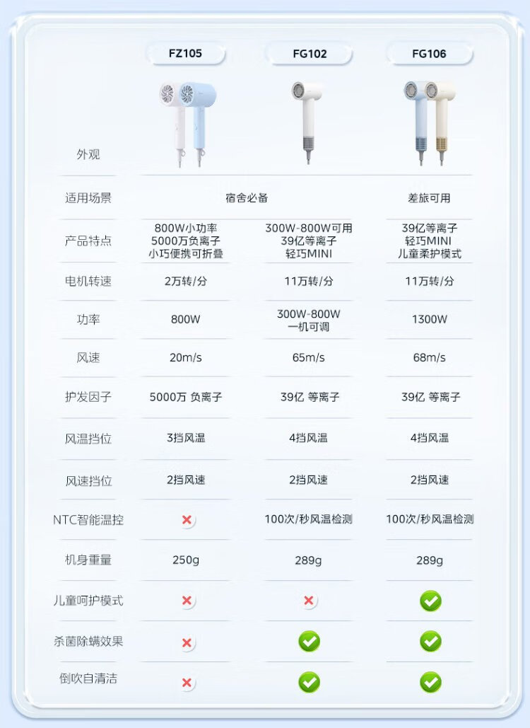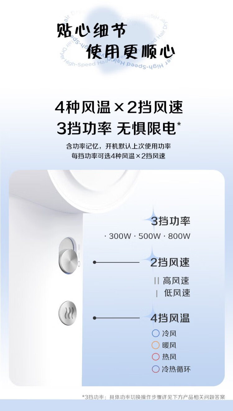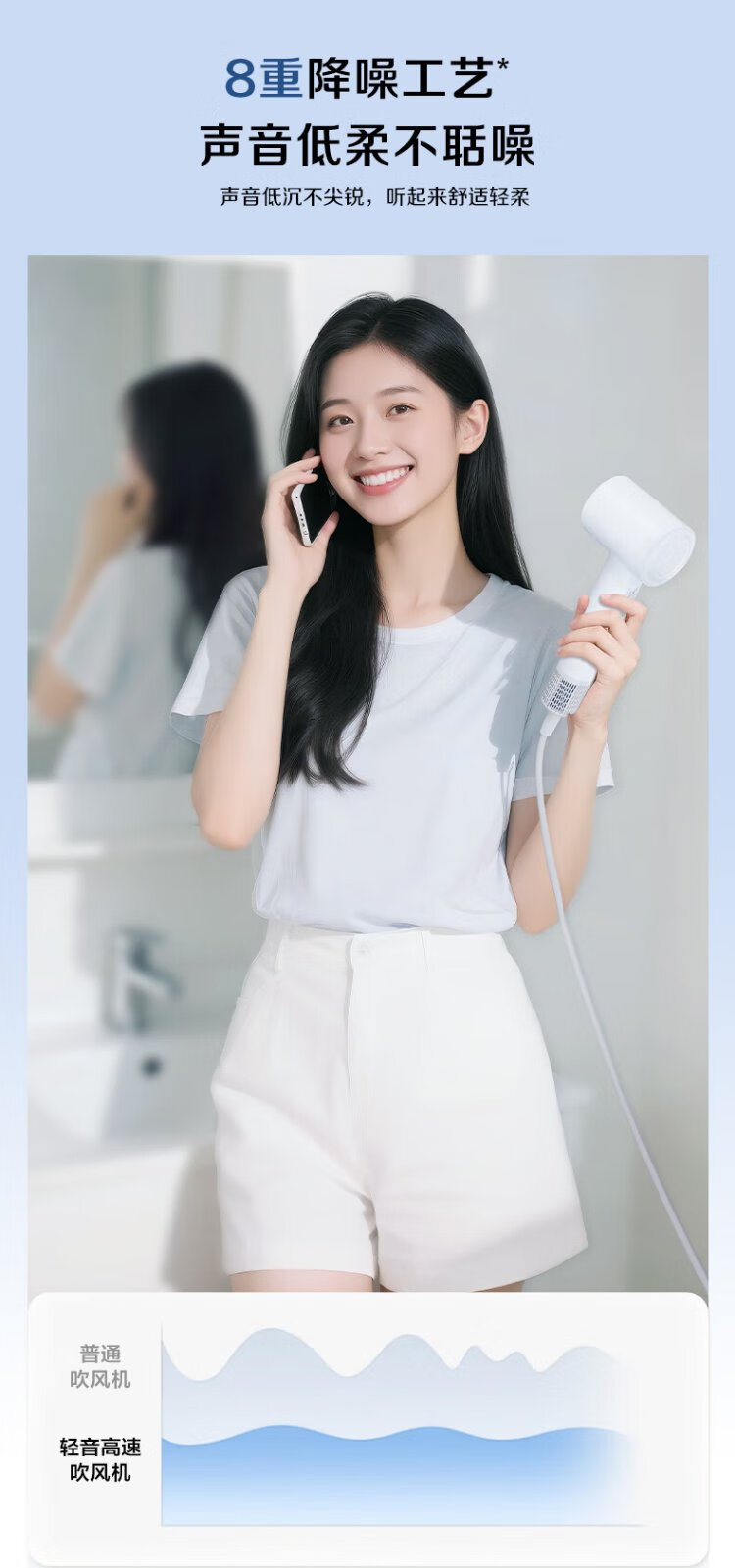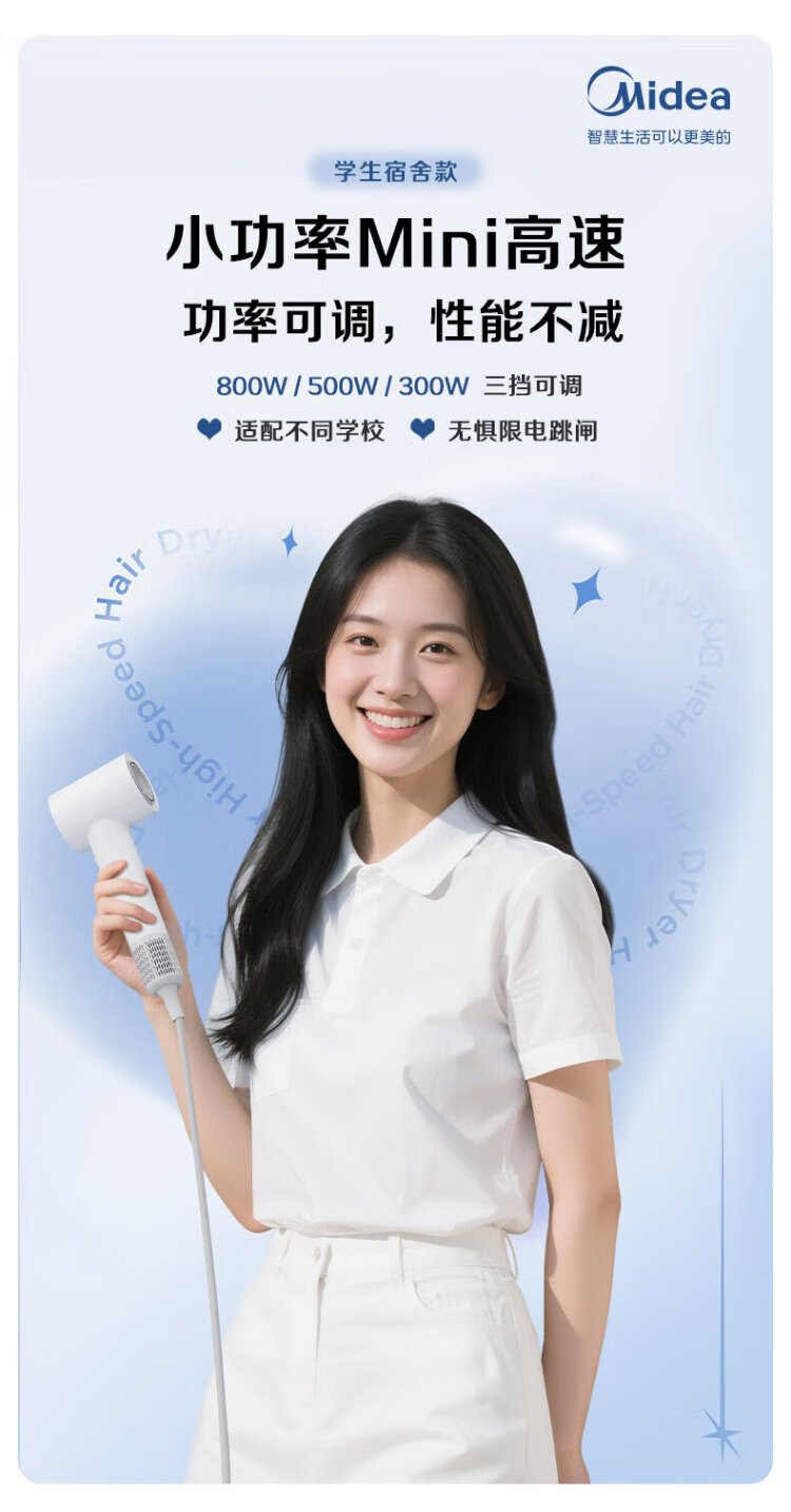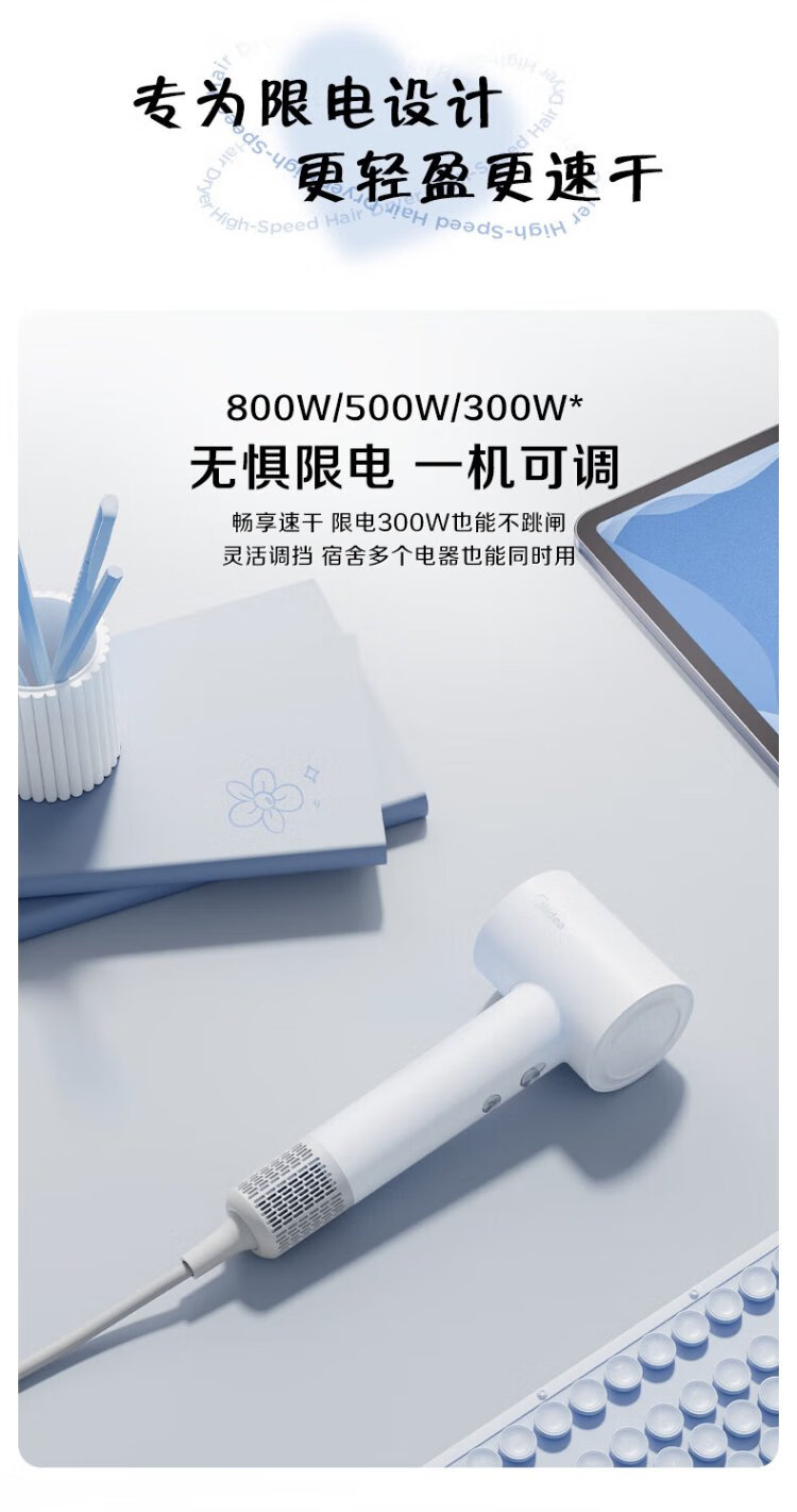 Midea High Speed Hair Dryer 3.9 Billion Plasma Hair Dryer Negative Ion Hair Dryer 300-800W Dormitory Available FG102 National Subsidy Holiday/Birthday Gift