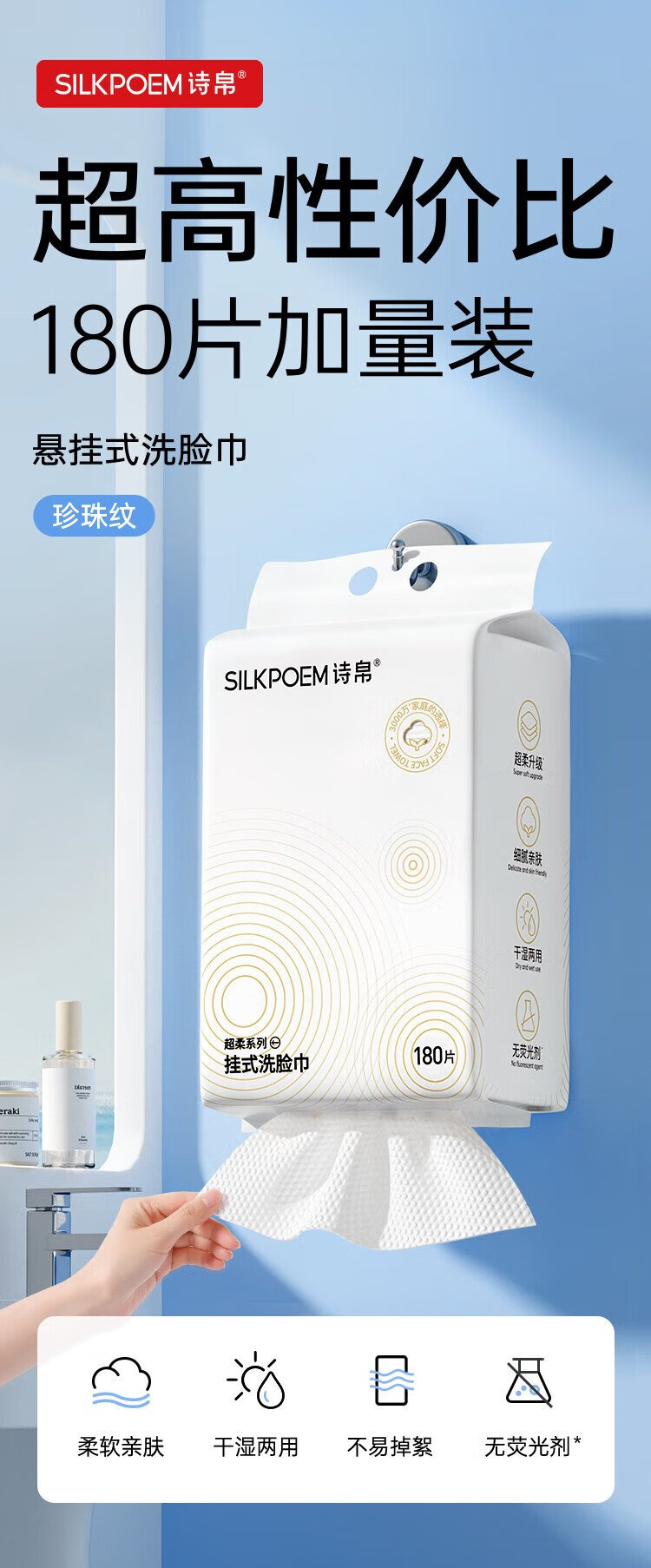Shibo face towel 180 pumps*2 bags disposable pearl pattern baby soft towel for face washing and wiping face cleansing hanging wall-mounted