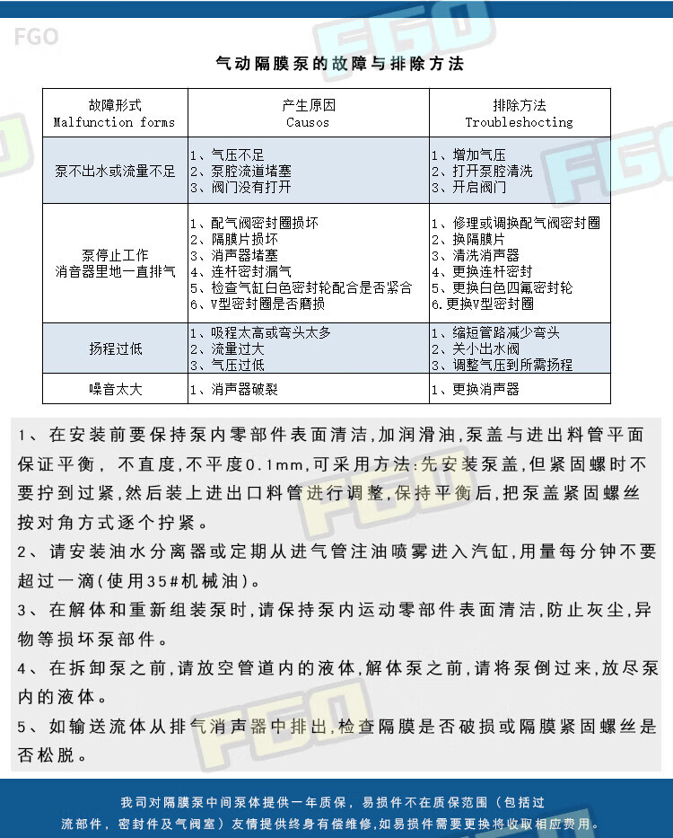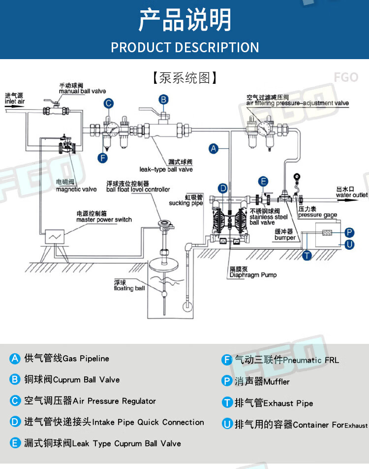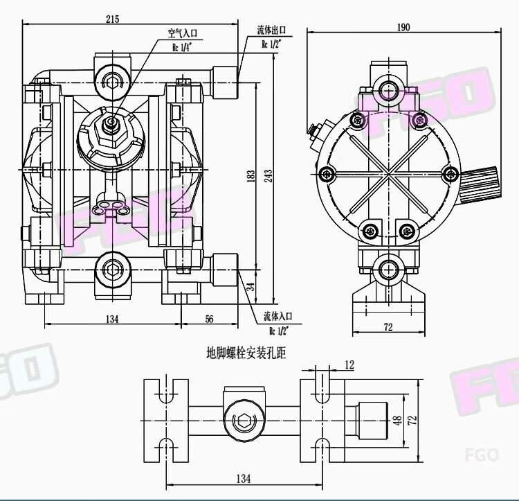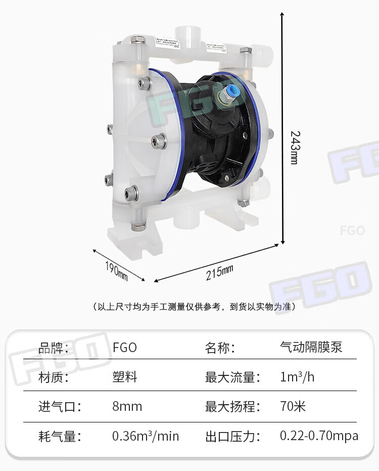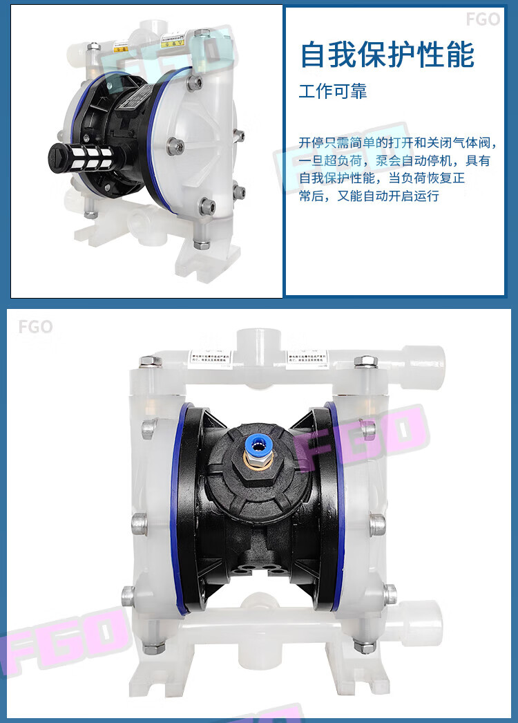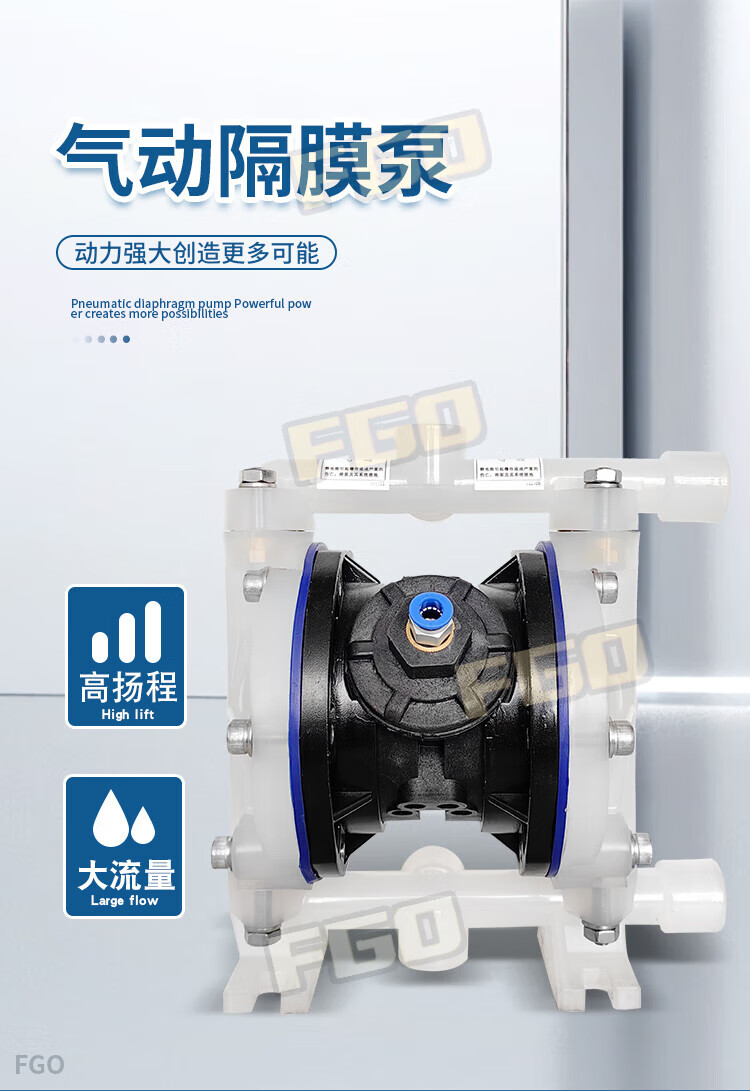 FGO pneumatic diaphragm pump engineering plastic + F46 diaphragm QBY3-15SF DN15 flow rate 1m3/h
