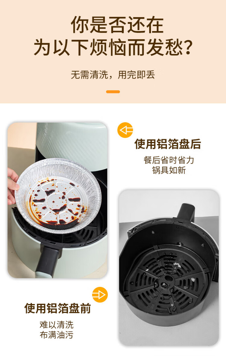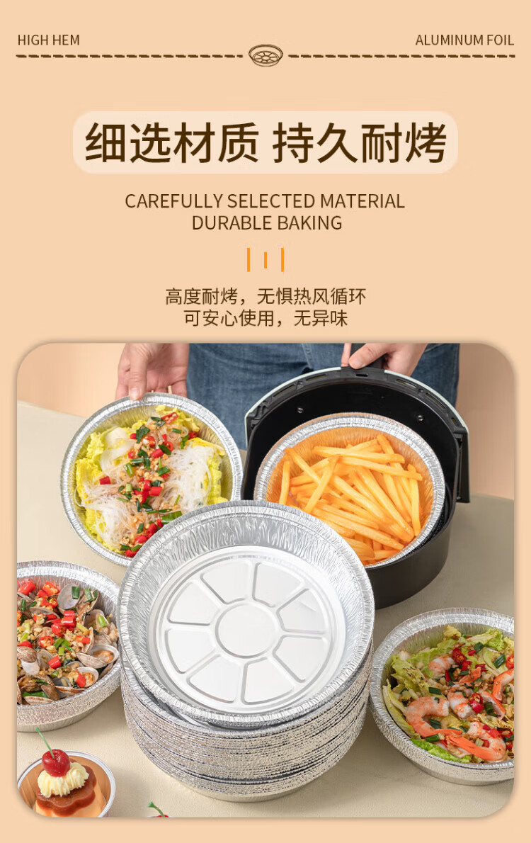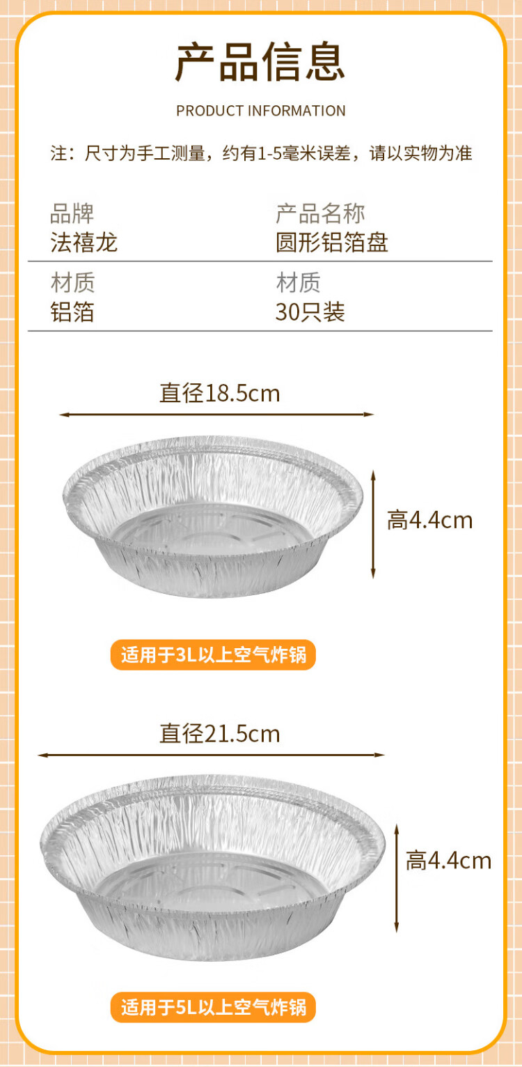 Faxilong air fryer special tin foil tray, thickened diameter 21.5cm*30 oven aluminum foil bowl tin foil box