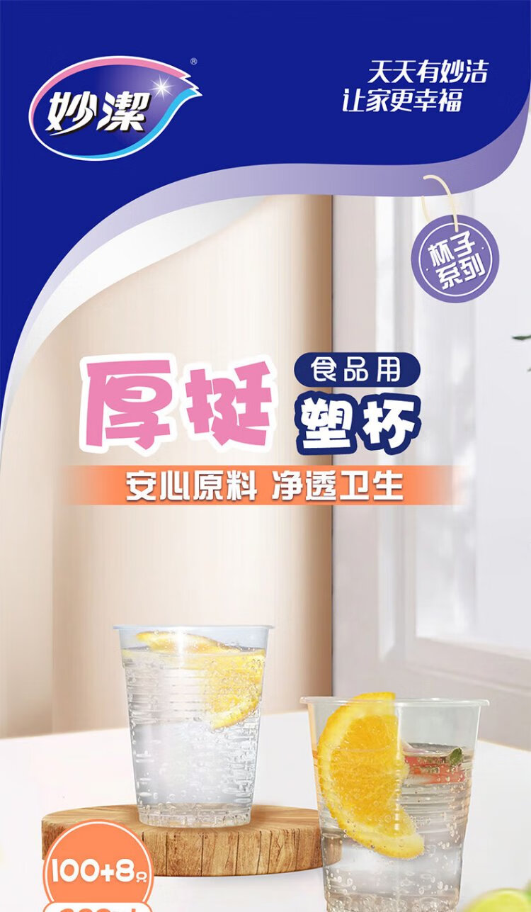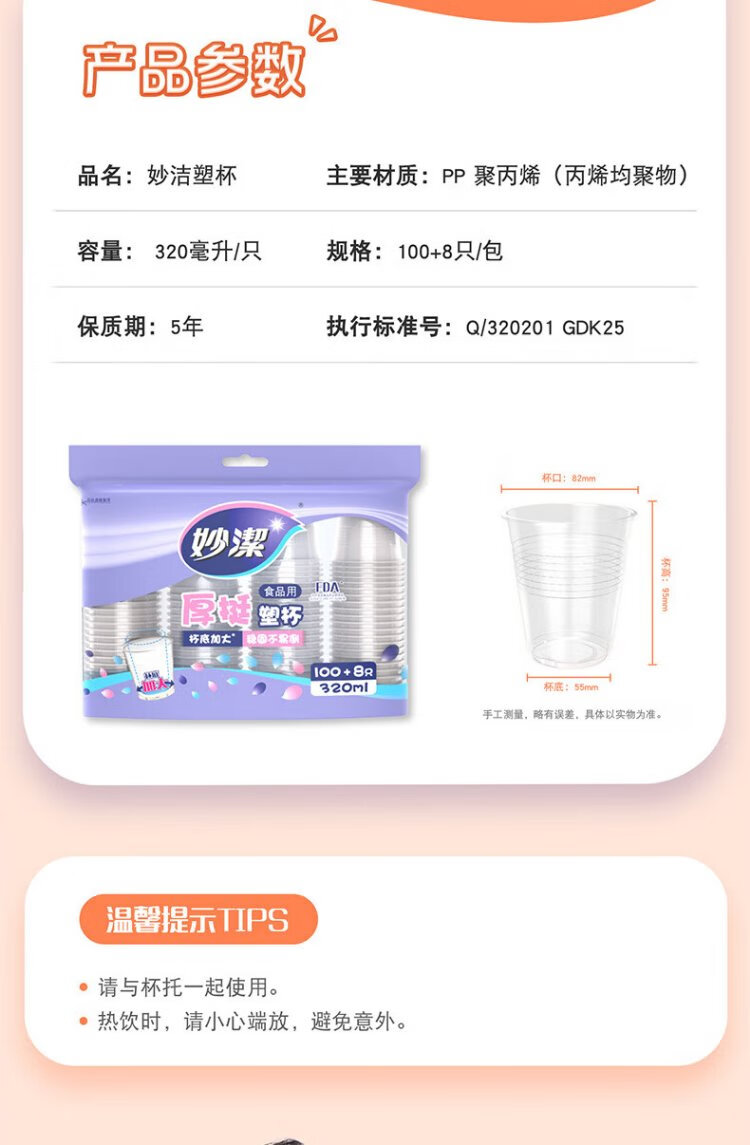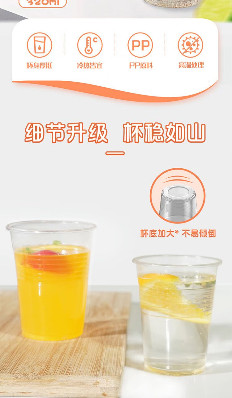 Miaojie Plastic Disposable Cup Tea Space Aviation Transparent Food Grade Thickened 108pcs*320ML