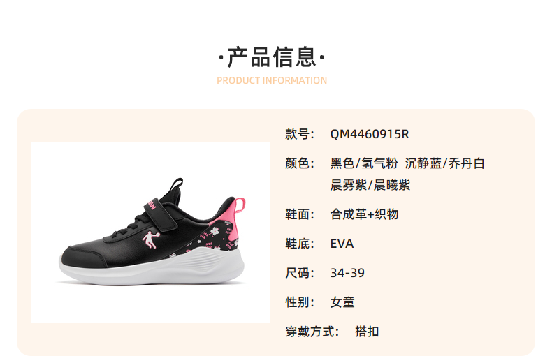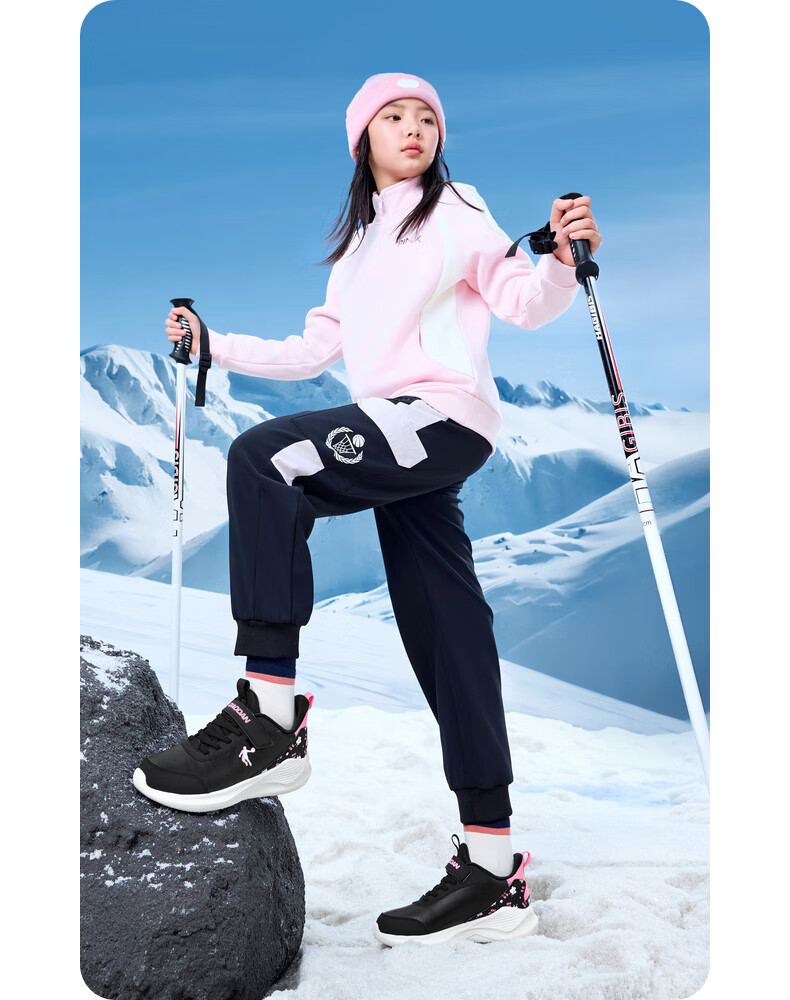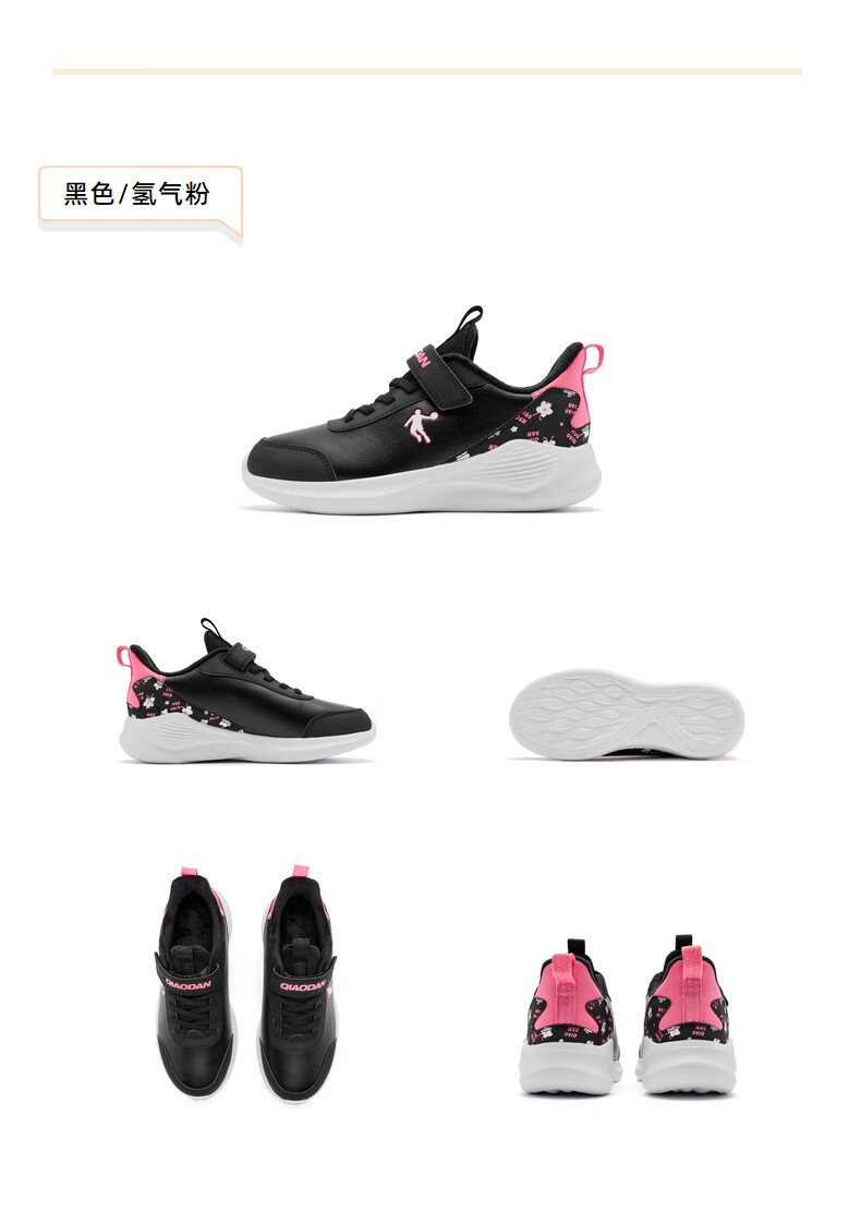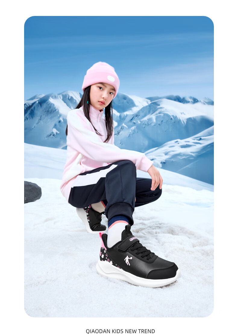 Jordan girls' fleece running shoes, older children's winter sports shoes, children's buckle cotton shoes, black/hydrogen powder 34