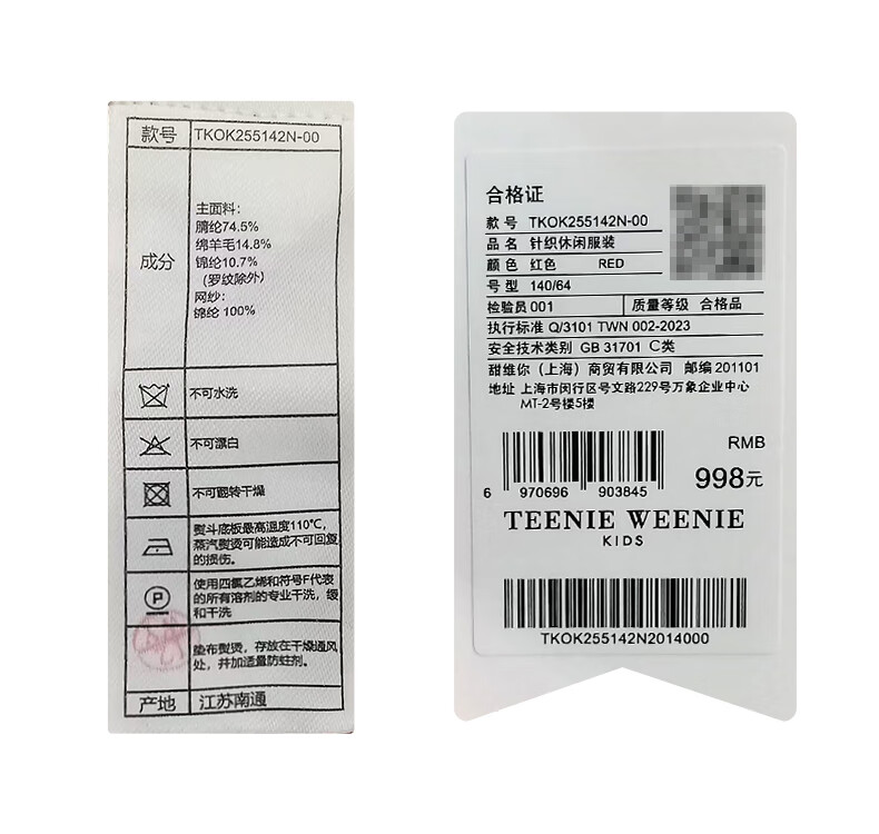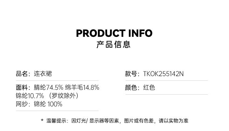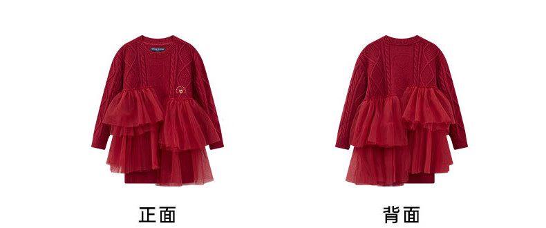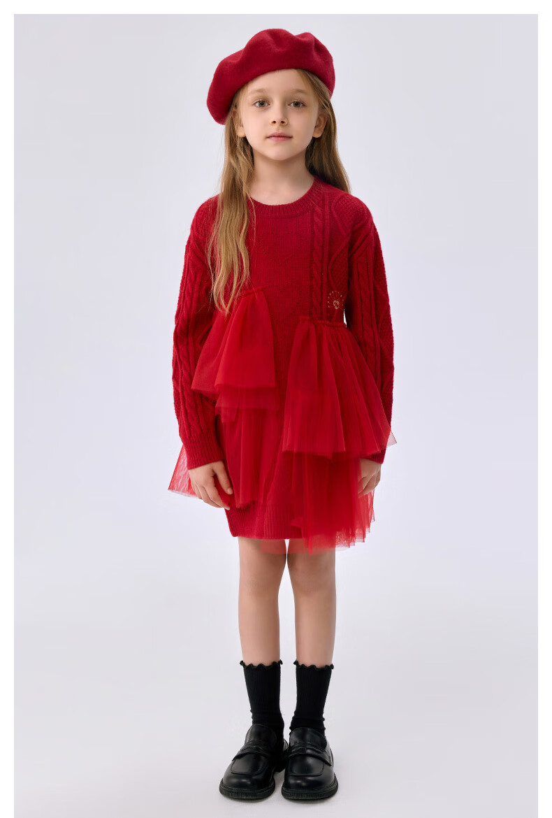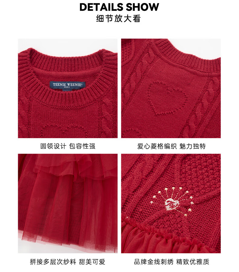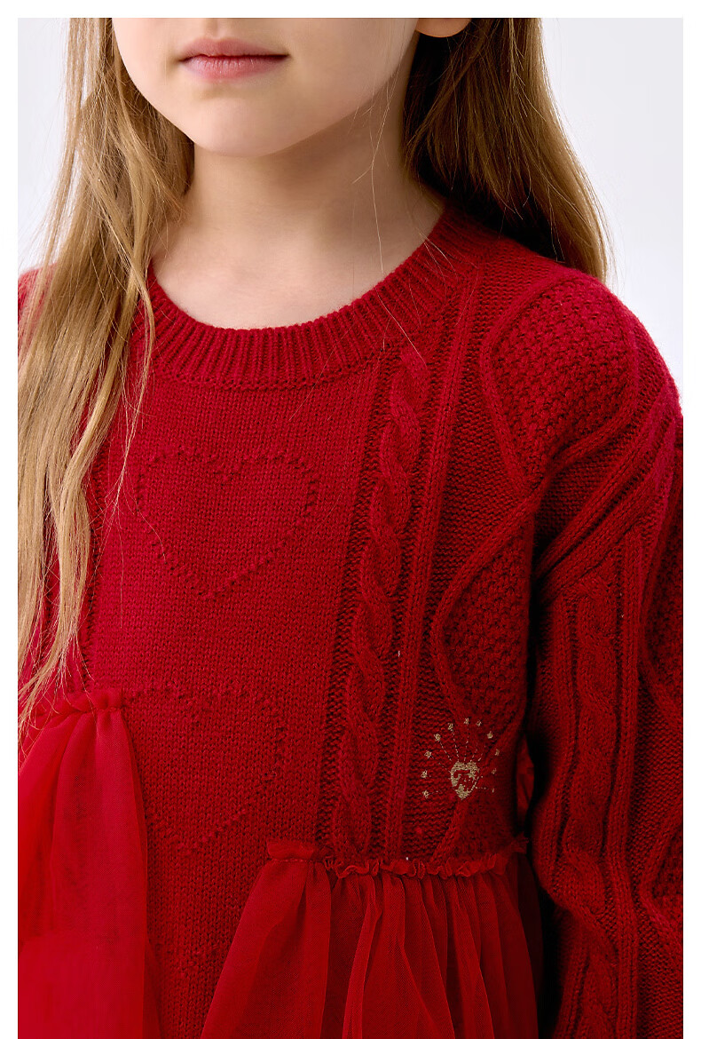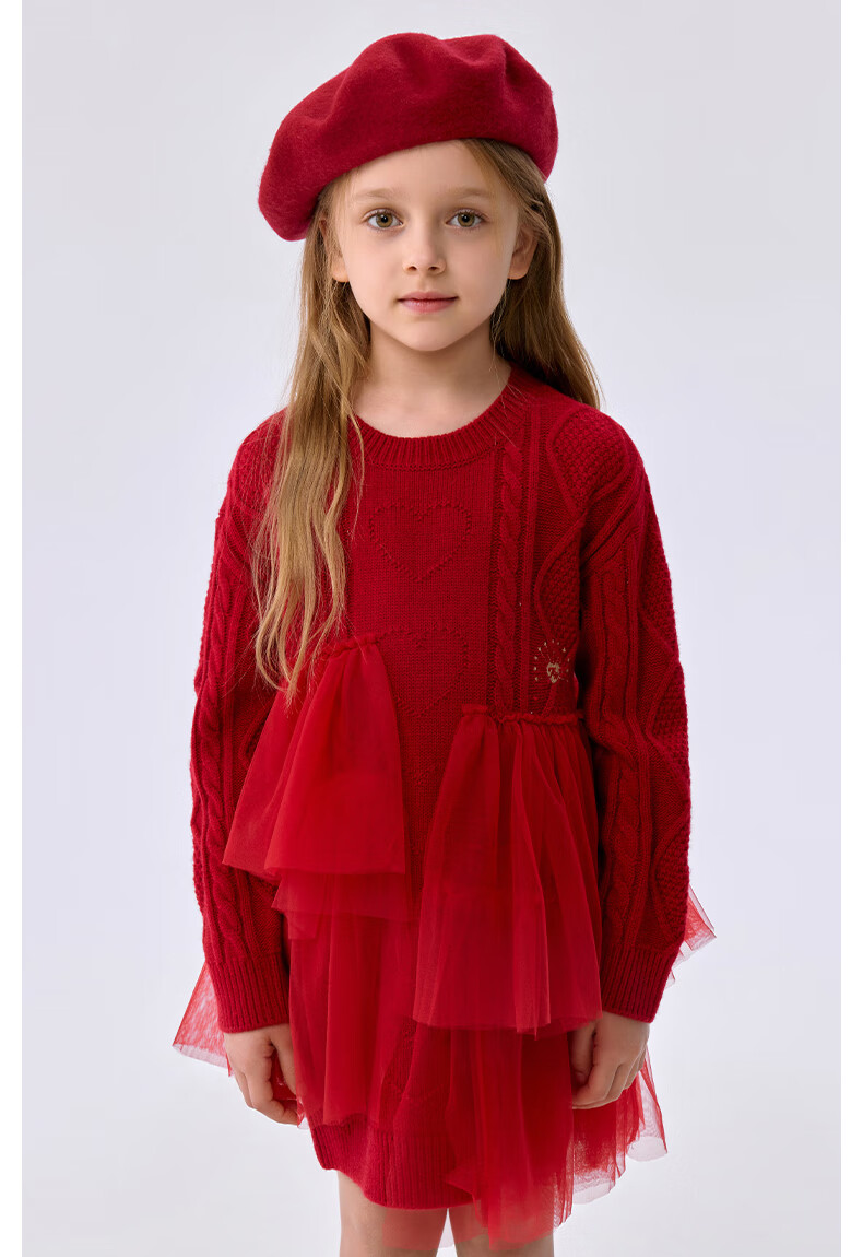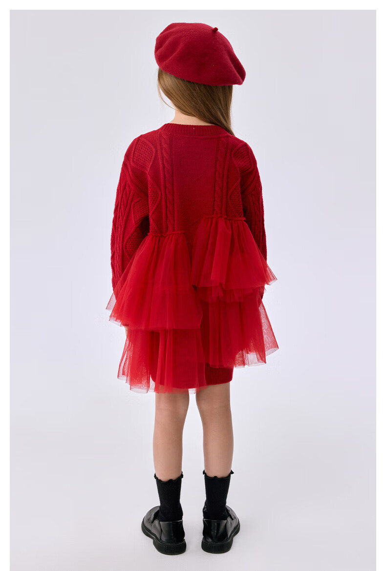 Teenie Weenie Kids 25 Years New Year Girls Sweet Splicing Mesh Woolen Skirt Red 150cm