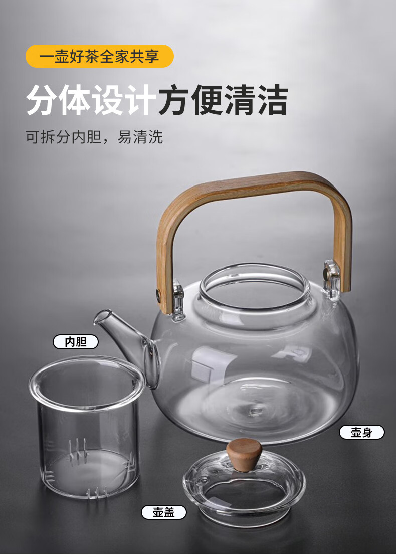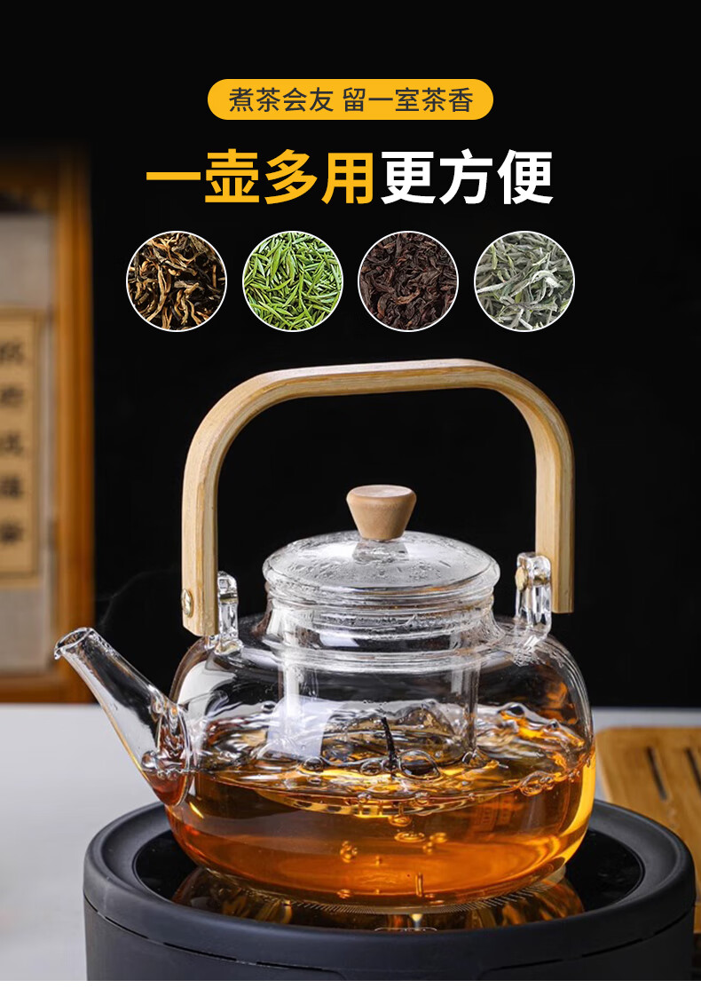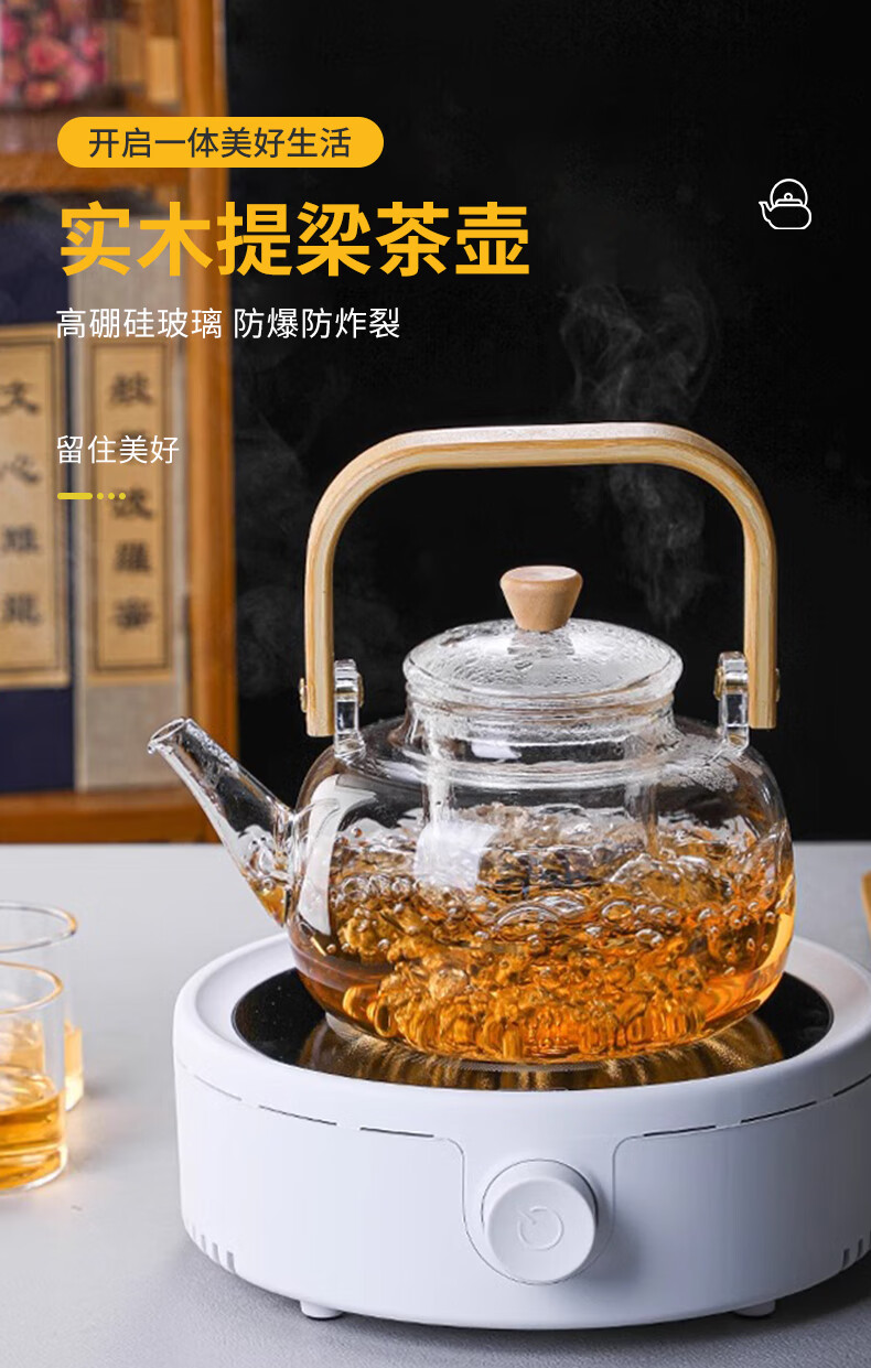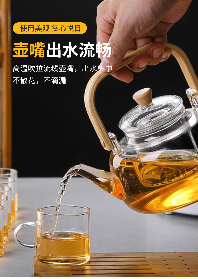 Tea edge boiling teapot single pot glass kettle high temperature resistant lifting kettle open fire tea making water separation stove health care flower tea set