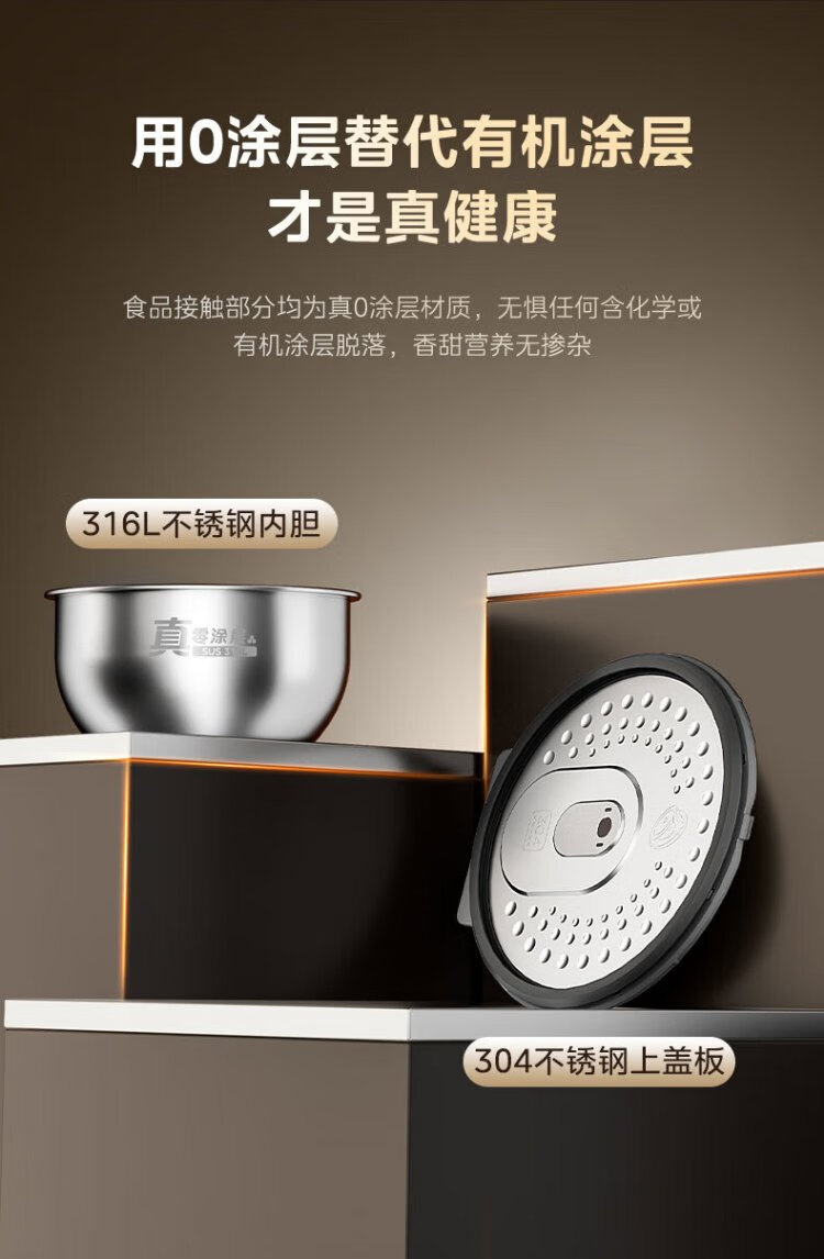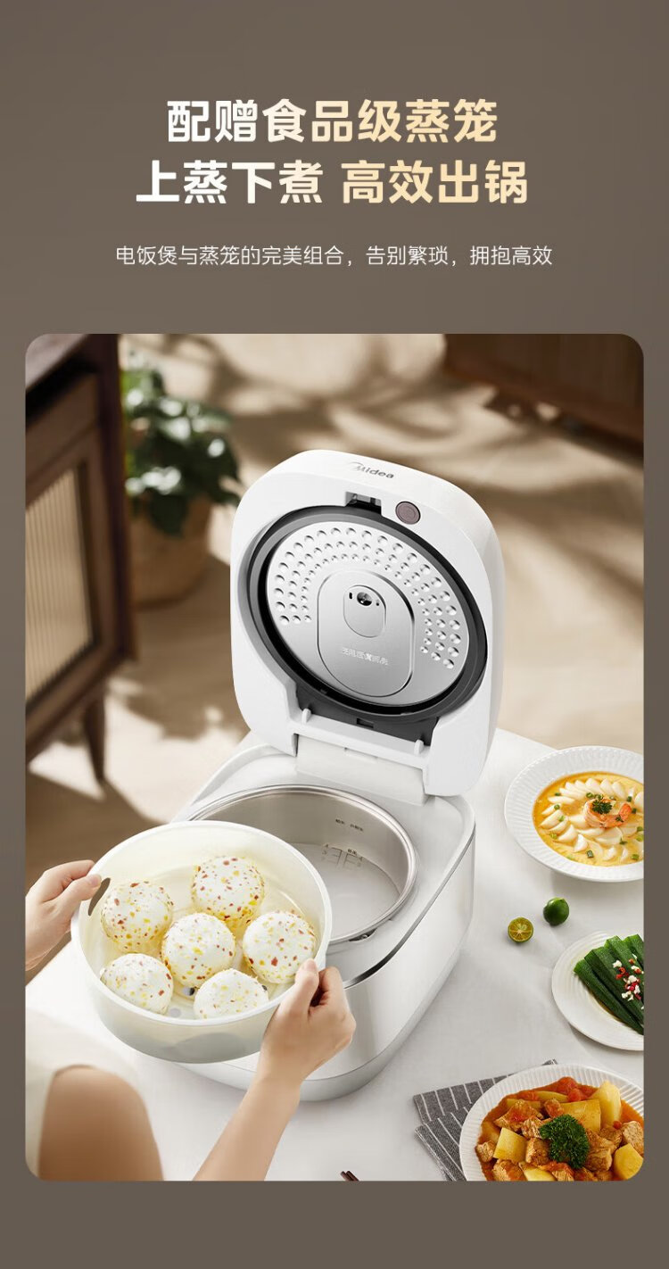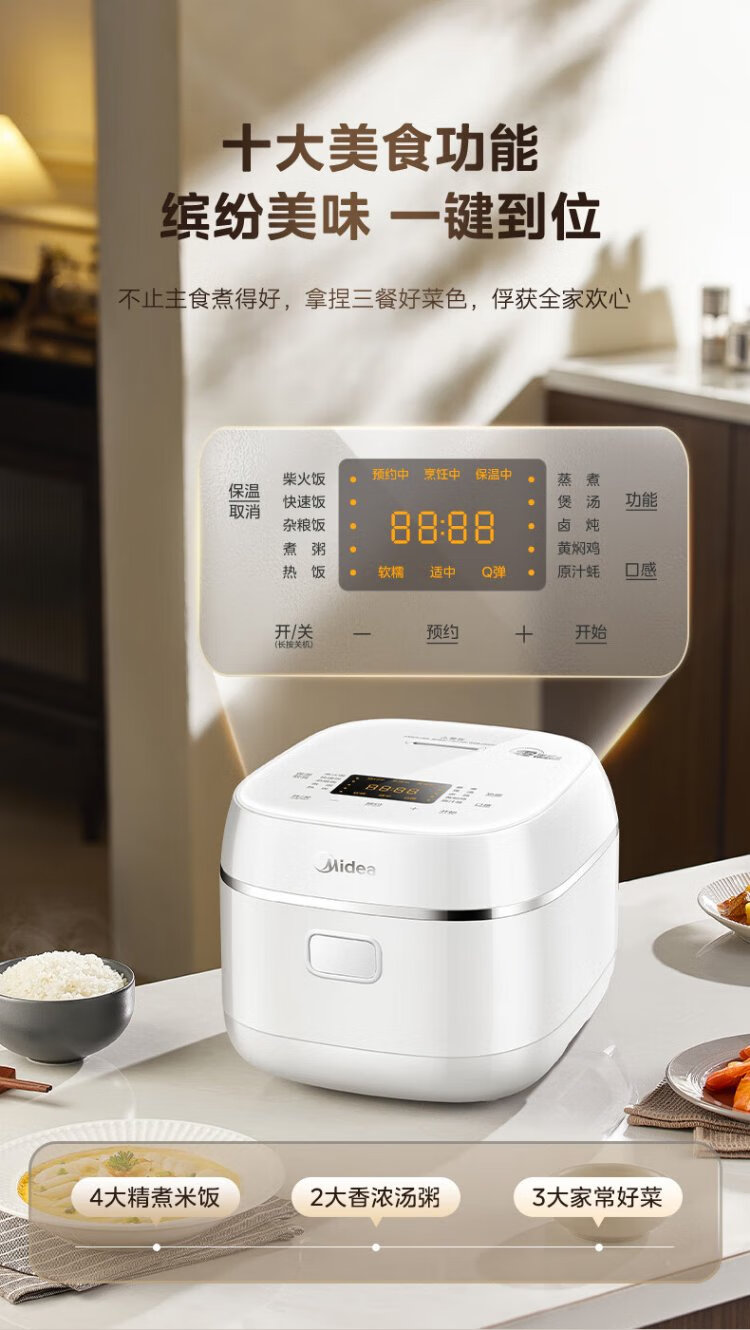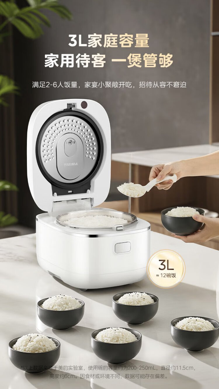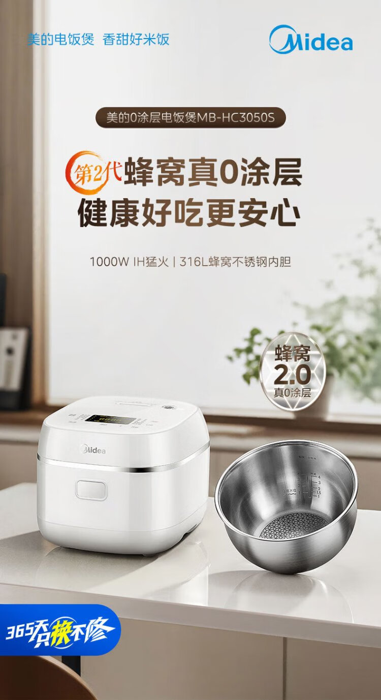Midea rice cooker 0 coating household 3L rice cooker stainless steel uncoated honeycomb liner 2-3 people IH heating smart multi-function rice cooker HC3050S government subsidy