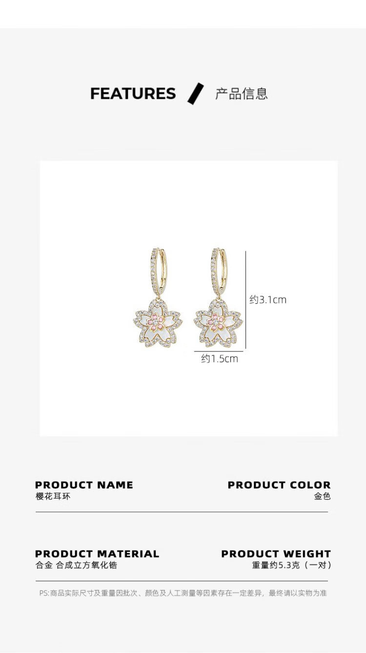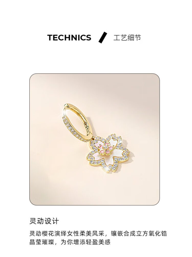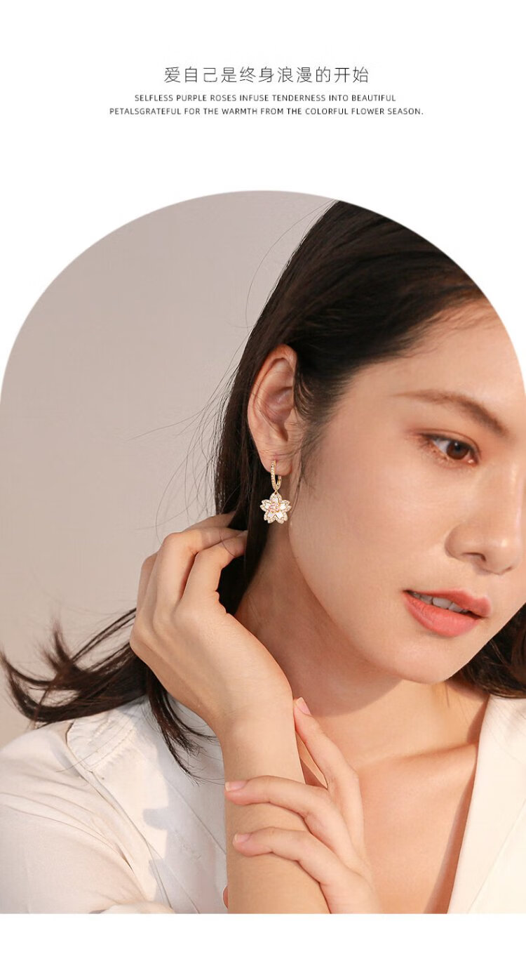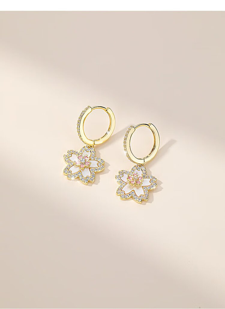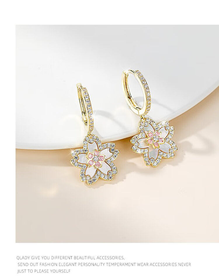 Qlady Sakura Earrings Women's Niche Unique Earrings 2025 New High-end Light Luxury Earrings Birthday Gift