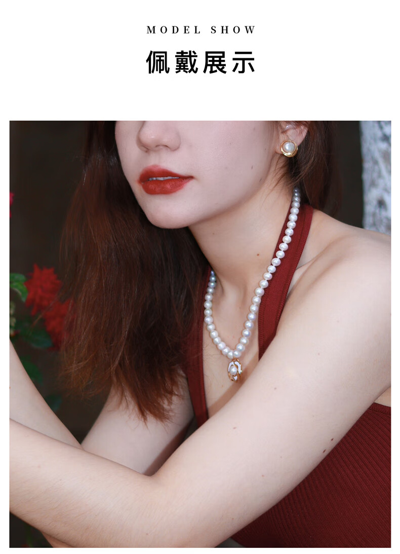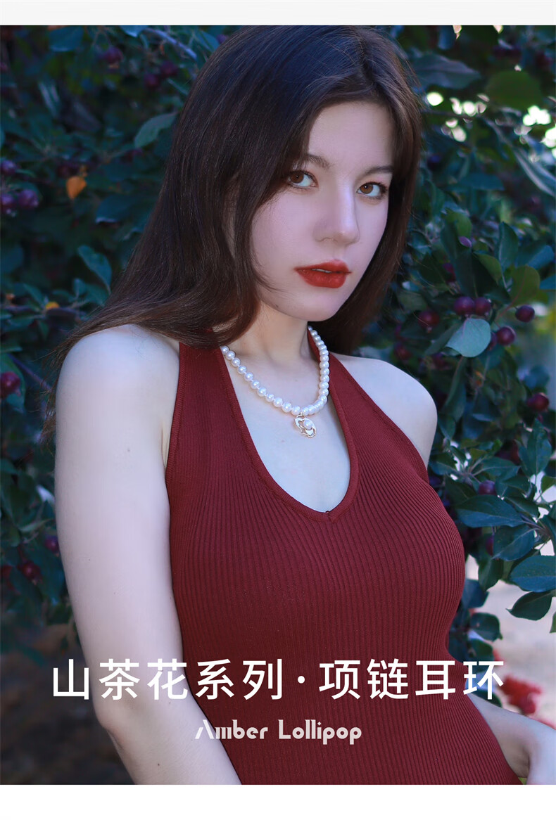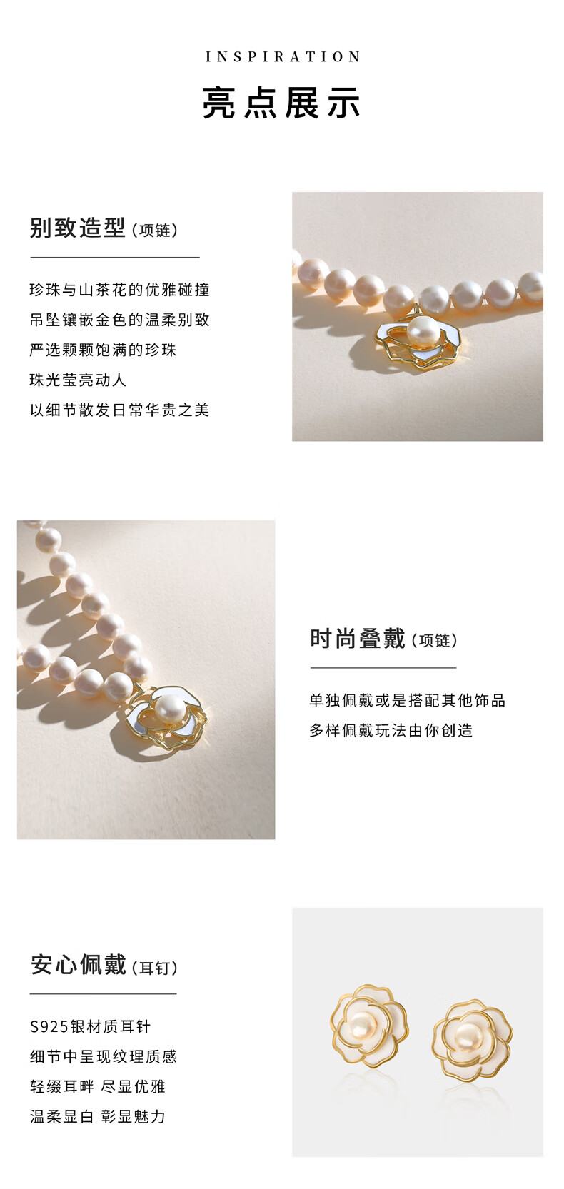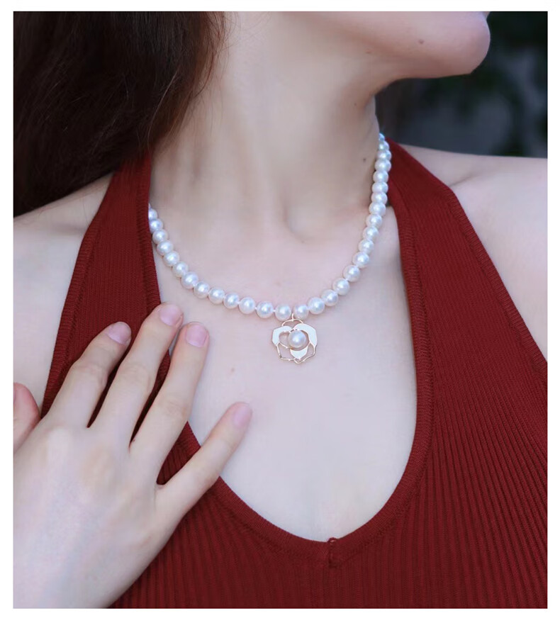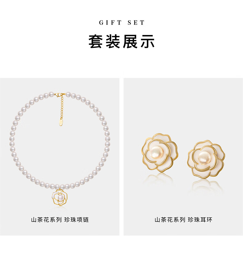 Amber Lollipop light luxury pearl necklace set female camellia pendant earrings anniversary birthday gift for girlfriend and wife