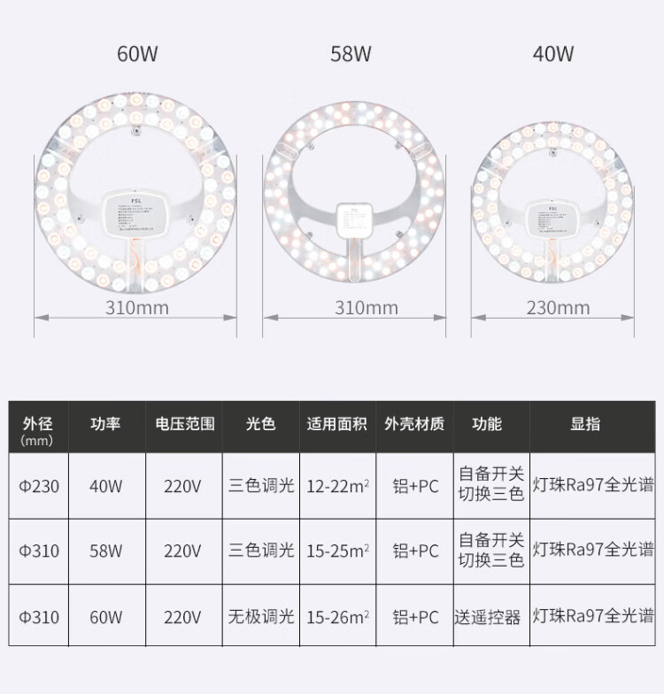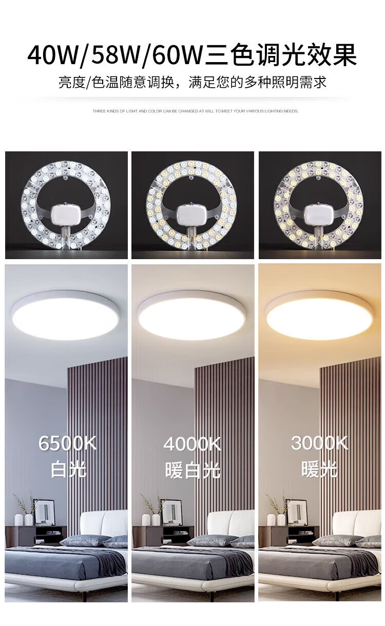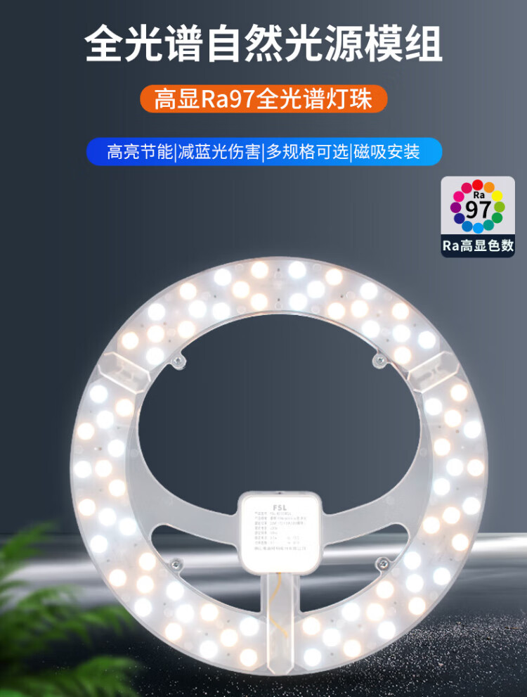 Foshan Lighting (FSL) led ceiling lamp wick modification lamp panel Ra97 high display full spectrum three-color module replacement lamp panel light source full spectrum 60w three-level color adjustment