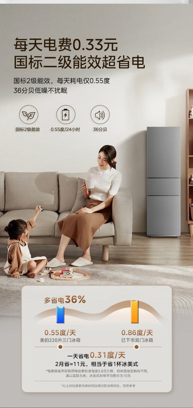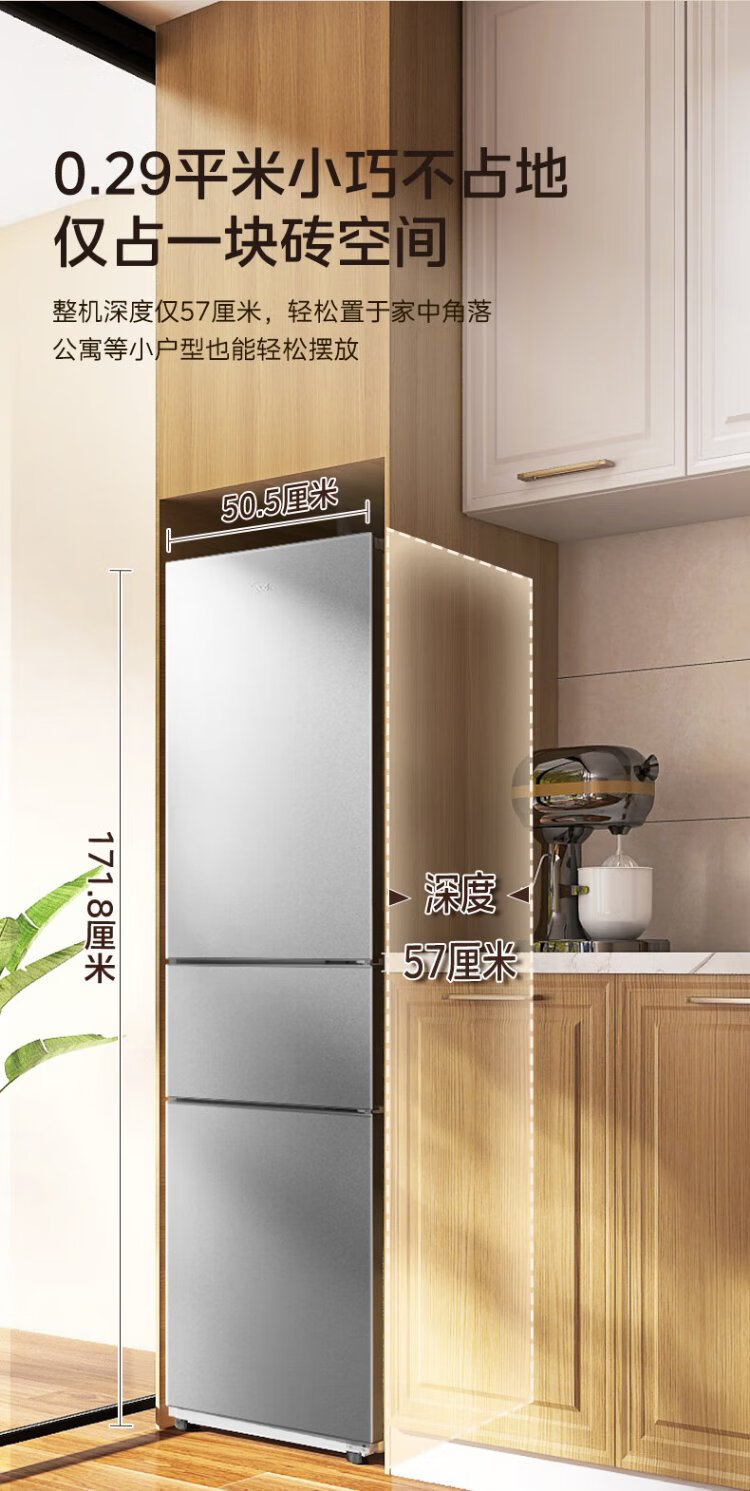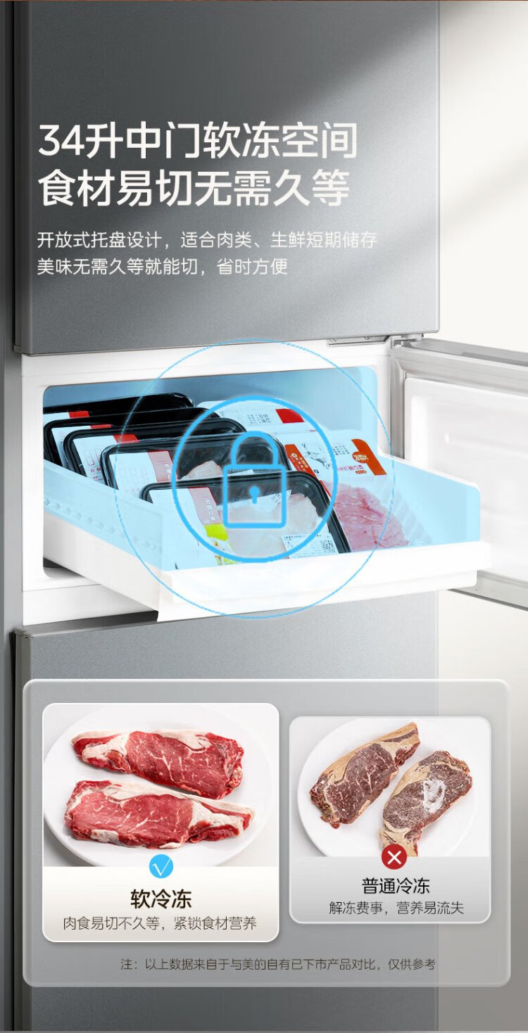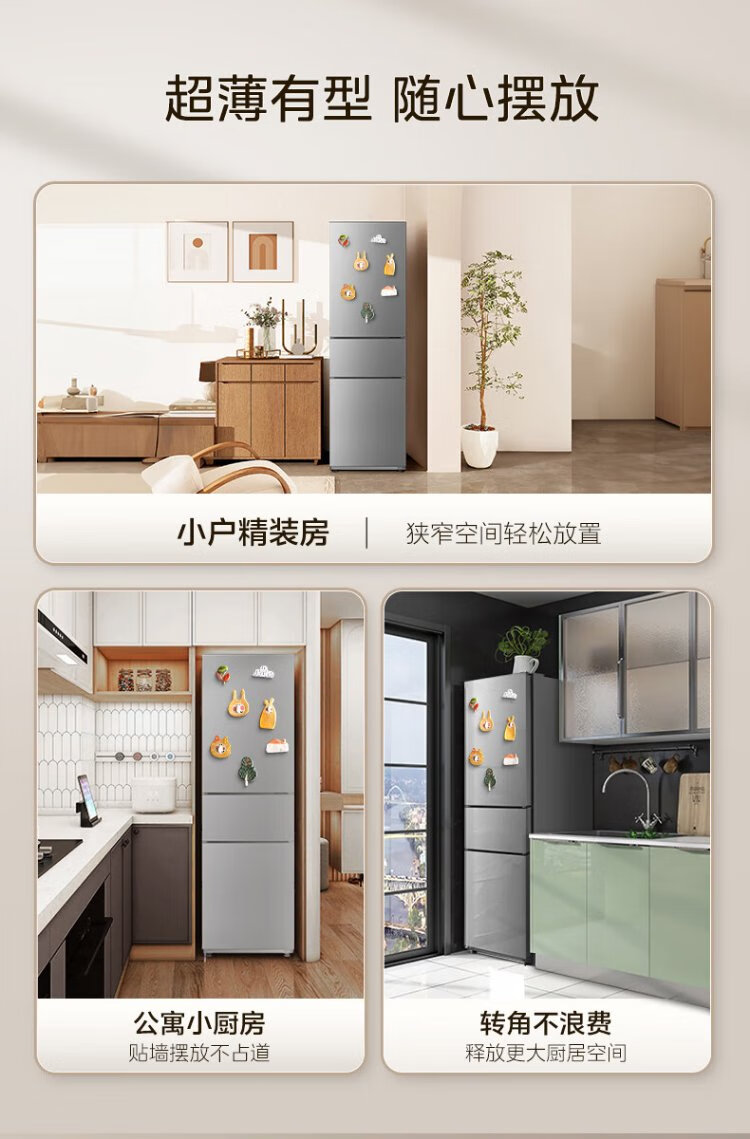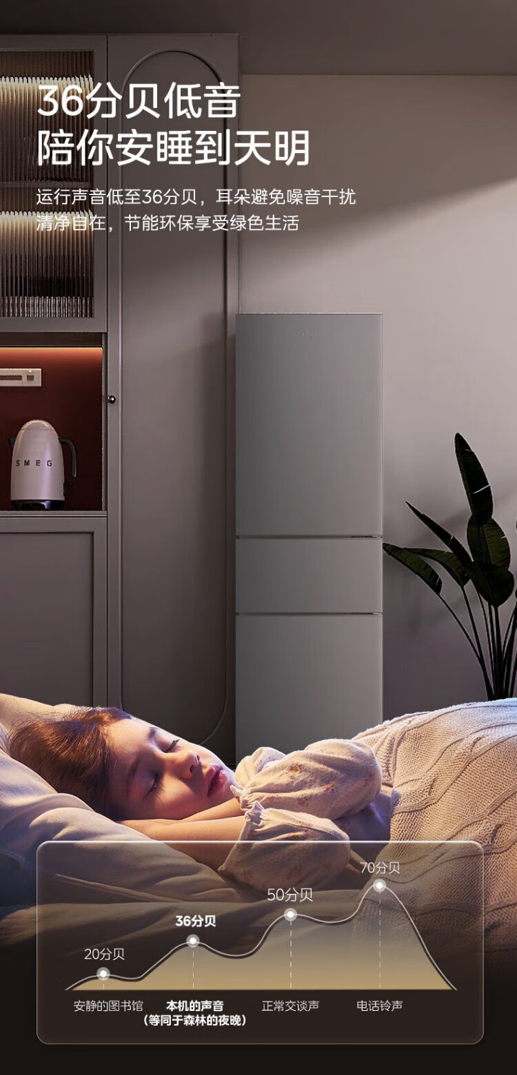 Midea 220-liter three-door three-temperature rental home living room dormitory small refrigerator three-door energy-saving bass operation trade-in BCD-220TM national subsidy