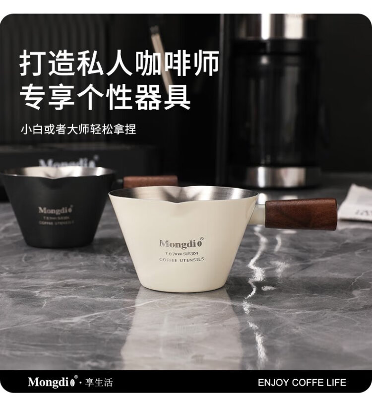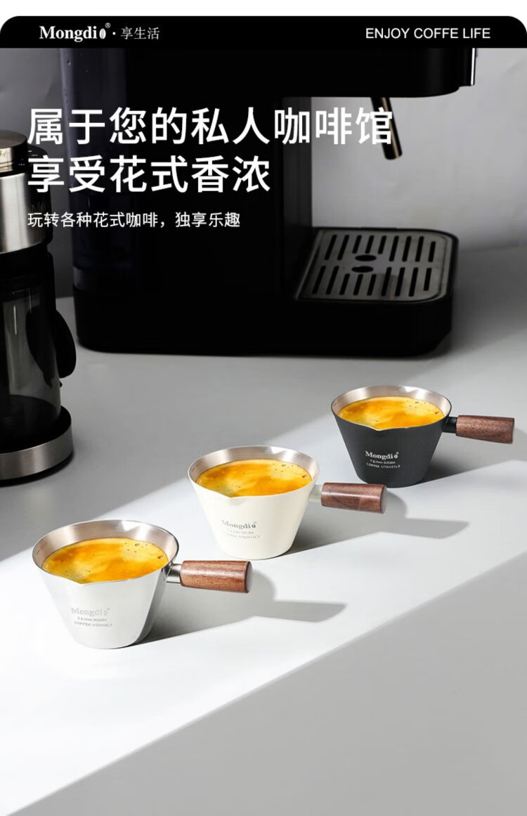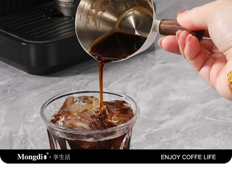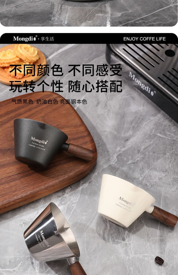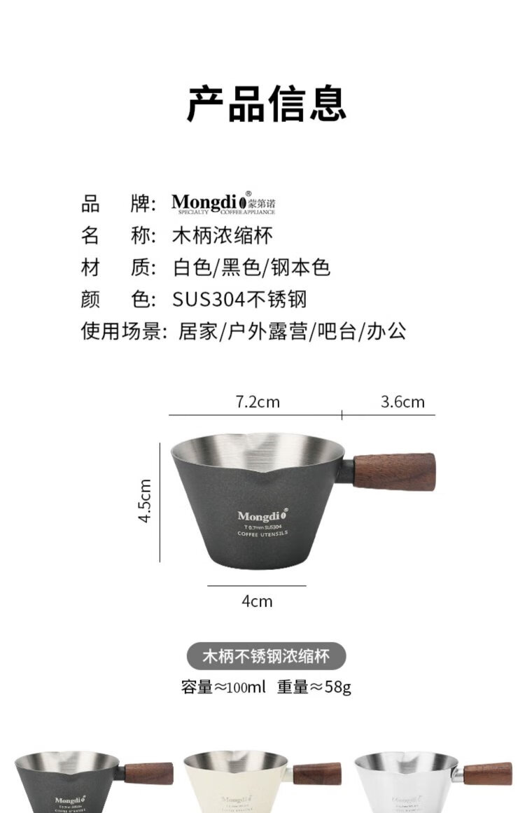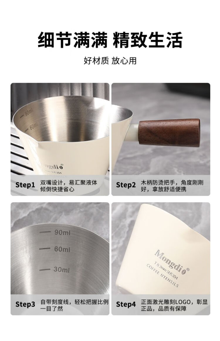 Mongdio coffee extraction cup wooden handle espresso cup coffee liquid cup stainless steel coffee liquid measuring cup with scale