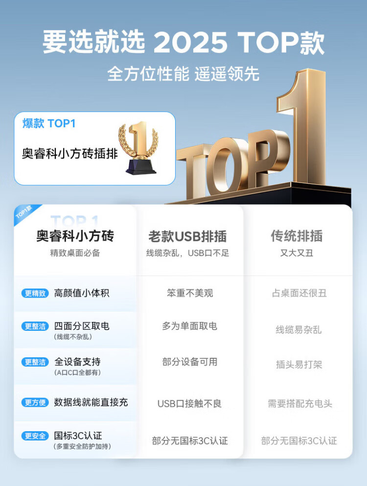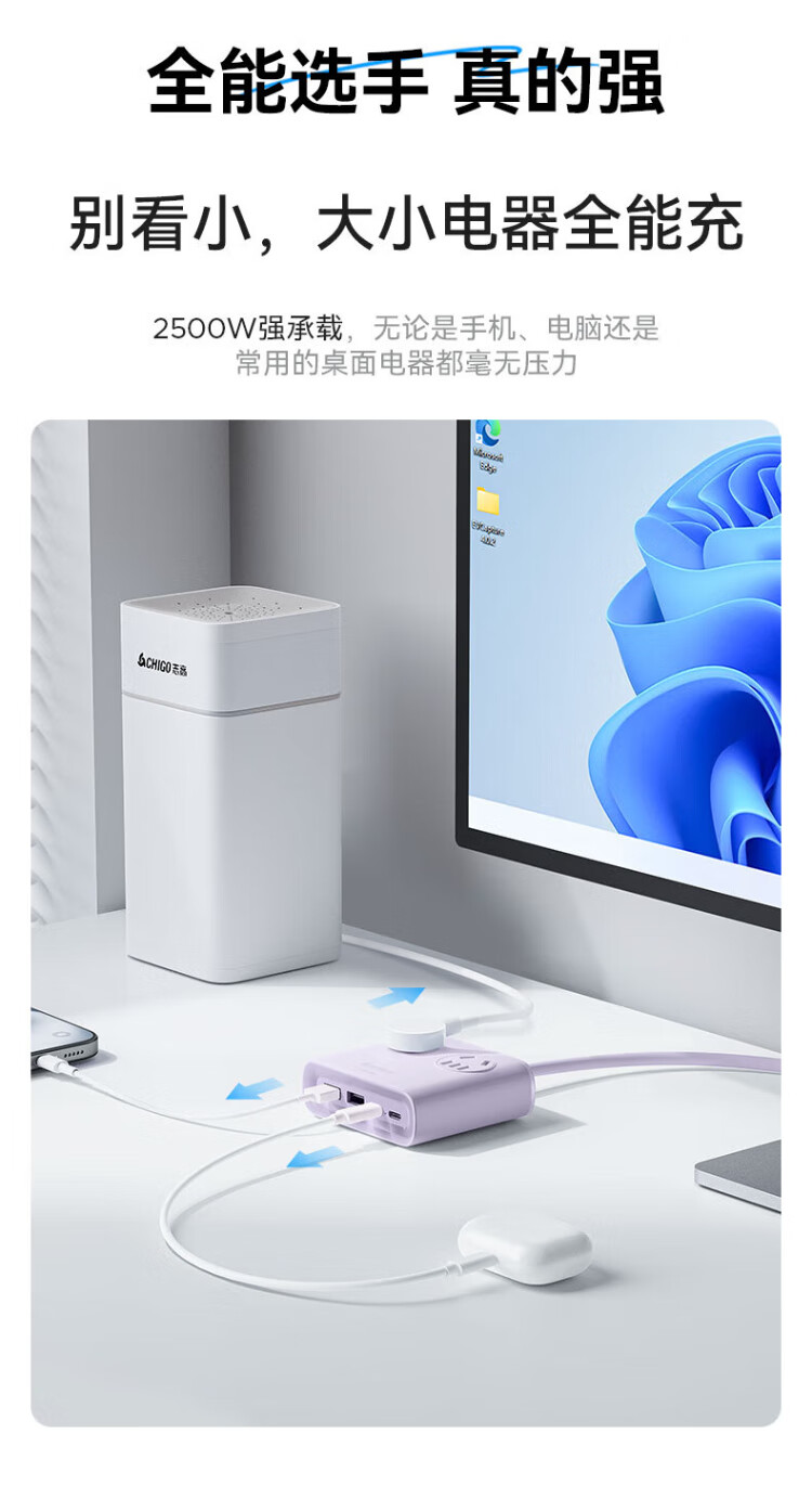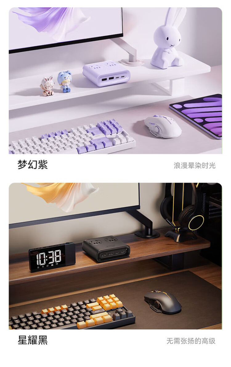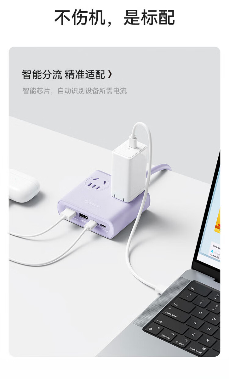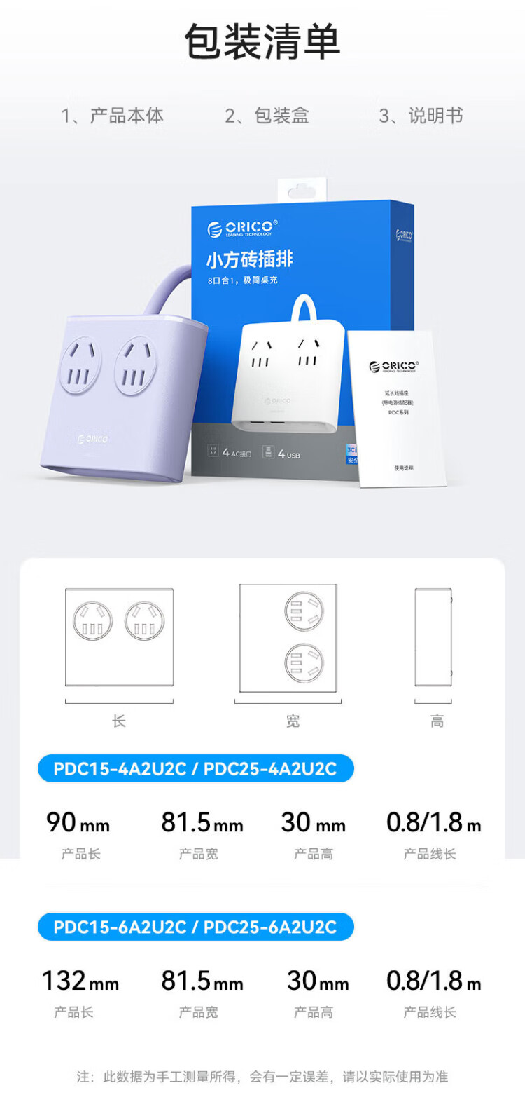 Orrick suitable for iphone17 small square brick desktop charging station plug-in USB socket multi-function plug-in board full length 0.8 meters purple