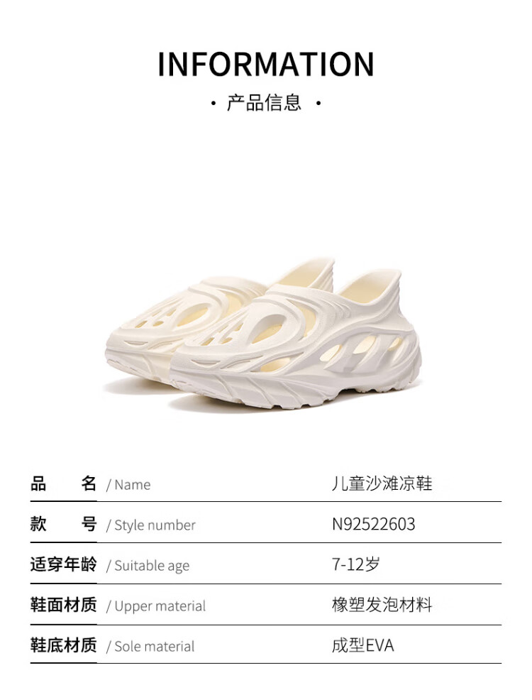 361 Children's Crocs 25 Summer Men's and Women's Breathable Soft Elastic Amphibious Beach Sandals White 36
