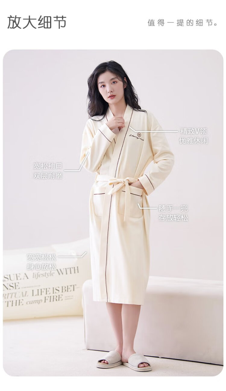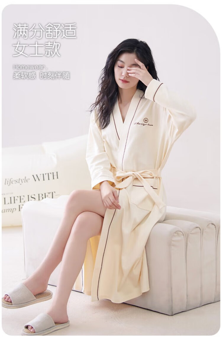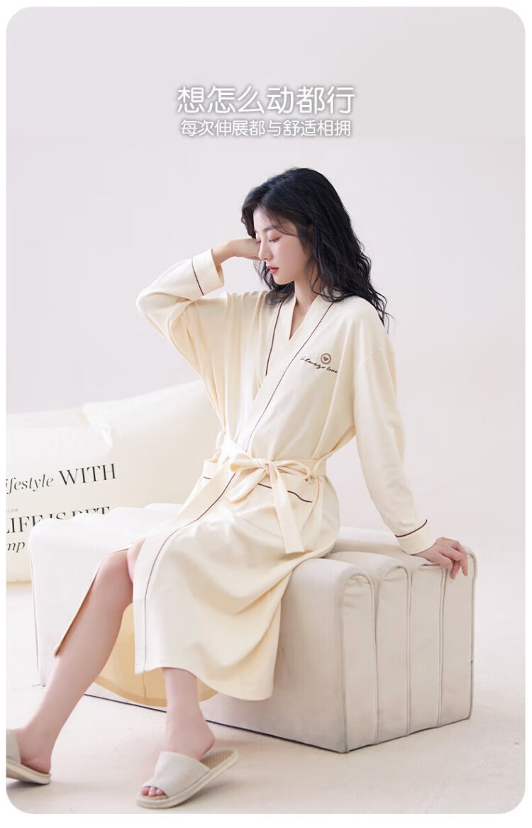 Catman Nightgown Women's Autumn and Winter Pure Cotton Bathrobe Long Sleeve 2025 New Style Wearable in All Seasons Large Size Mid-length Dressing Robe