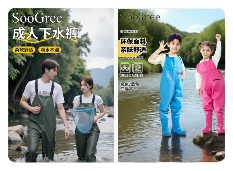 SooGree sea suit children's wading pants fishing clothing waders play sand water suit one-piece rain boots and rain pants one-piece catch fish