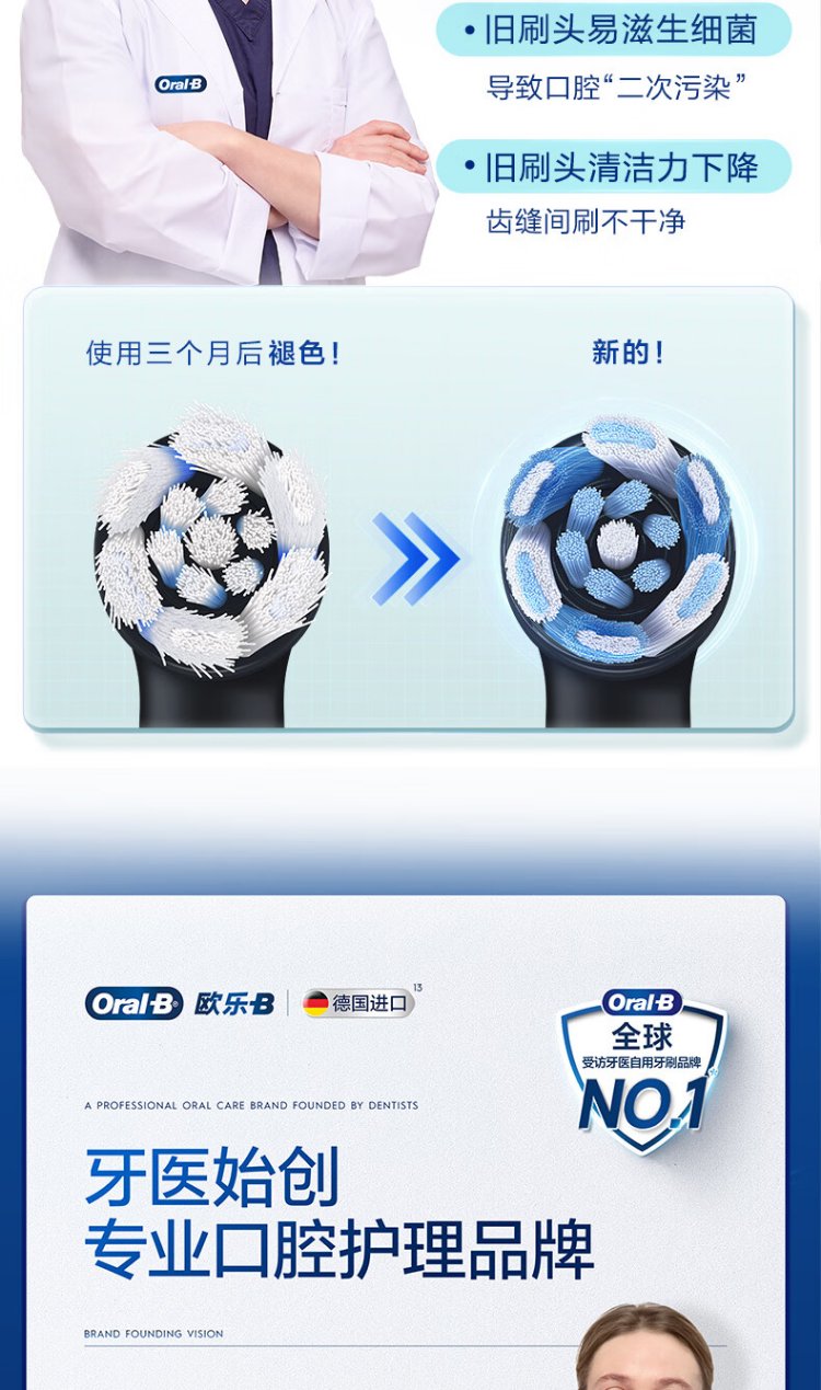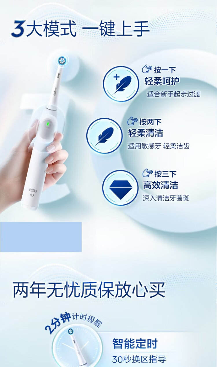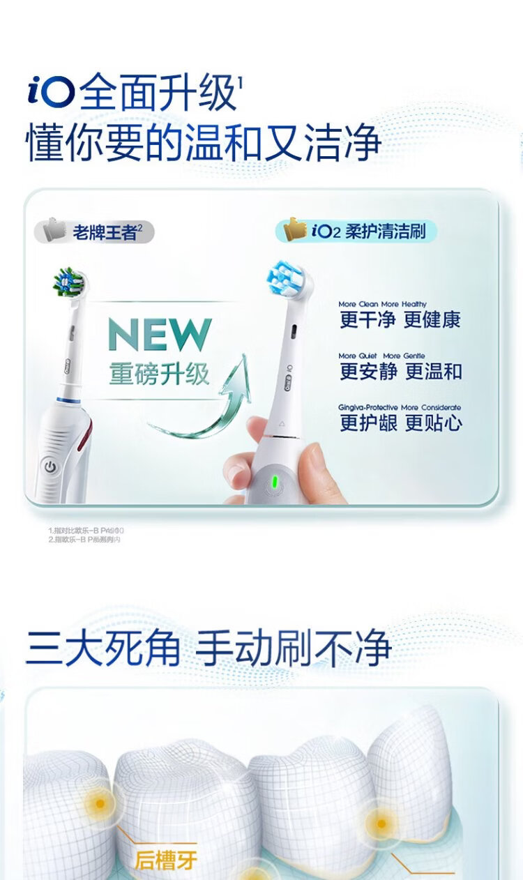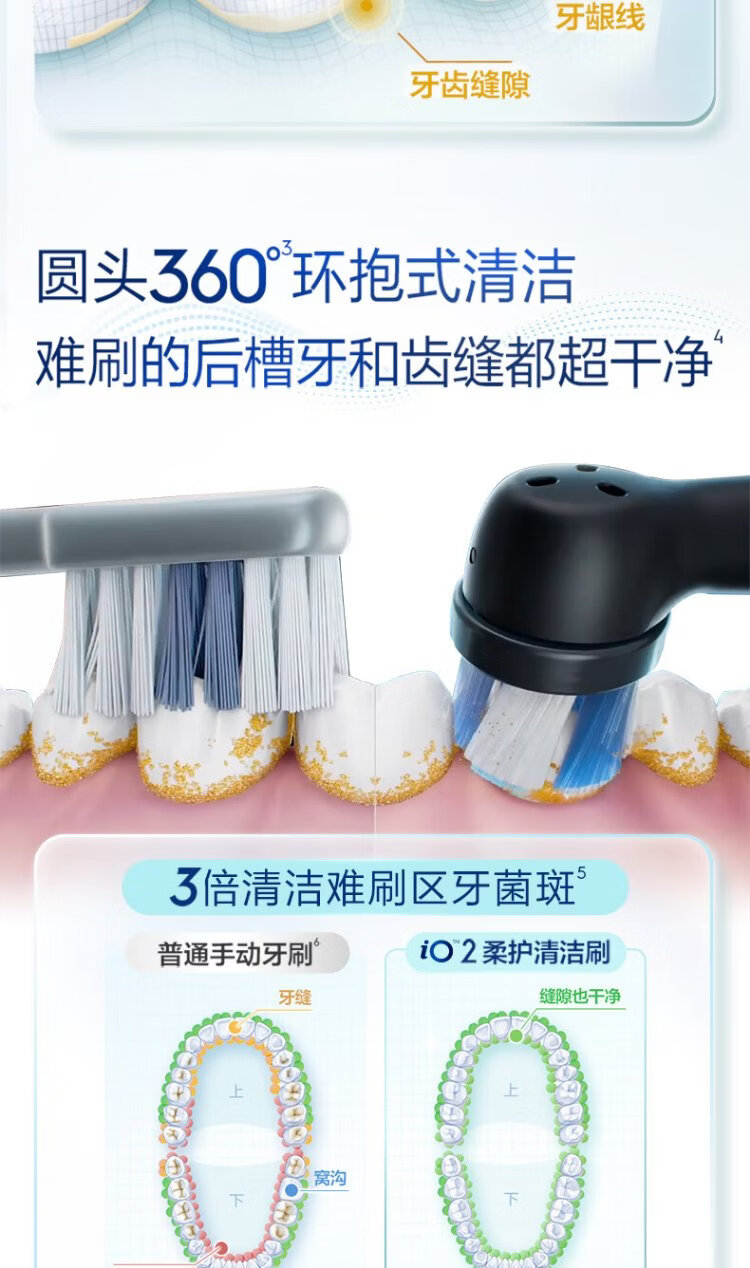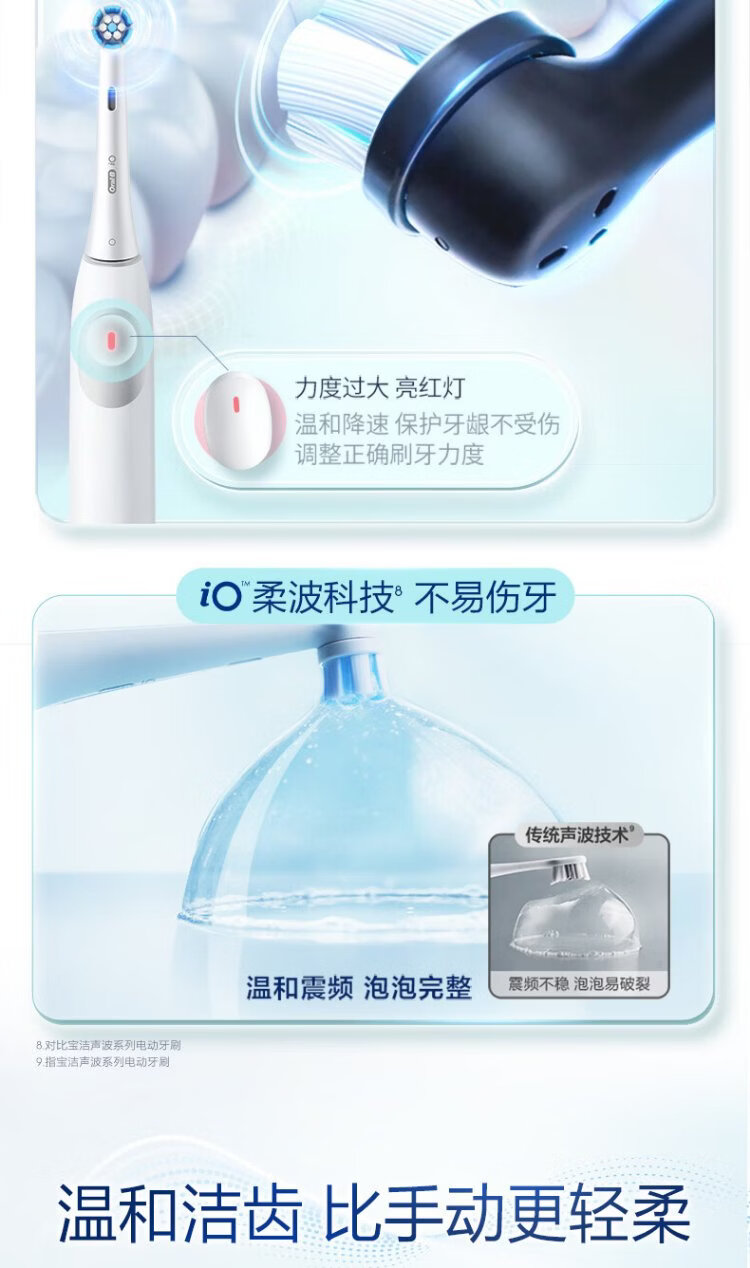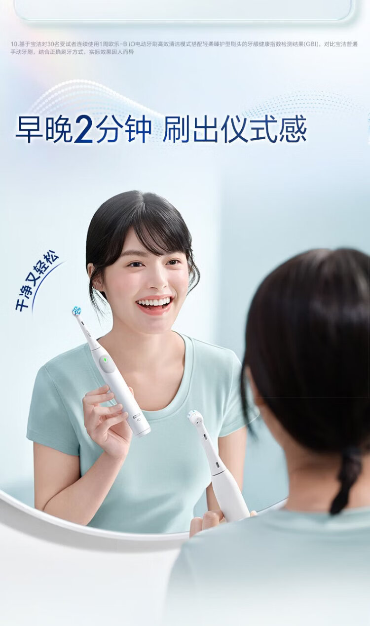 Oral-B Germany imported smart electric toothbrush iO2 elegant white brush head * 4 soft wave double clean brush OCC birthday gift for couples and New Year gift