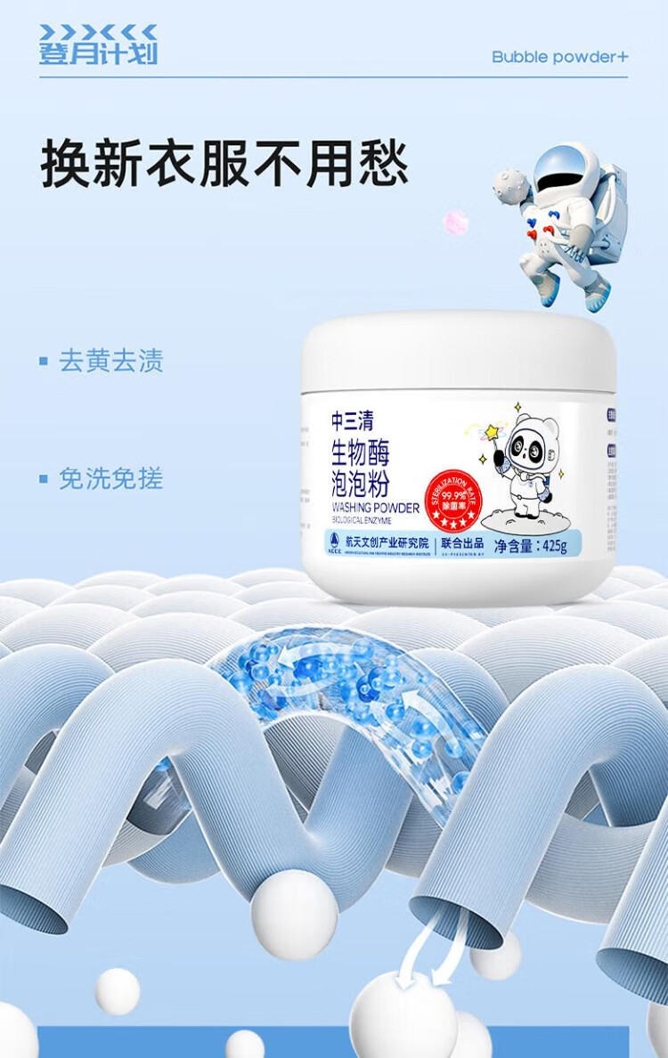 Zhongsanqing Bioenzyme Bubble Powder Laundry Stain Removal Strong Bleach Lazy Clothing Stain Removal Yellowing and Whitening Artifact