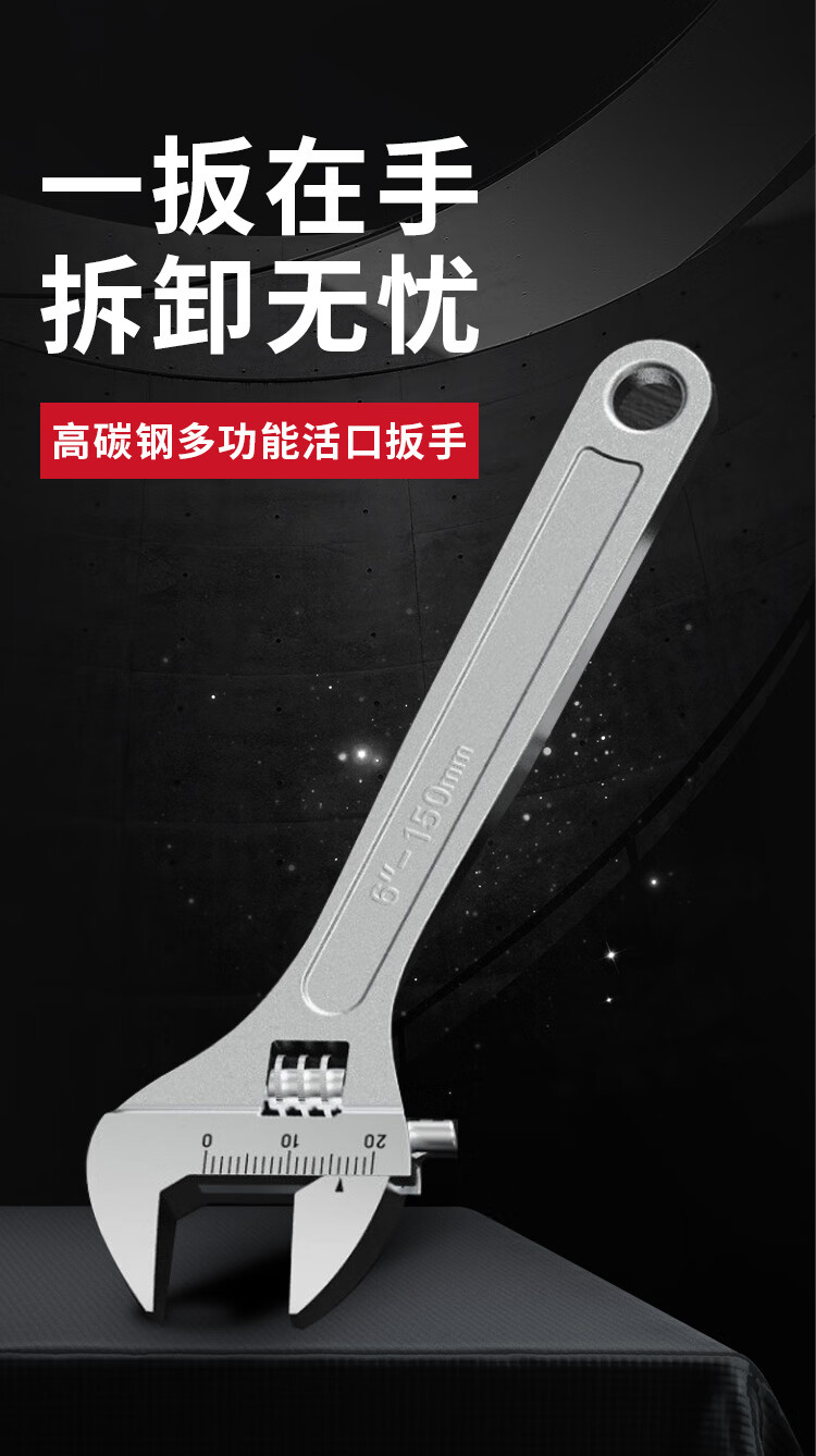 Factory No. 1 12-inch adjustable wrench universal live spanner large opening multi-functional household bathroom dual-purpose live spanner light handle