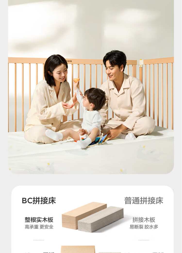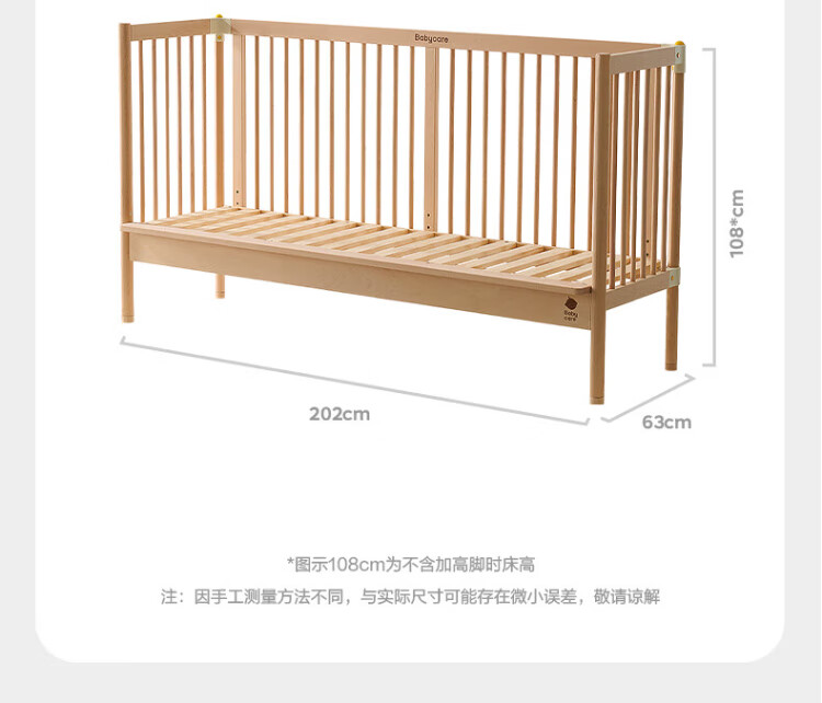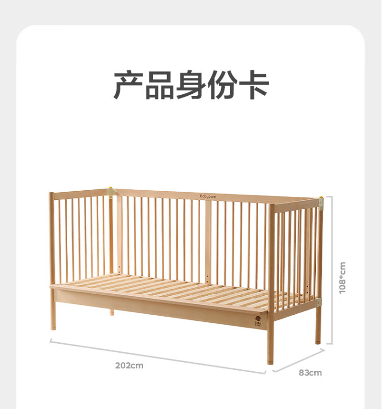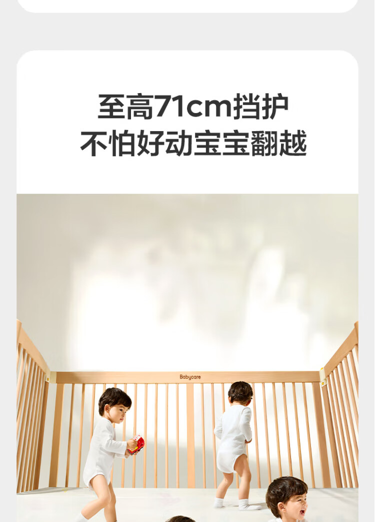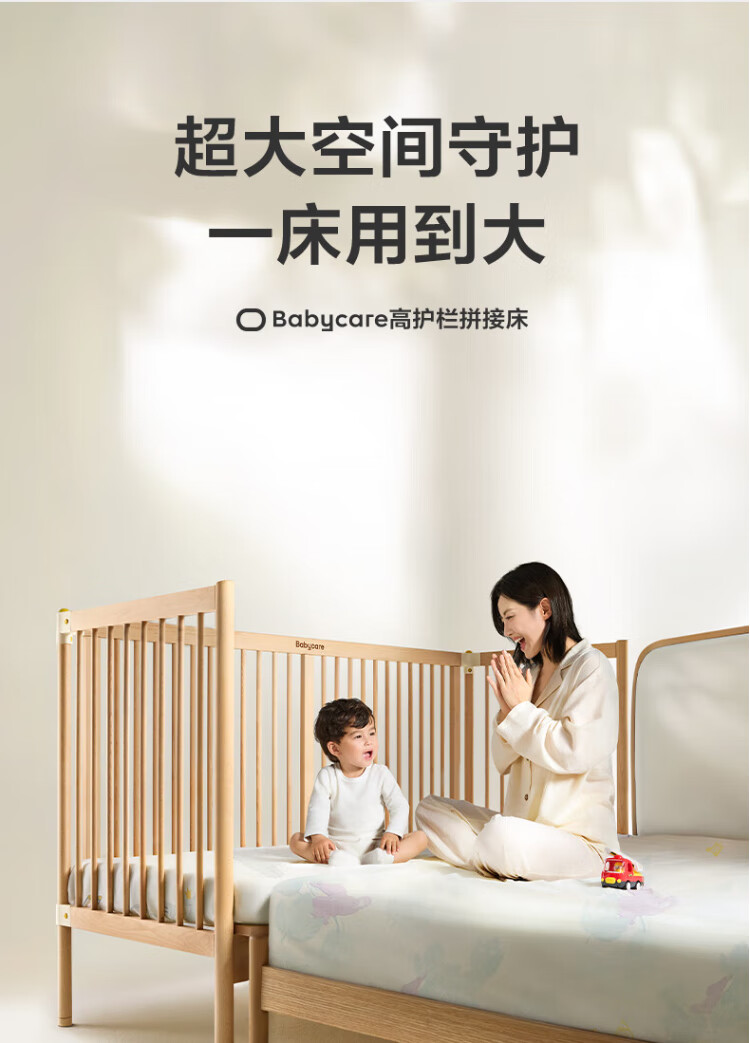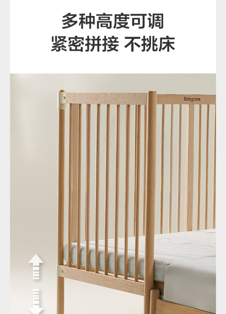 Babycare crib high guardrail splicing large bed newborn baby bed solid wood multi-functional children's bed 200*80cm