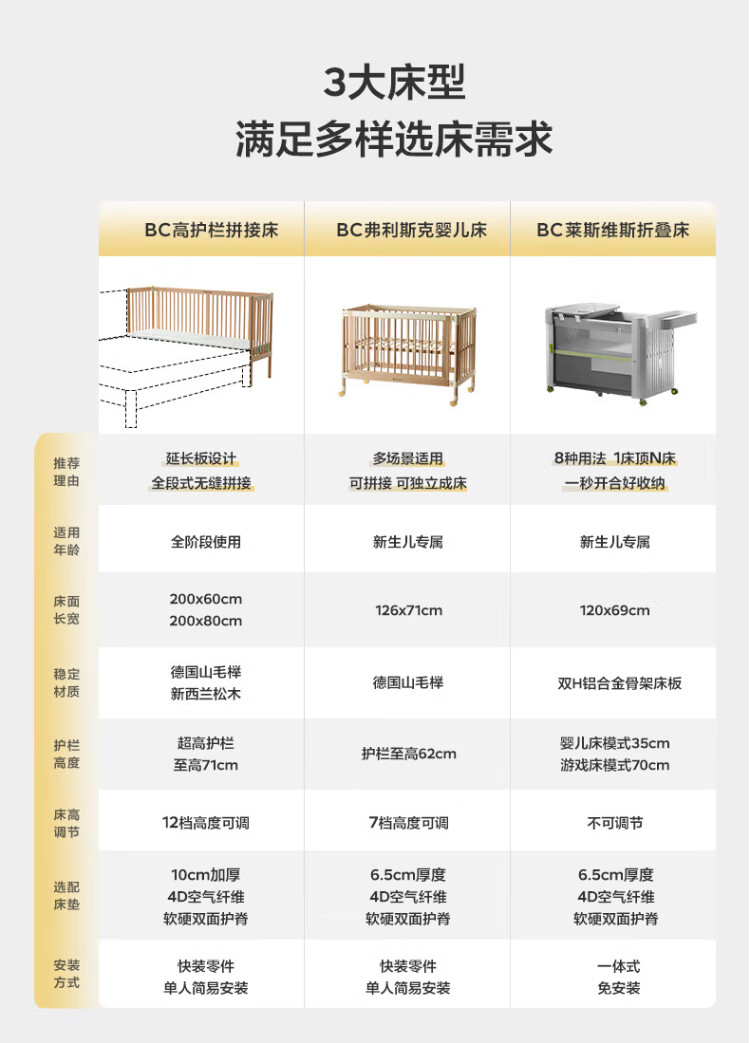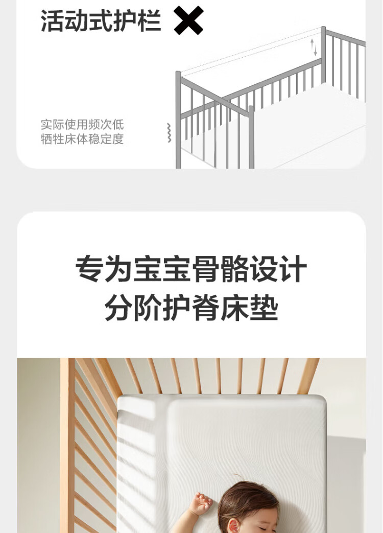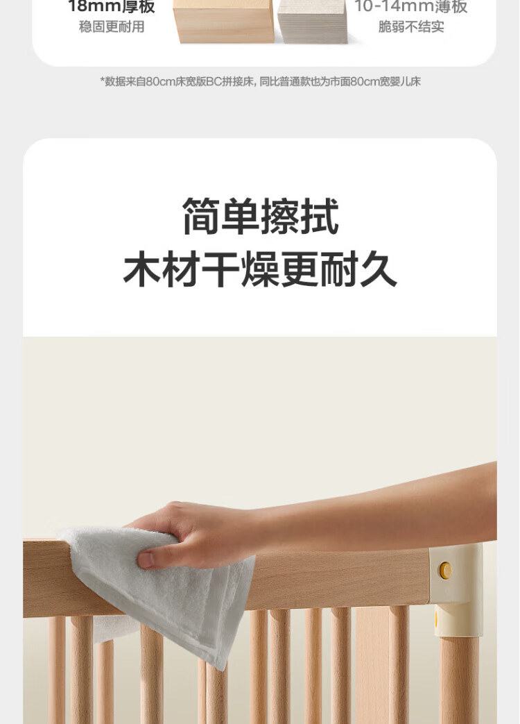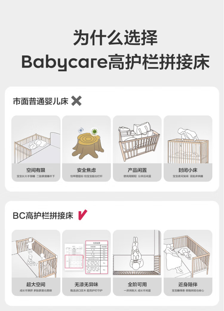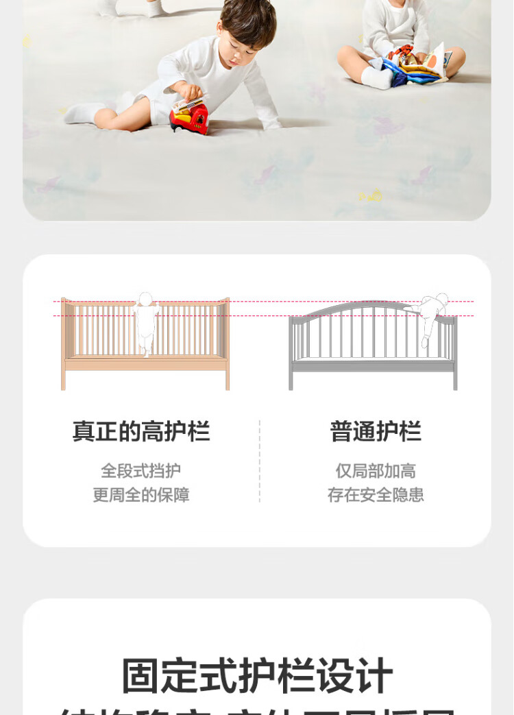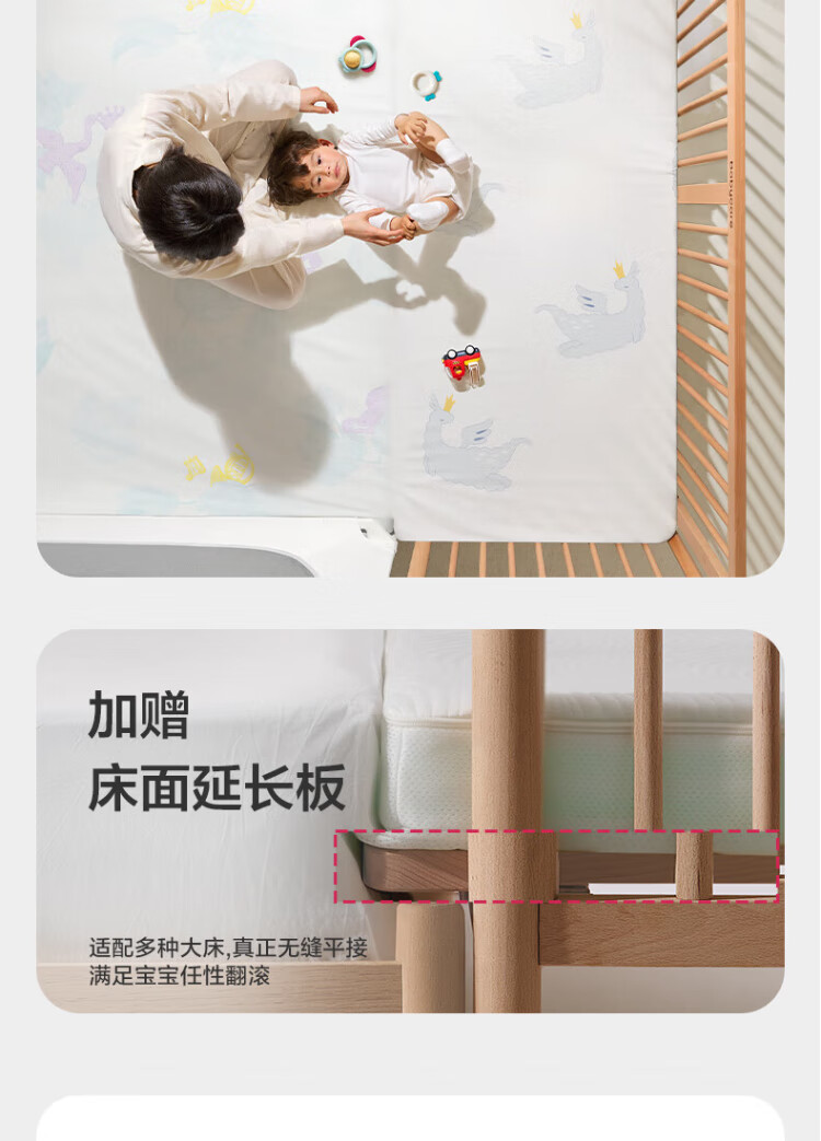 Babycare crib high guardrail splicing large bed newborn baby bed solid wood multi-functional children's bed 200*80cm