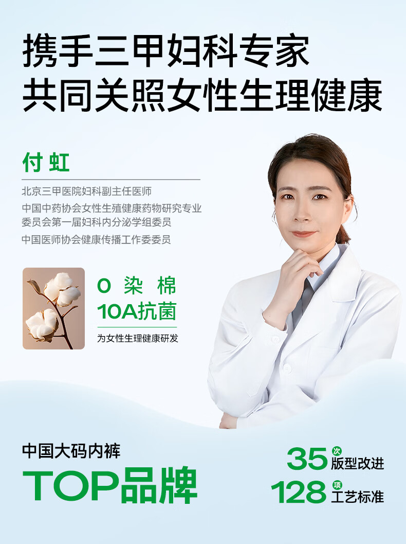 Gu Niangjia medical grade A cotton 10A antibacterial high-waist underwear zero-dyed cotton extended crotch women's seamless briefs soft and soft
