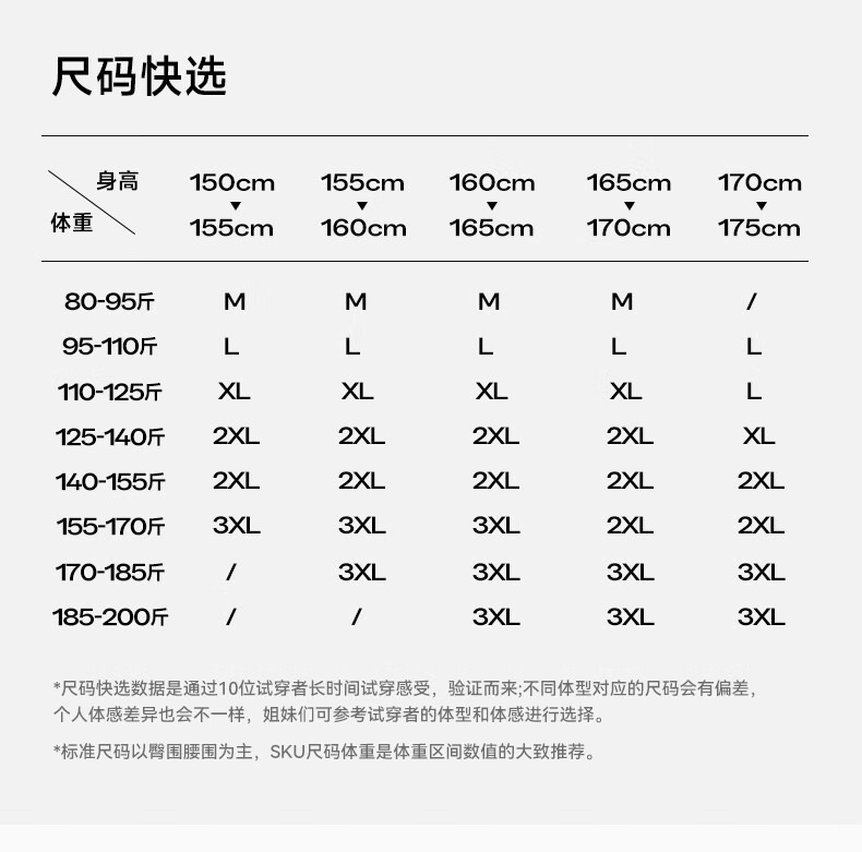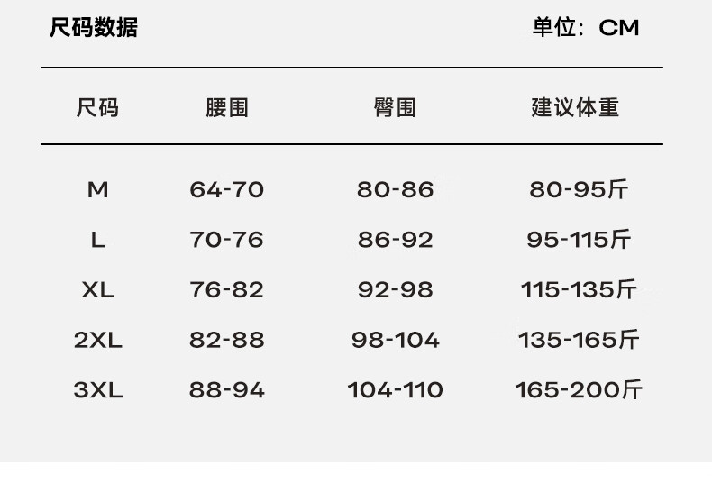 China (cm) 160-165/84-86 165-170 / 88-90 167-172 / 92-96 168-173 / 98-102 170-176 / 106-110