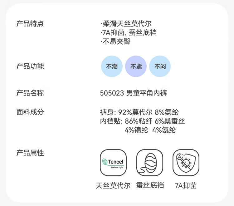 Jiu Suiban children's underwear boys' modal silk bottom boxer briefs for large children 7A antibacterial boxer briefs 505023Z