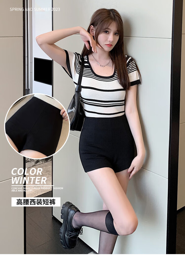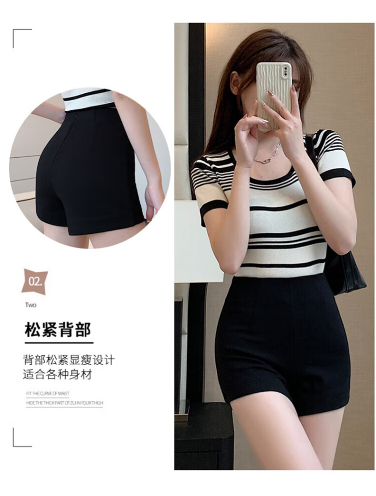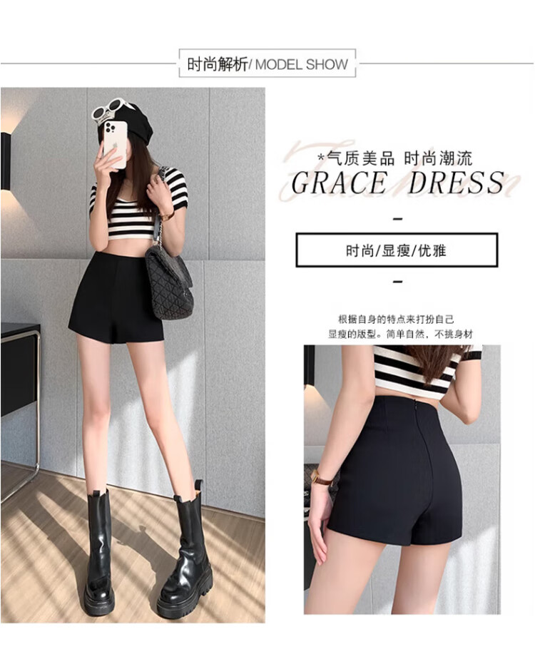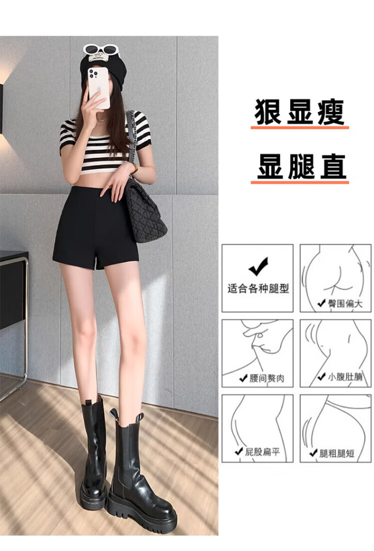 Langsha Suit Shorts Women's 2025 Autumn Thin Slim Black Shorts Korean Style Versatile High Waist Stretch Bottoming Hot Pants