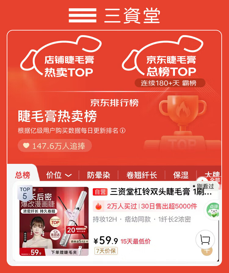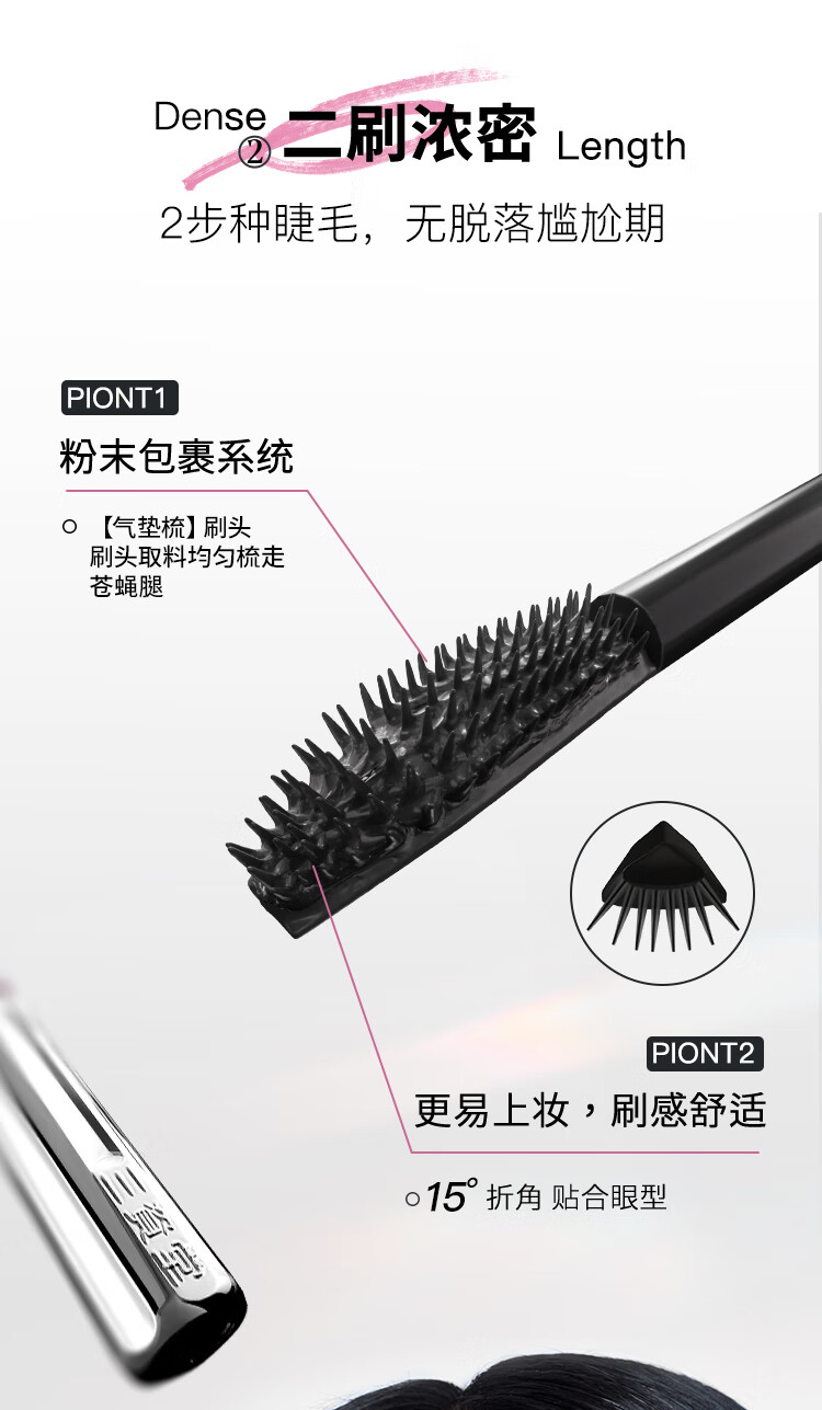 Sanzido Barbell Double-ended Mascara, 1 swipe for long, 2 swipes for thick curls, no smudge, waterproof, long-lasting, natural look