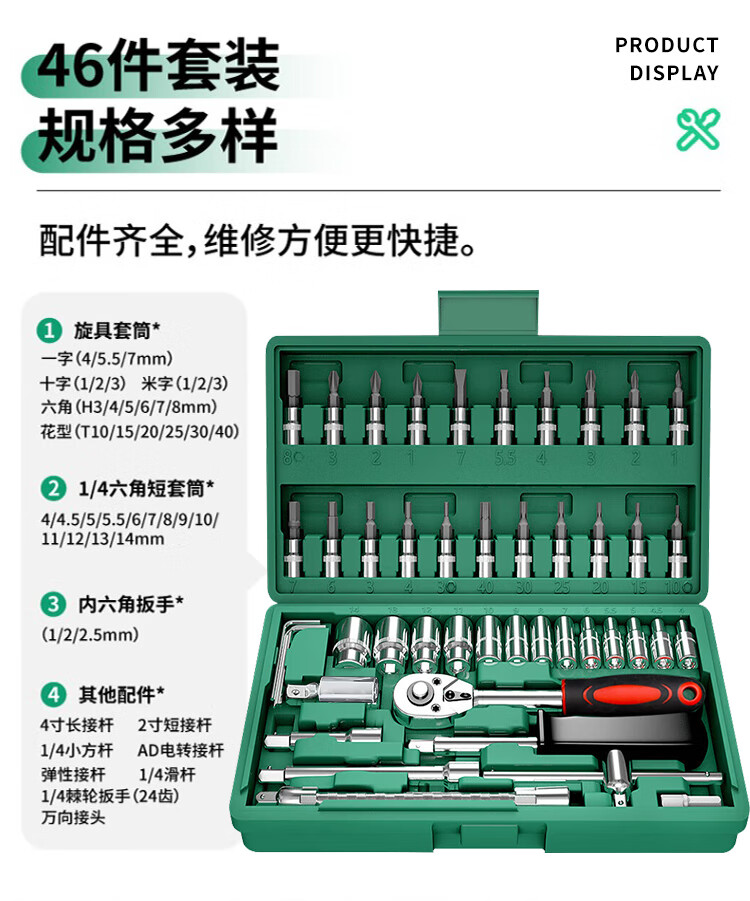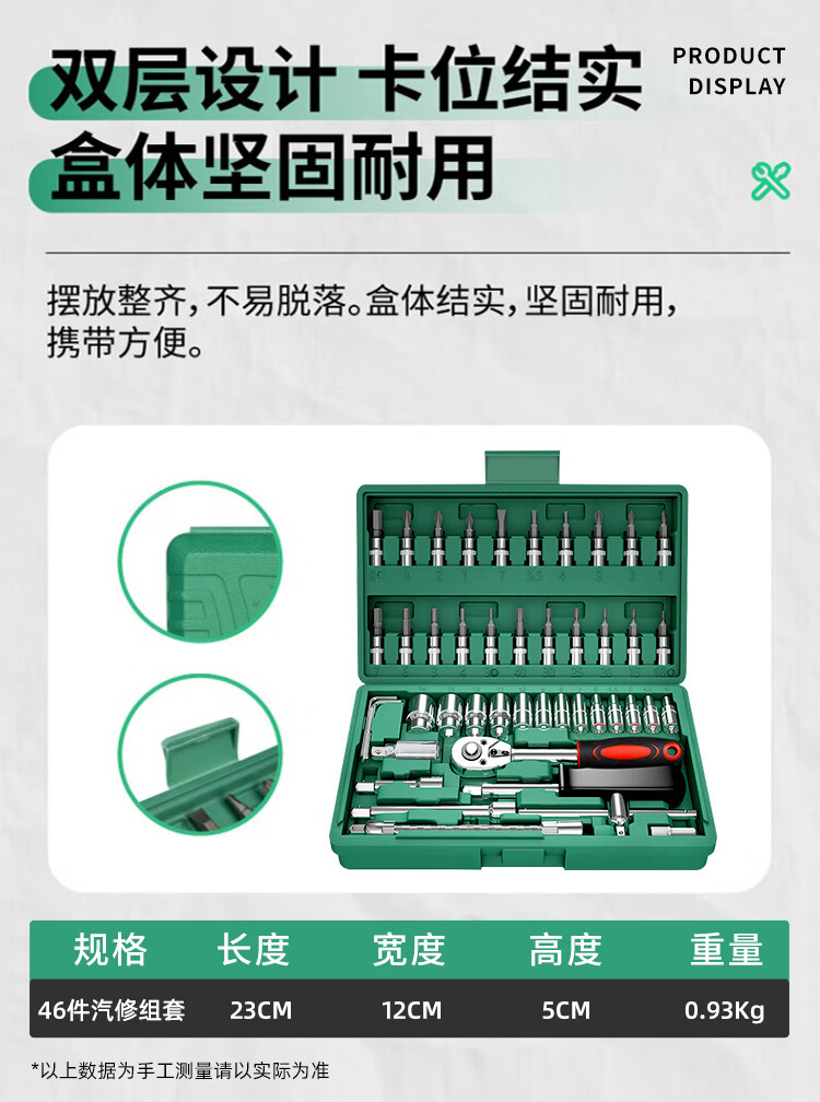 Huang Xiaochao's 48-piece auto repair tool set, socket wrench, ratchet torque wrench, full set of Xiaofei motorcycle repair box screws