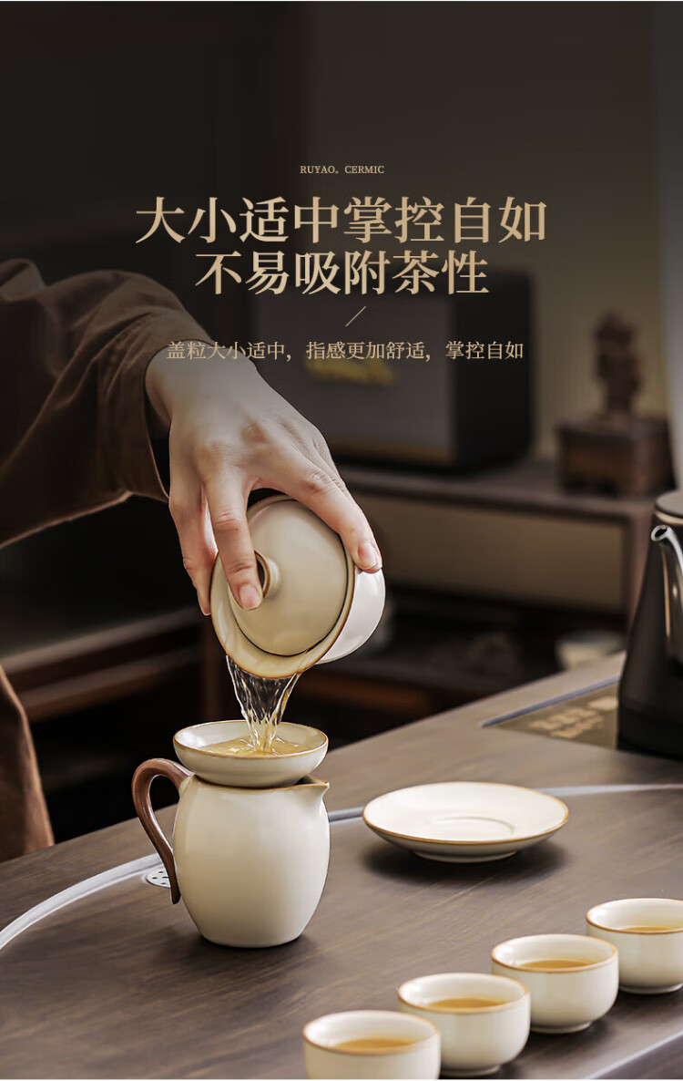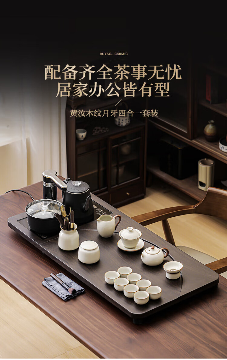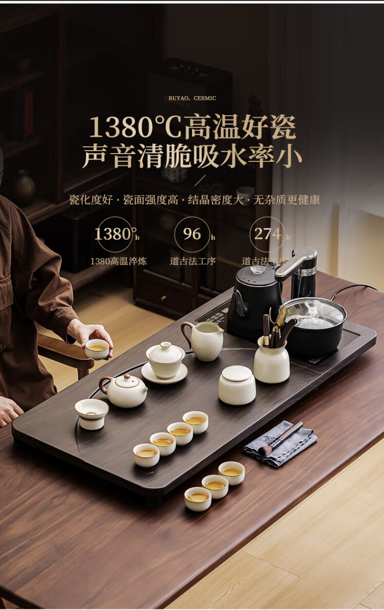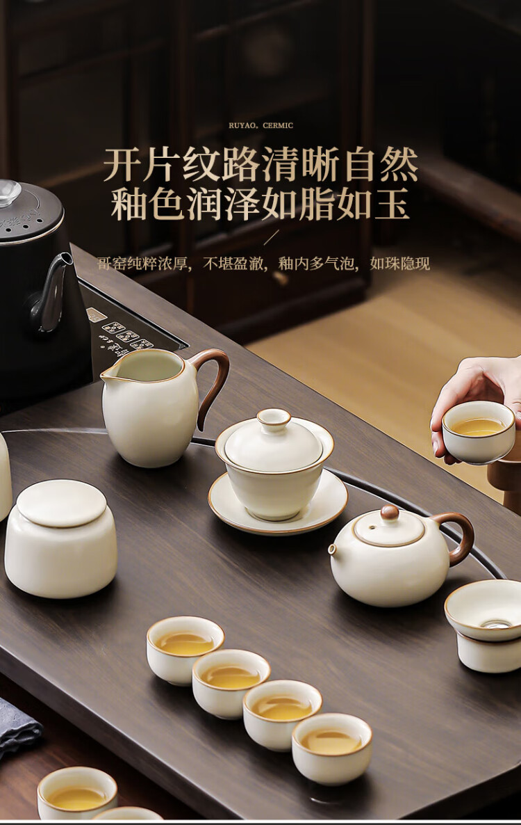 Bowei (BW) high-end tea set for home use, Ru kiln tea set, tea tray, integrated kettle for tea making, Yueya Yunqi