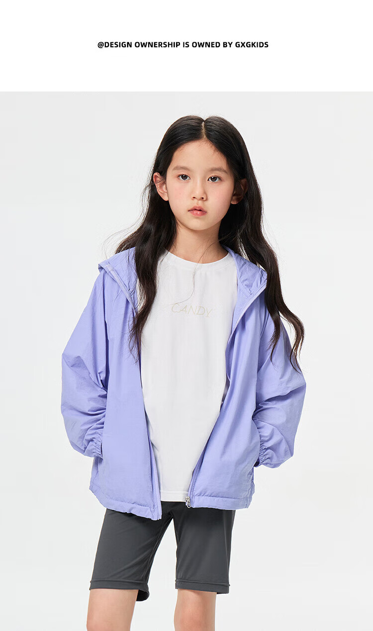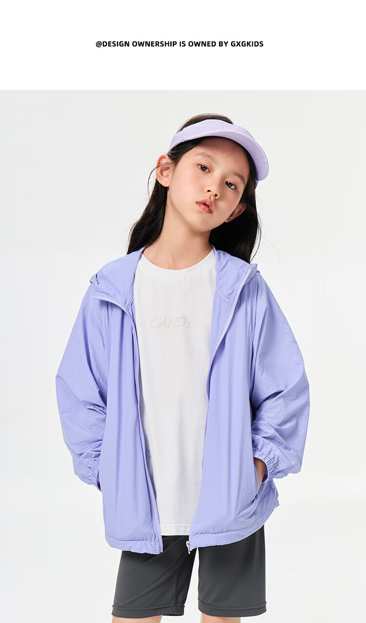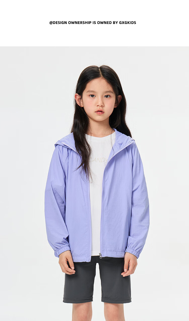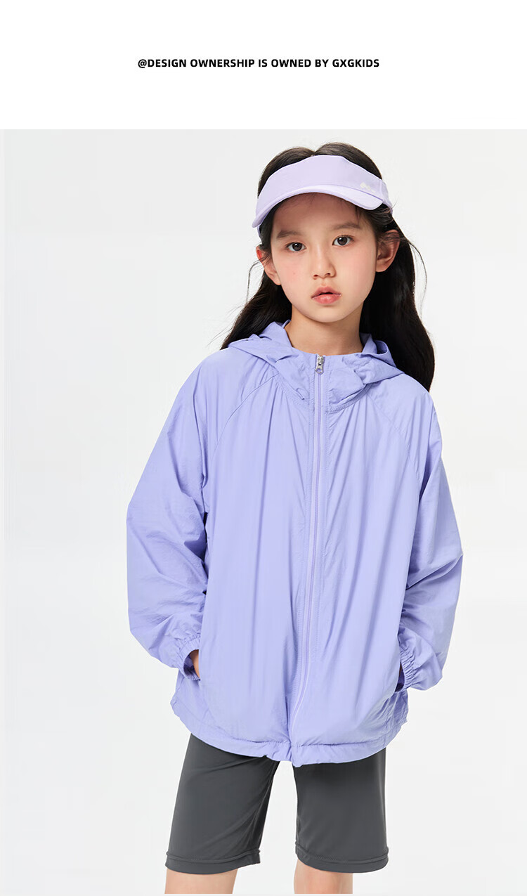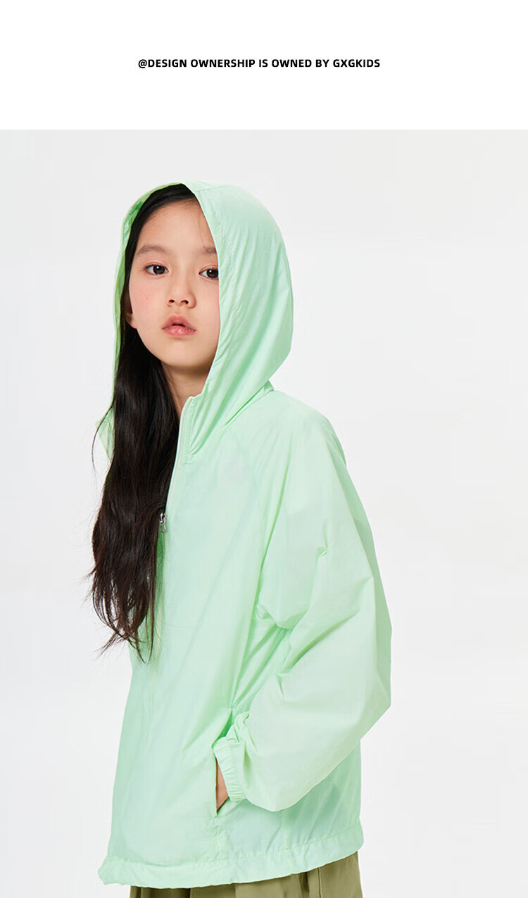 GXG children's summer new hooded jacket medium and large children's loose solid color sun protection outerwear