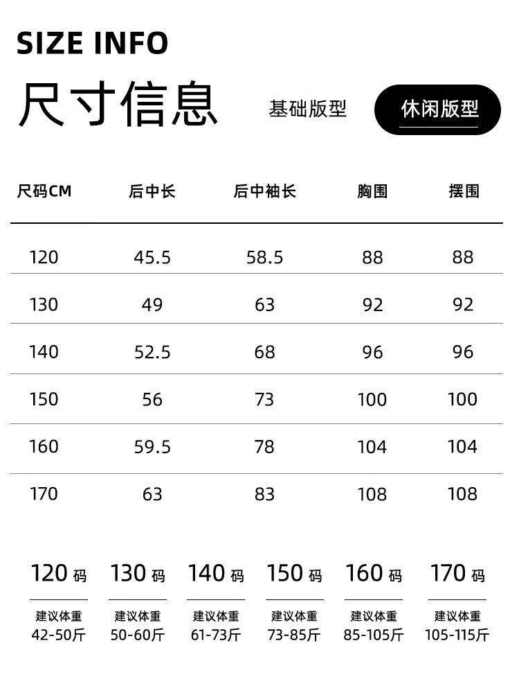 China (cm) 160-165/84-86 165-170 / 88-90 167-172 / 92-96 168-173 / 98-102 170-176 / 106-110