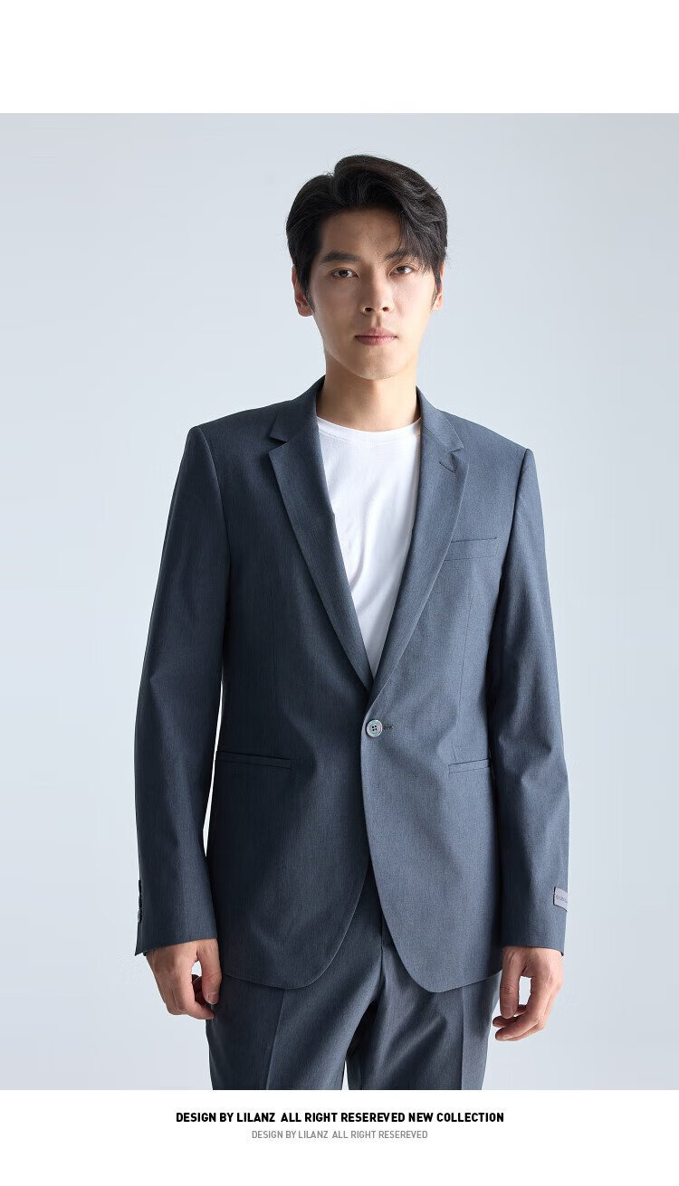 Lilang Double Elastic Texture Suit Men's Easy Commuting Business Suit Set Light Gray 175A