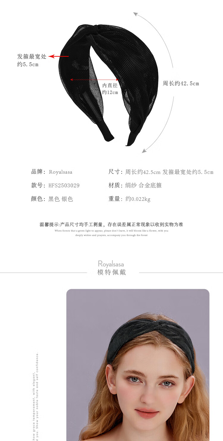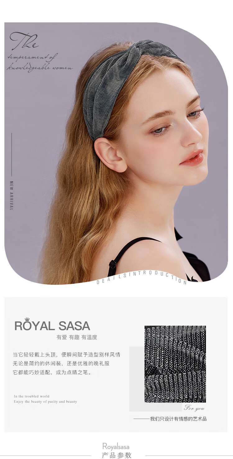 Royal sasa royal sasa high-end wide-brimmed headband with temperament and high skull pressure hair headband bundled hair outer hair accessories headdress for women
