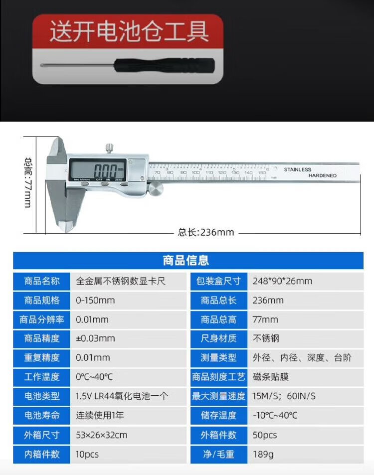 Mitzi 0-150mm high-precision electronic digital display vernier caliper large screen stainless steel caliper high-definition digital display caliper professional caliper