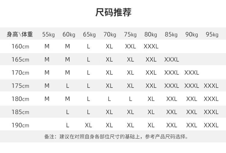 China (cm) 160-165/84-86 165-170 / 88-90 167-172 / 92-96 168-173 / 98-102 170-176 / 106-110