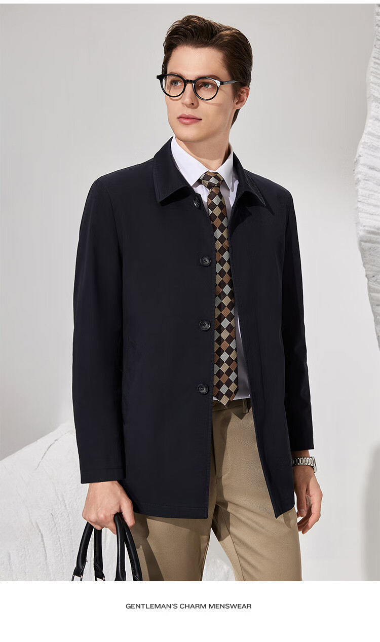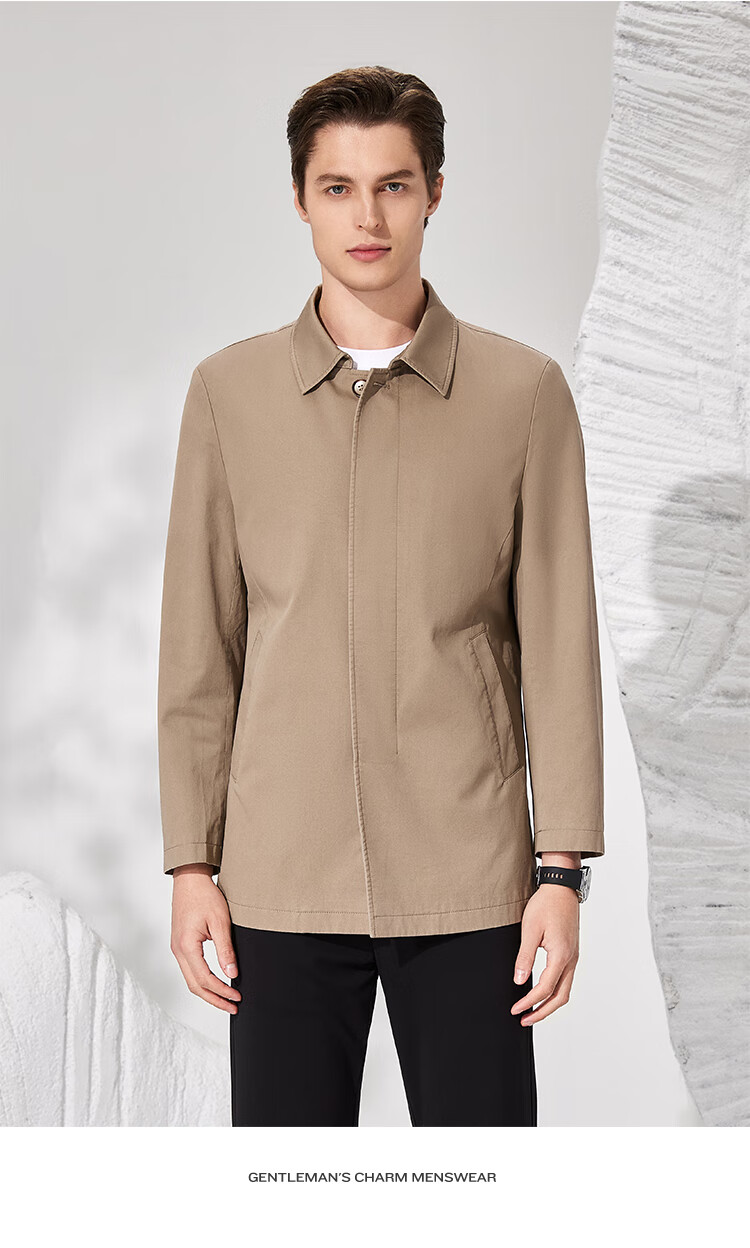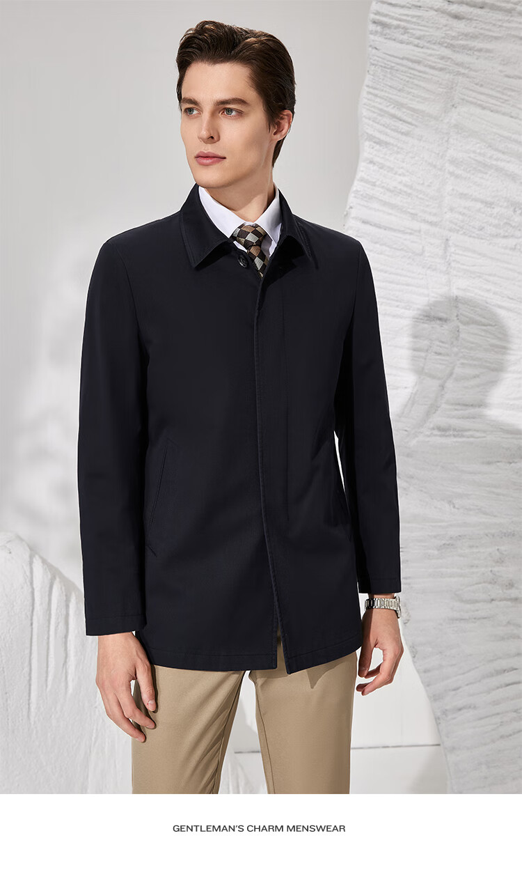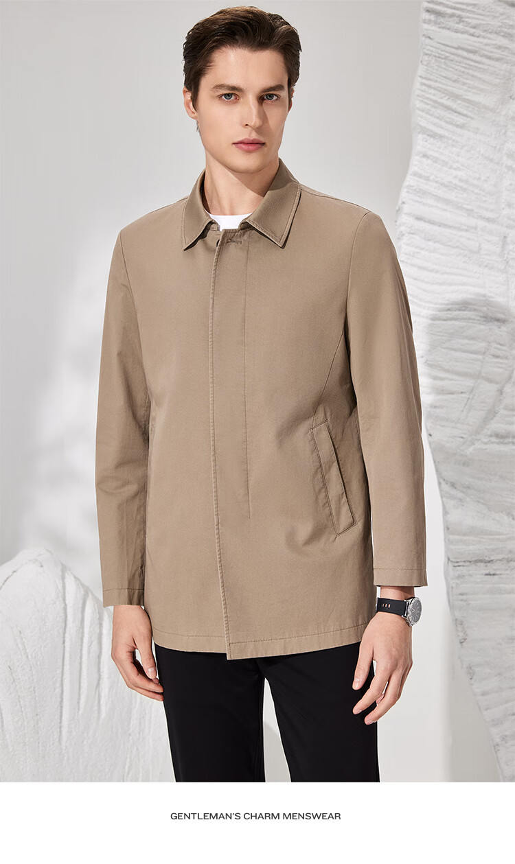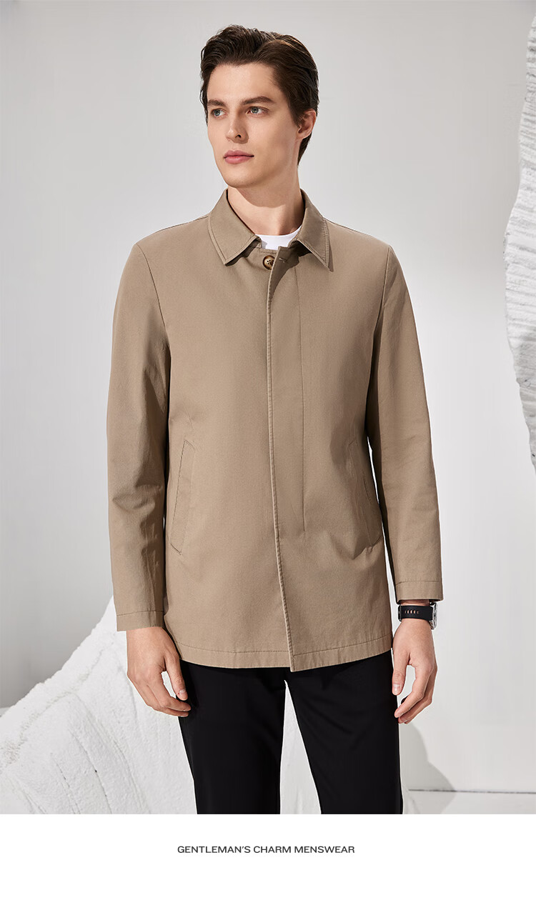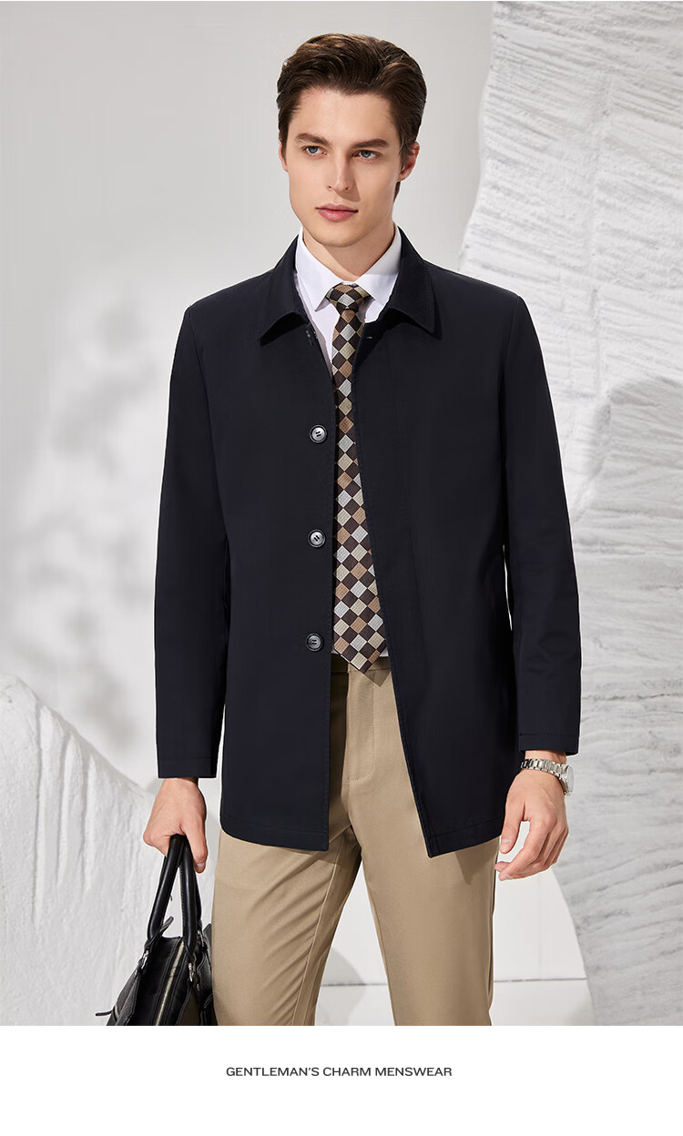 Antonio 100% combed long-staple cotton crisp lapel mid-length windbreaker for men spring and autumn business casual jacket