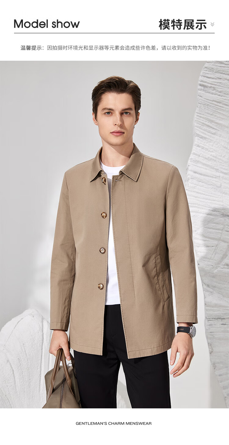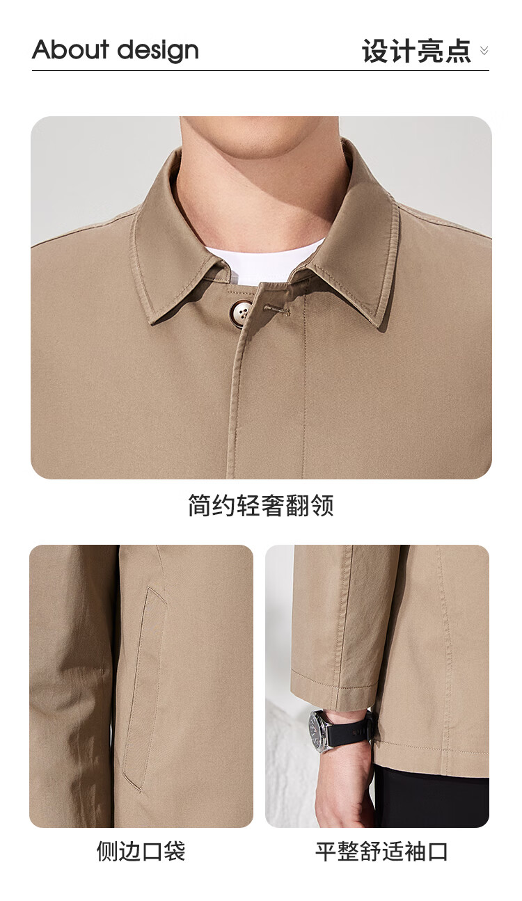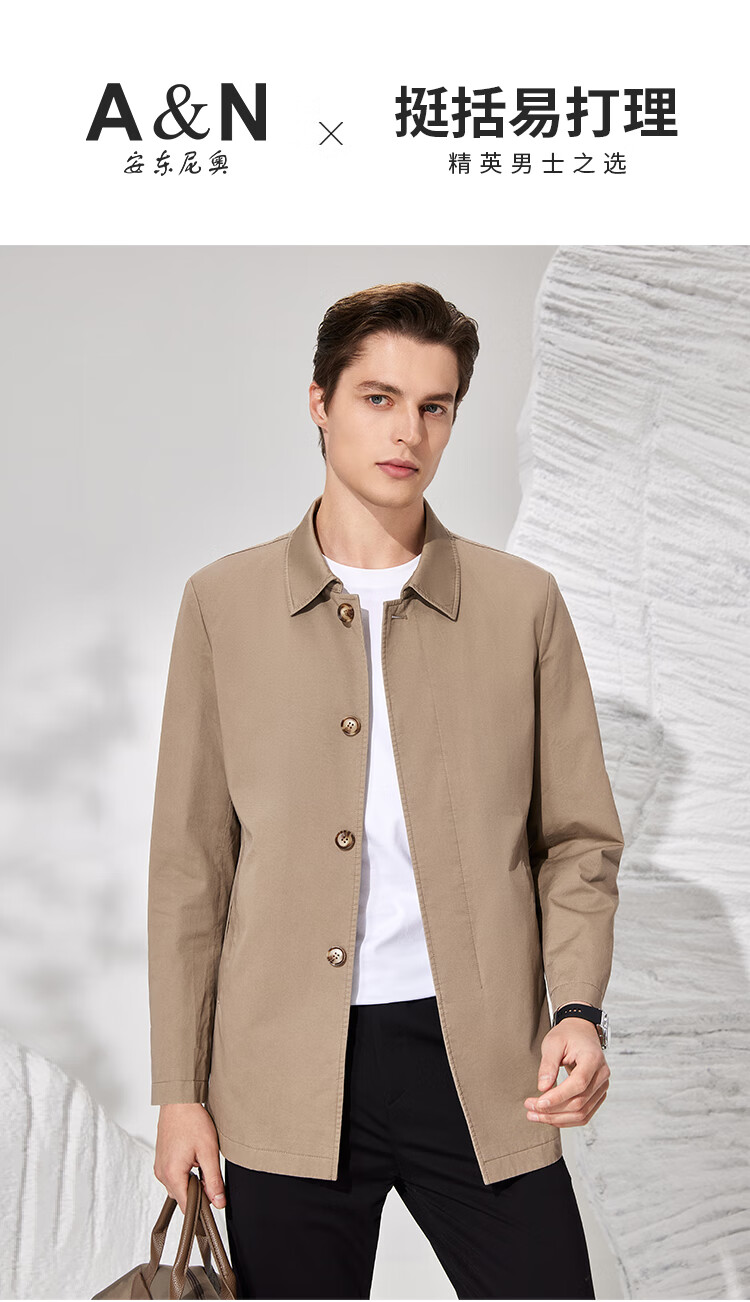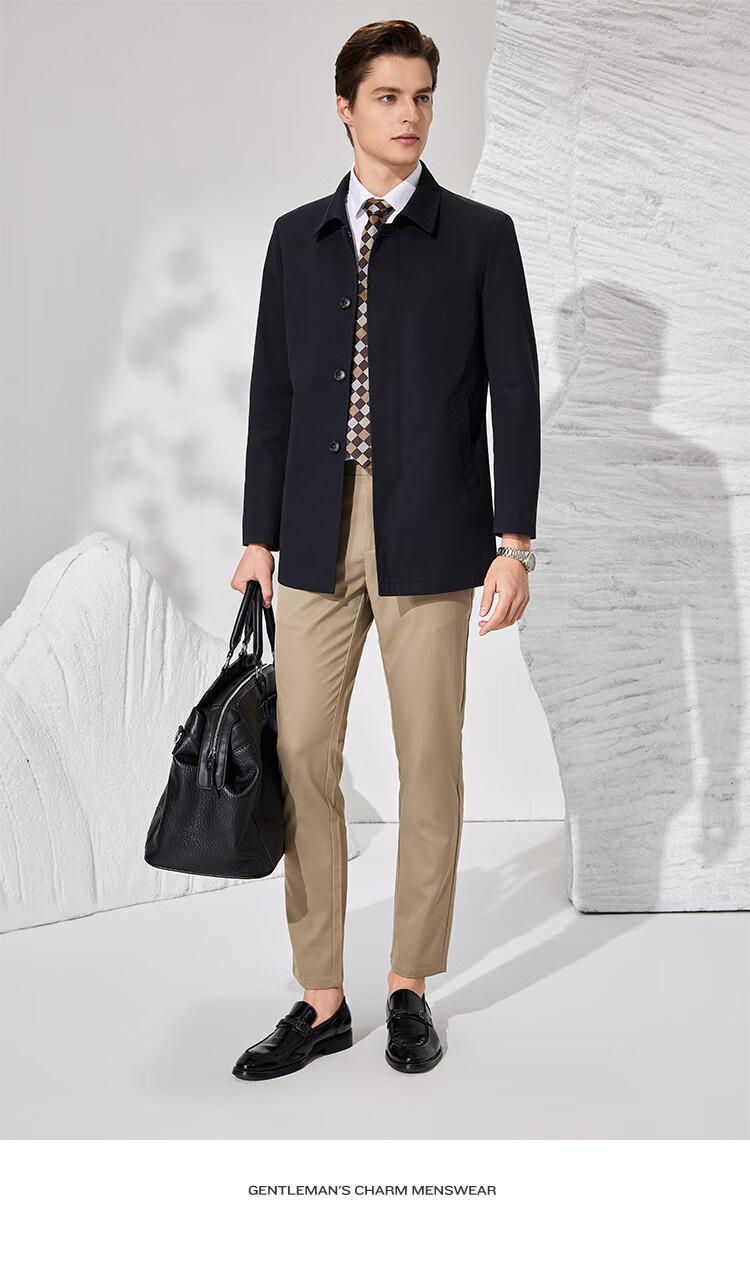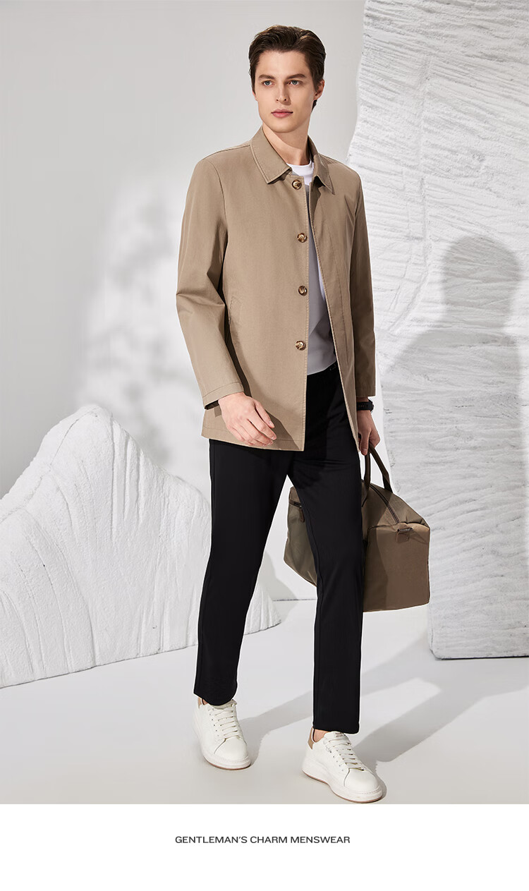 Antonio 100% combed long-staple cotton crisp lapel mid-length windbreaker for men spring and autumn business casual jacket